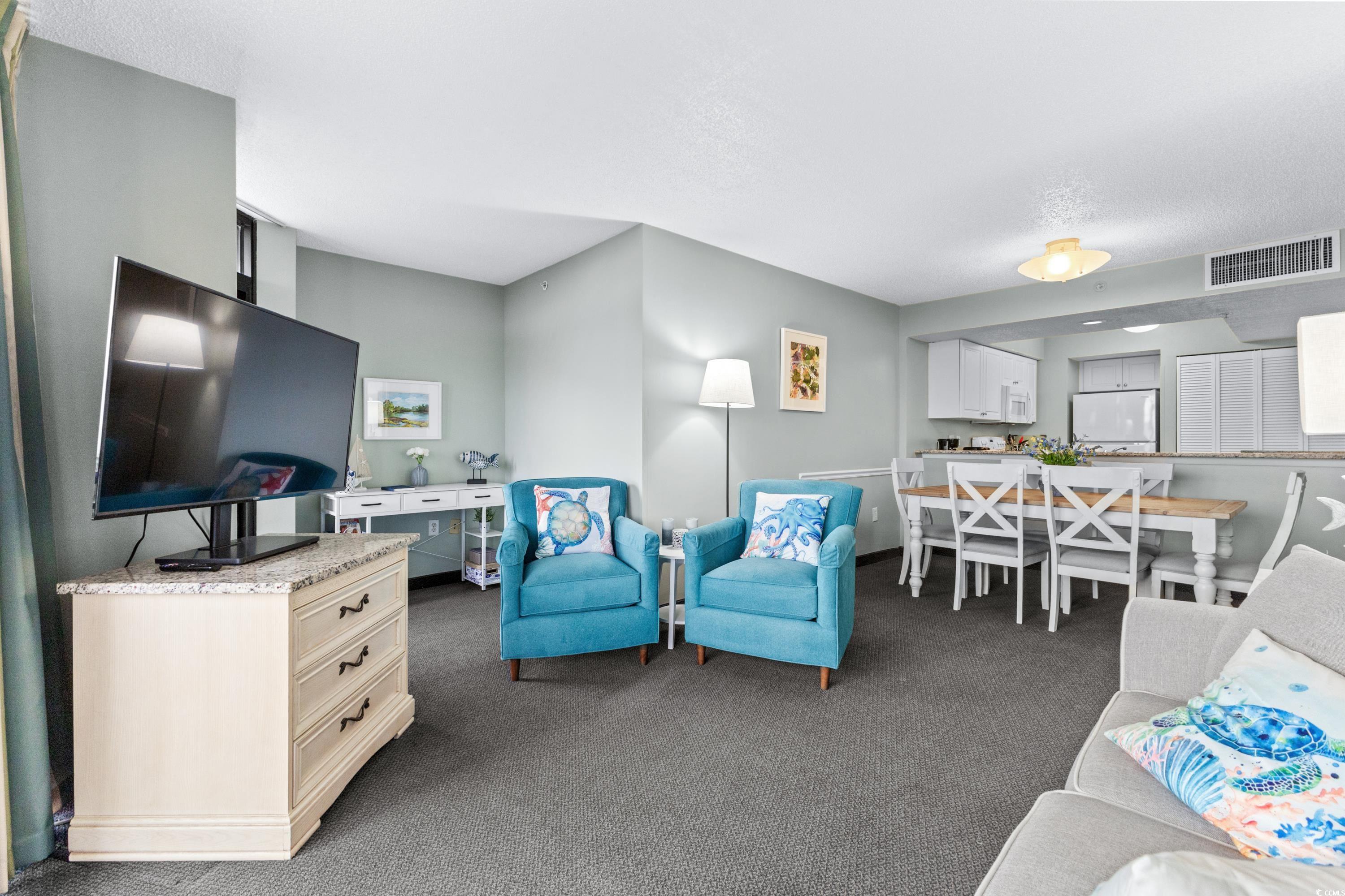 This stunning 3 bedroom / 2 bathroom Grande Shores condo offers a lifestyle of luxury and relaxation, perfectly situated on the ocean coast with mesmerizing ocean views. This newly updated 3 bedroom condo has plenty of space for family and guests to enjoy. The condo features upgraded vinyl plank flooring throughout the main hallway, kitchen area and bathrooms. New vanities with granite countertops were upgraded in both bathrooms as well as a new shower in the primary bathroom. The kitchen is adorned with granite countertops and upgraded cabinetry with plenty of storage space. The kitchen opens up beautifully into the dining/ living room space, perfect for entertaining guests. The condo amenities include 11 pool attractions: lazy rivers, indoor / outdoor pools, kiddie pool and hot tubs. Fitness center, seasonal pool bar/ grill, Shoreline Cafe, recreational sun lounge and beach access area. This condo offers not only a comfortable and elegant living space but also a resort-style experience with amenities for all to enjoy. It will make every day feel like vacation. Myrtle Beach is home to some of the best restaurants/ attractions/ entertainment, golfing, fishing, and shopping around! Don't miss this opportunity, whether you are looking for a primary residence, second home or an investment property to call your own. Motivated sellers!