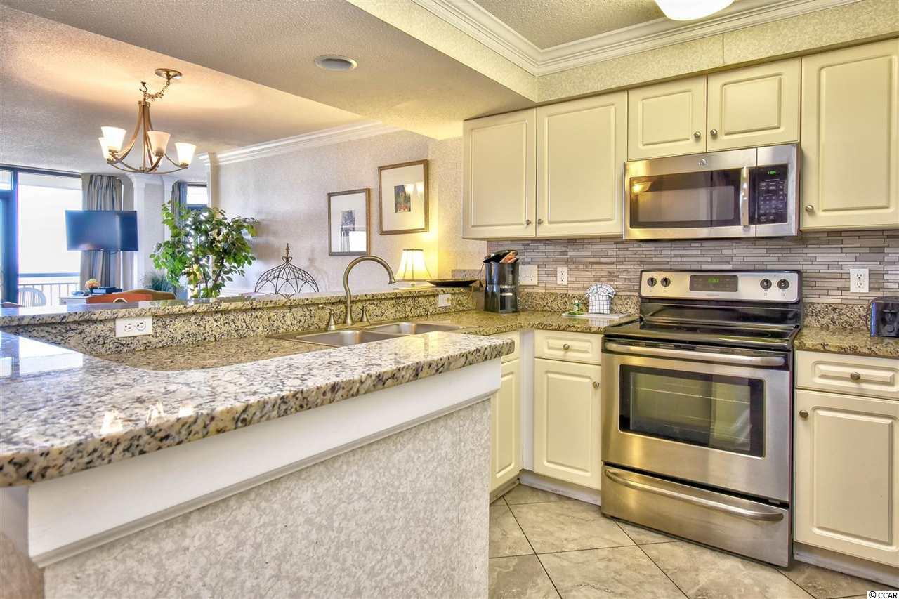 Own a piece of Paradise w/ carefree living ~ Must see this spacious 3br/2ba, Corner Penthouse Oceanview unit in Grande Shores! This remodeled unit features gorgeous ceramic tile throughout, upgraded furnishings, stainless appliances purchased in beginning of 2018 in kitchen, tile backsplash, Granite countertops in kitchen & baths, crown molding, 6 panel doors throughout, washer/dryer purchased in 2016, cabinets in bathrooms, HVAC replaced in 2017, this 34 stack has extra htd sqft in living room, access to balcony from the master bedroom, excellent rental history, everything is included in HOA fee and amazing ocean views from the large balcony ~ you can see for miles up the north shore! Come relax w/ your morning coffee watching the sunrise or an evening cocktail while watching the sun set over the beautiful Atlantic Ocean! On top of this fantastic unit, Grande Shores offers wonderful amenities including indoor & outdoor pools, hot tub/spa, lazy river, a pool deck w 2 lazy rivers and a poolside bar/grill on the 7th floor, fitness center, spa, The Shoreline Cafe, the beautiful Atlantic Ocean w/ 60 miles of white sandy beaches and is conveniently located in the heart of the Grand Strand close to all of the shopping, dining, entertainment, golf, area attractions and all the beach has to offer. Whether an investment or your vacation get-a-way, Don't Miss ~ come live the dream!
