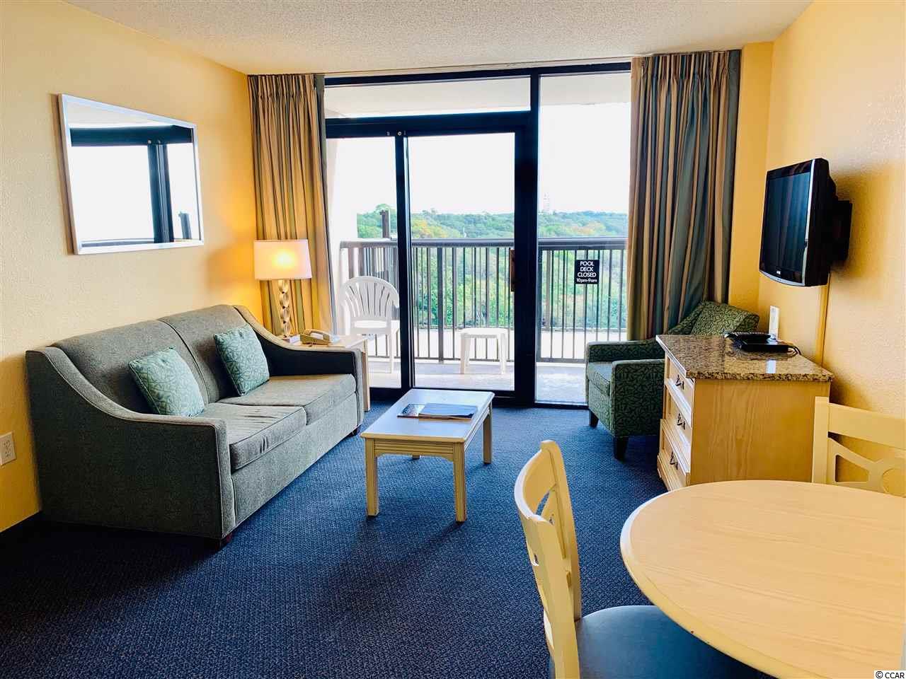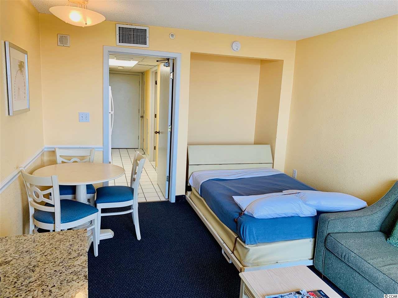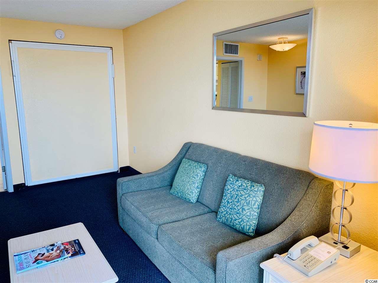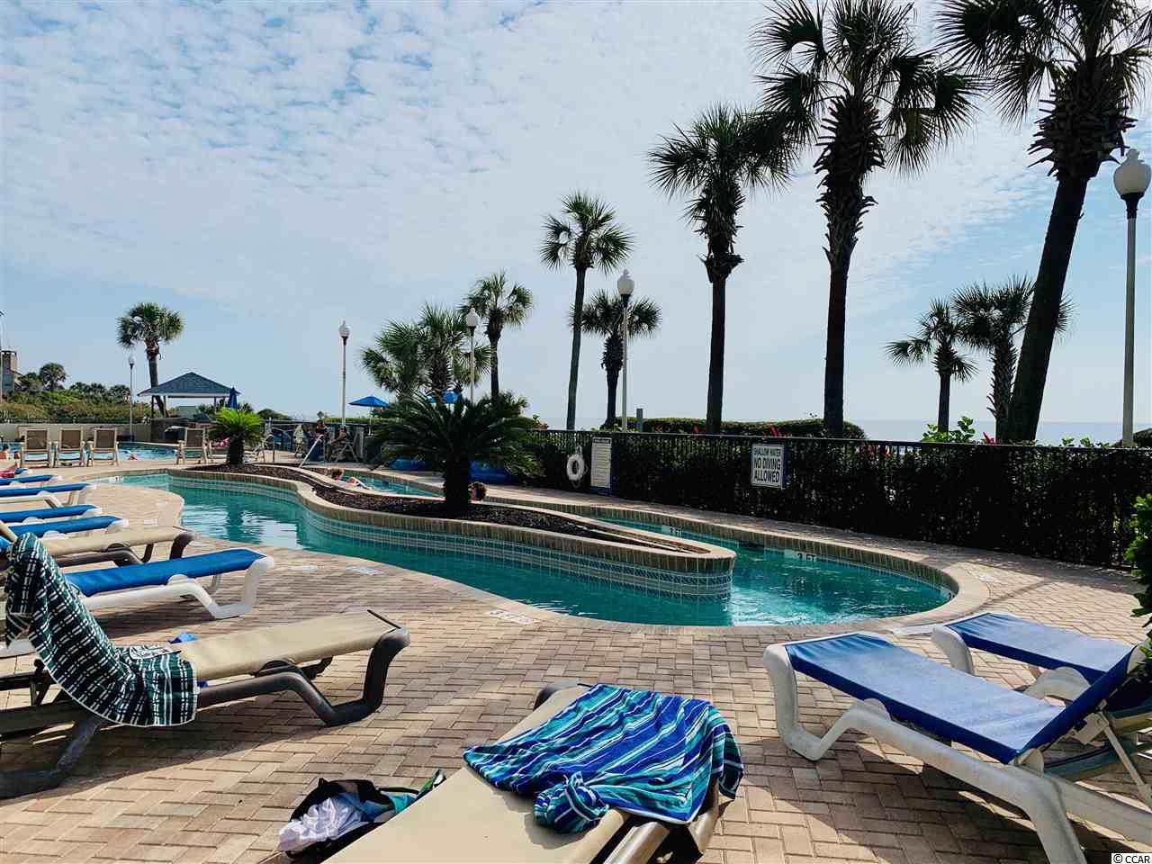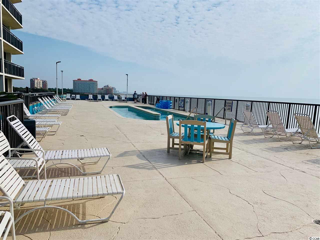 Listen to the waves crash on the white sand with the rare opportunity to own a 1 bed 1 bath ocean view unit on the 7th floor of Grande Shores in the heart of the Golden Mile section of Myrtle Beach. This unit has direct access to the rooftop pool, hot tubs and lazy river from your private balcony. If pools aren't your thing you can sit in the air conditioned room looking north over the shoreline of the Atlantic Ocean. Once you're done relaxing, walk down to the scheduled onsite activities or restaurant for a delicious dinner and drinks. If you wish to go out to eat, your car is steps from your front door making easy access to all Myrtle Beach has to offer. You must see this unit in person to truly appreciate the beauty, convenience and bargain!