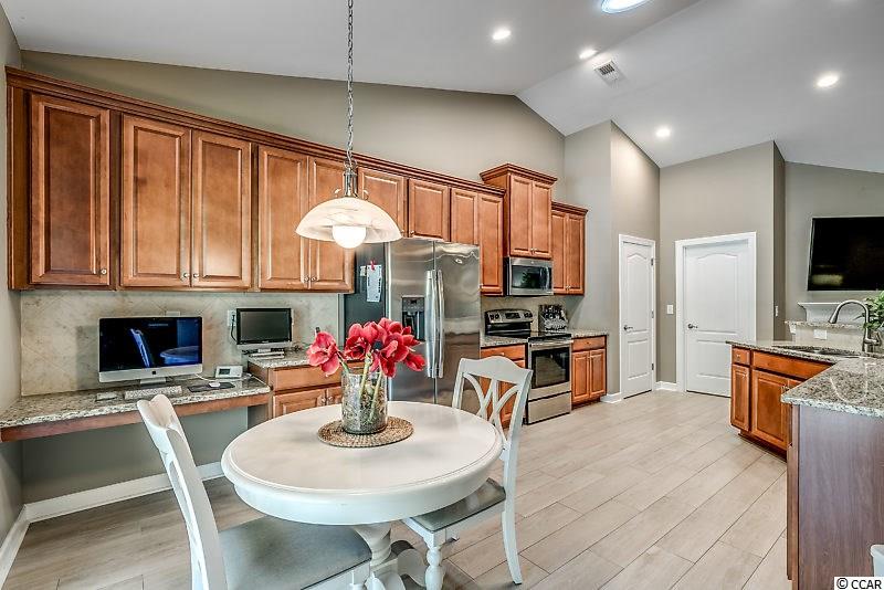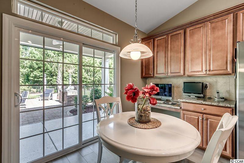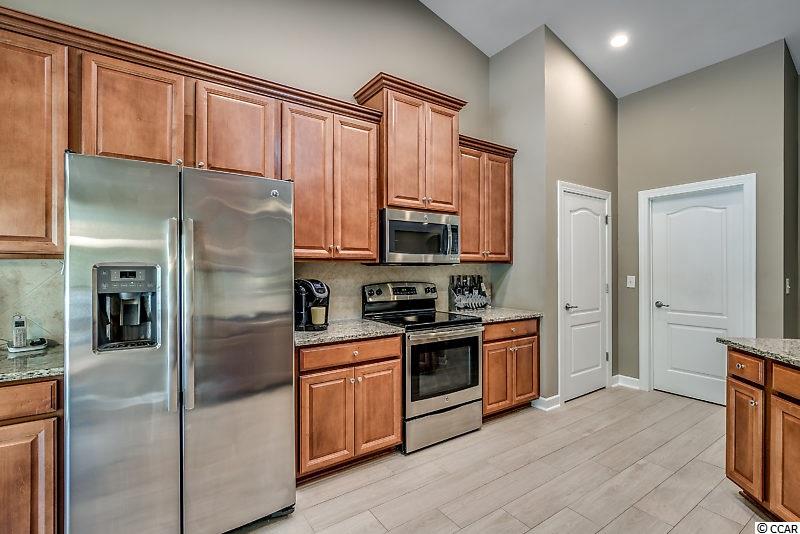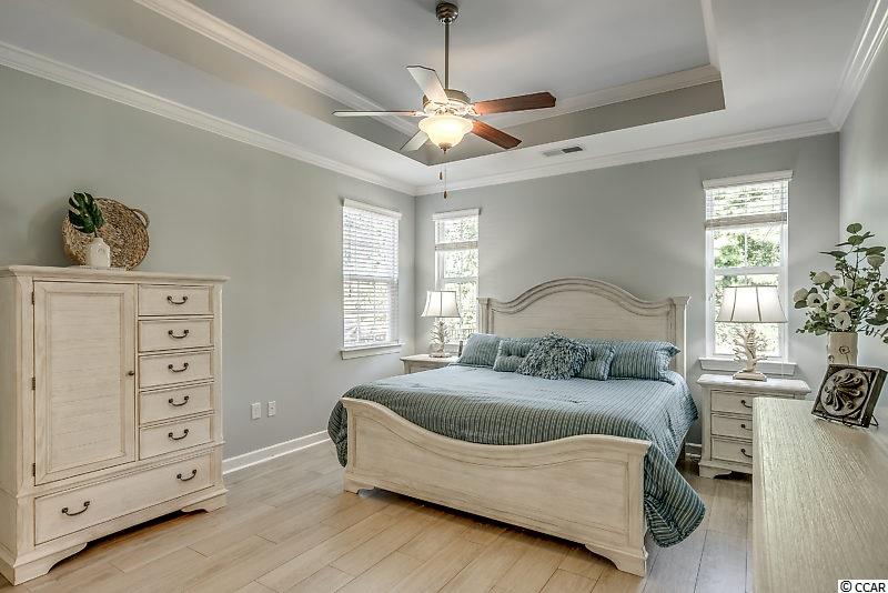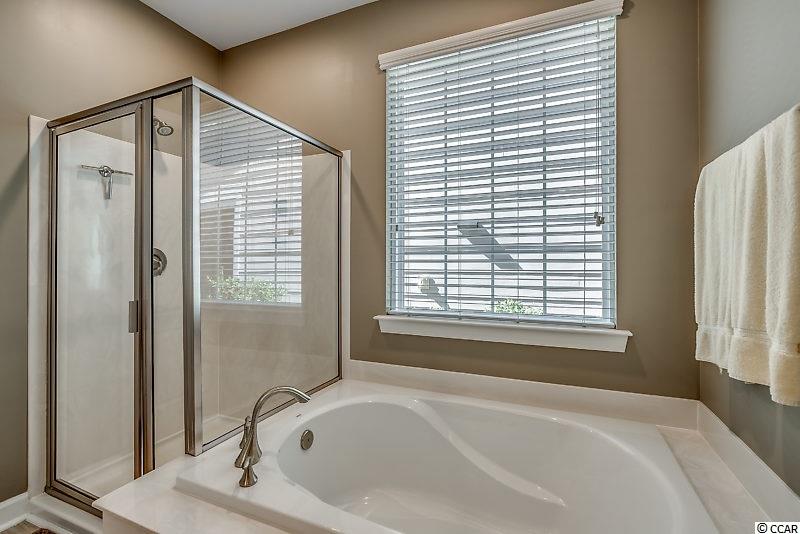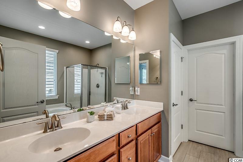 Spectacular home in Monarch Estates at Emmens. There are only 88 homes in Monarch but they get all the advantages of the beautiful Emmens Preserve amenities. Home is only 5 years old and better than new. It has been well maintained and freshly painted with a pleasing color pallet! This Pristine 4 bedroom Crepe Myrtle has many upgrades inside & out. No Laminate or engineered flooring here, the entire Living area, Formal Dining Room, Master BR and 1st floor Baths have been upgraded to a beautiful wood grain porcelain tile that offers style and durability along with ease of care. The living room has vaulted ceilings and a cozy gas fireplace. The formal dining room also has a vaulted ceiling, decorative wainscoting and overlooks the plush back lawn. The gourmet eat-in kitchen has staggered 42 cabinets, granite countertops, large pantry closet and SS appliances. There is a large laundry room off the kitchen with more pantry shelves and additional storage closet. The Master Suite is finished with crown moldings, tray ceiling, tile flooring and is complete with a beautiful en-suite featuring double sinks, soaking tub and separate shower along with a huge walk-in closet. Two more bedrooms and a full bath complete the split floor plan. The 4th bedroom upstairs has its own full bath and walk-in closet and closes off from the rest of the home offering your guest's privacy during their stay or make it your home theater, hobby room or workout room. It's only limited by the imagination. This home sits on an incredible lot with all the entertaining and relaxing space you could want. It includes a lanai with electric retractable screens, a gas fireplace, and possibility for an outdoor TV with mount & connections in place (TV can be purchased separately). The beautifully appointed patio with solar lighting, tropical plantings and an outdoor Weber BBQ will beg you to embrace the warm and sultry nights in Myrtle Beach. Attention to detail is apparent everywhere you look. Emmens offers the finest amenities in the area including the resort style pool, club house, gym, 2 outdoor kitchens and putting green. Located a short walk, bike or golf cart ride to our beautiful beaches and all that Market Common has to offer including dining, movies and shopping. If having everything done for you is important don't miss this home and its top of the line improvements and its incredible location. Square footage is approximate and not guaranteed. Buyer is responsible for verification.