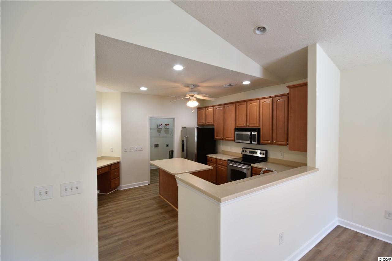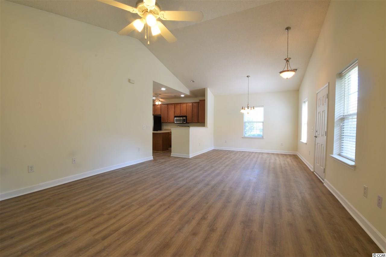 Waterfront 2-BR, 2-BA paired, ranch home located quiet Kings Creek community. Unit is highlight by brand new, durable COREtec flooring. Home includes two-car garage, enclosed Carolina Room, Master Bath with double sinks, separate shower and a garden tub. Kitchen has built-in desk, Corian Countertops, and a large kitchen island. Unit features an open floor plan with vaulted ceiling. Community pool. Perfect for primary or vacation home.
