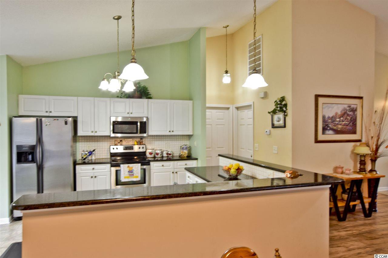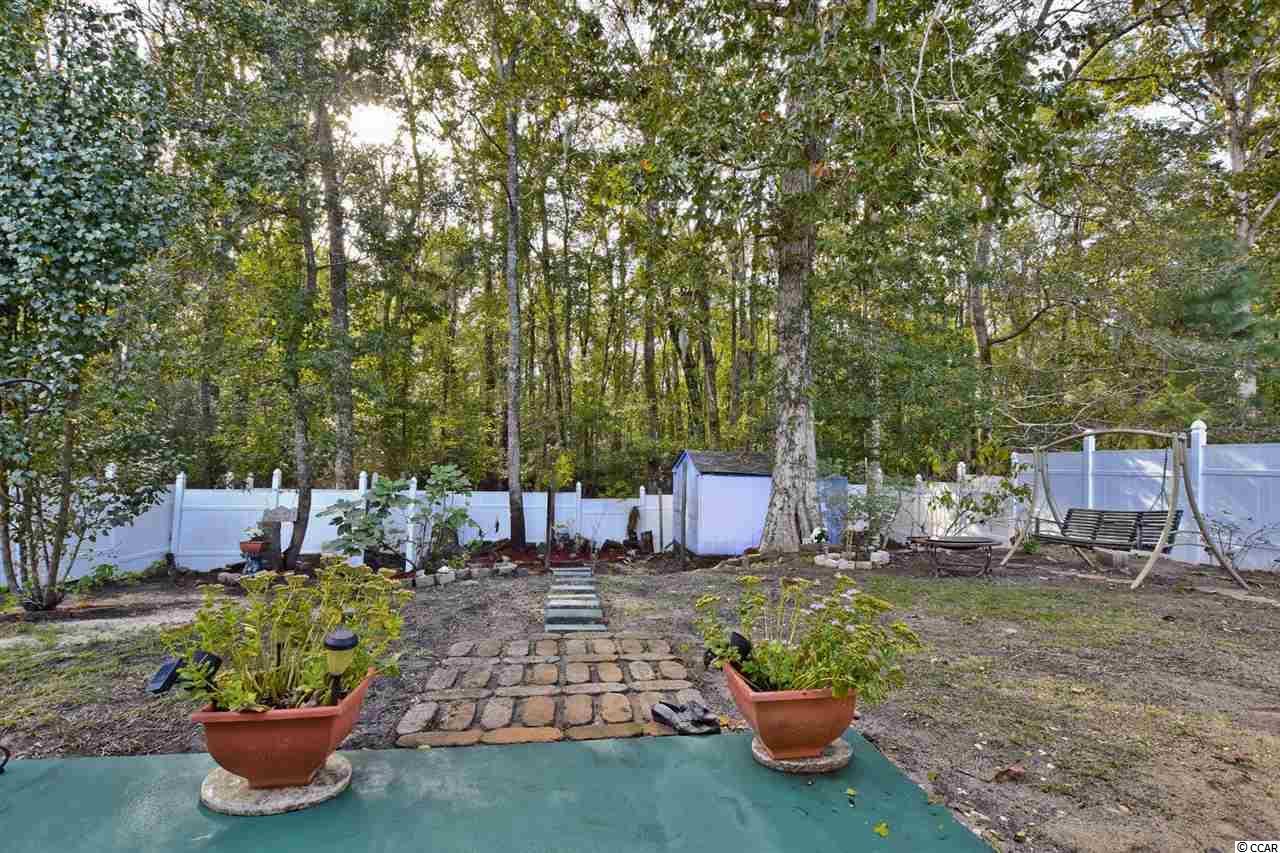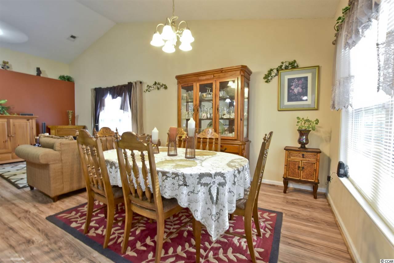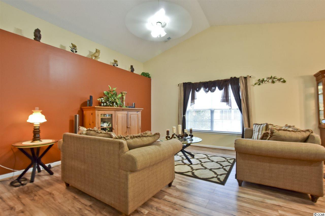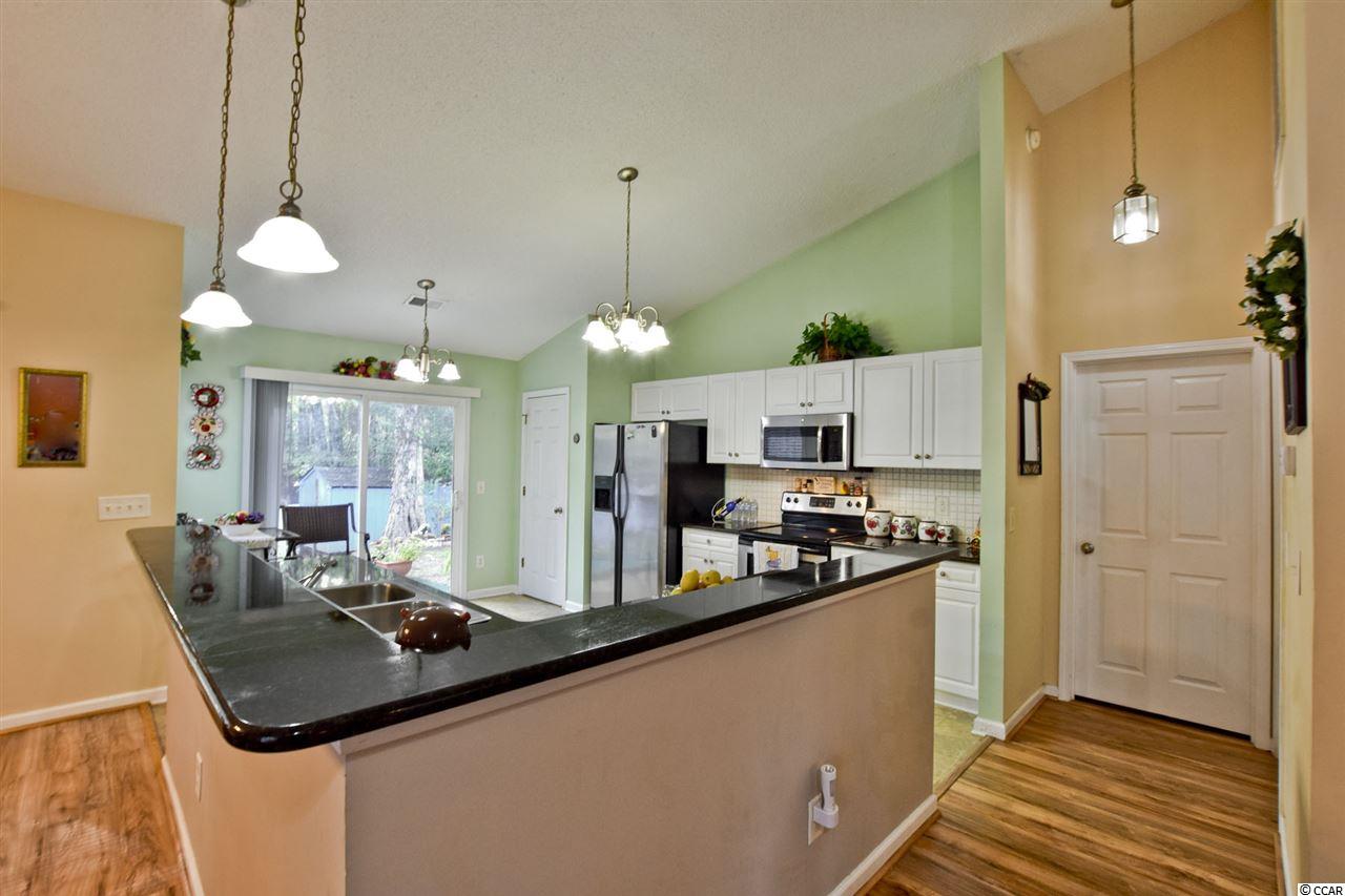 Join us for an open House Sunday, December 9th, 12pm-3pm! This home did not flood. An immaculate three bedroom two bathroom home features vaulted ceilings, new laminate wood flooring and tiled flooring through out. The master bedroom includes trey ceilings, a walk-in closet, new wood flooring, and ceiling fan with lighting. The master bathroom features a spacious, garden tub, and separate stand up shower. The first guest bedroom includes vaulted ceiling, ceiling fan, new wood flooring and a spacious closet. The additional guest bedroom features The guest bathroom has a tub/ shower combo, vanity, and tiled flooring. The kitchen features stainless steel appliances, black speckled granite counter-tops, a full pantry, and a breakfast nook. The living room dining room combo features vaulted ceilings, ceiling fan, new wood flooring, and an open concept floor plan . The sliding glass doors lead out to a patio perfect for sitting, relaxing, or entertaining with views of a quaint fenced in back yard that backs up to a wooded area for additional privacy and a large storage shed. There in no HOA in this beautiful community. It is located close to shopping, doctors, hospitals, easy access to Hwy 501 or Hwy 544 and only a ten minute ride miles to the sandy beaches and beautiful Atlantic Ocean. All measurements are approximate buyer is responsible for verification.