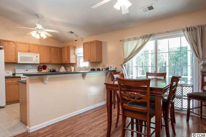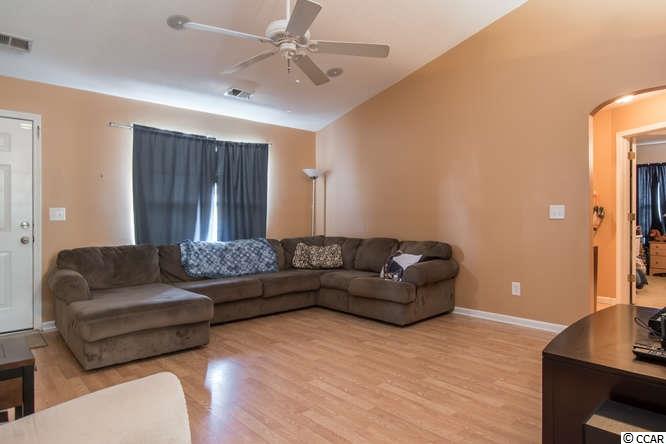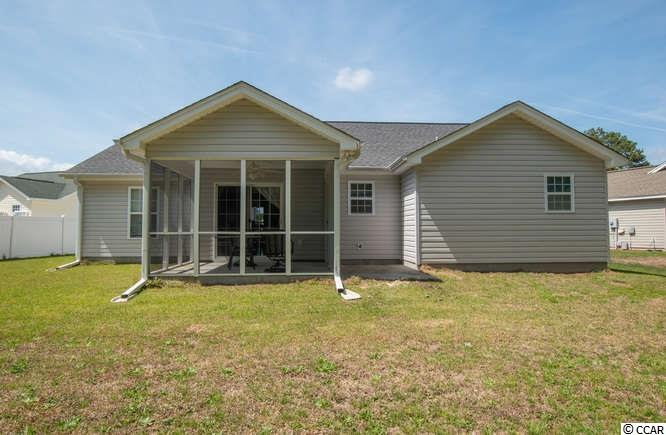 This beautiful home is located on a cul-de-sac just a short drive from all Myrtle Beach has to offer! Just minutes from shopping, dining, golf, and the Atlantic Ocean. You can enjoy the peaceful location and private wooded backyard from the large screen porch. Vaulted ceilings offer an open feeling as you enter the home, with an open layout to the dining and kitchen areas. The kitchen overlooks the back yard, and ceiling fans through most of the home accentuate the relaxed environment. Wood laminate floors are easy to maintain, and continue through the main areas of the house. With a split floor plan, enjoy the private master suite with walk-in closet and full bath. The tray ceiling adds character and an open feeling that compliments the rest of the house. The guest bedrooms are spacious and bring in ample lighting, with large closets and shelving. You'll love the location and features of this home! Square footage is approximate and not guaranteed. Buyer is responsible for verification.