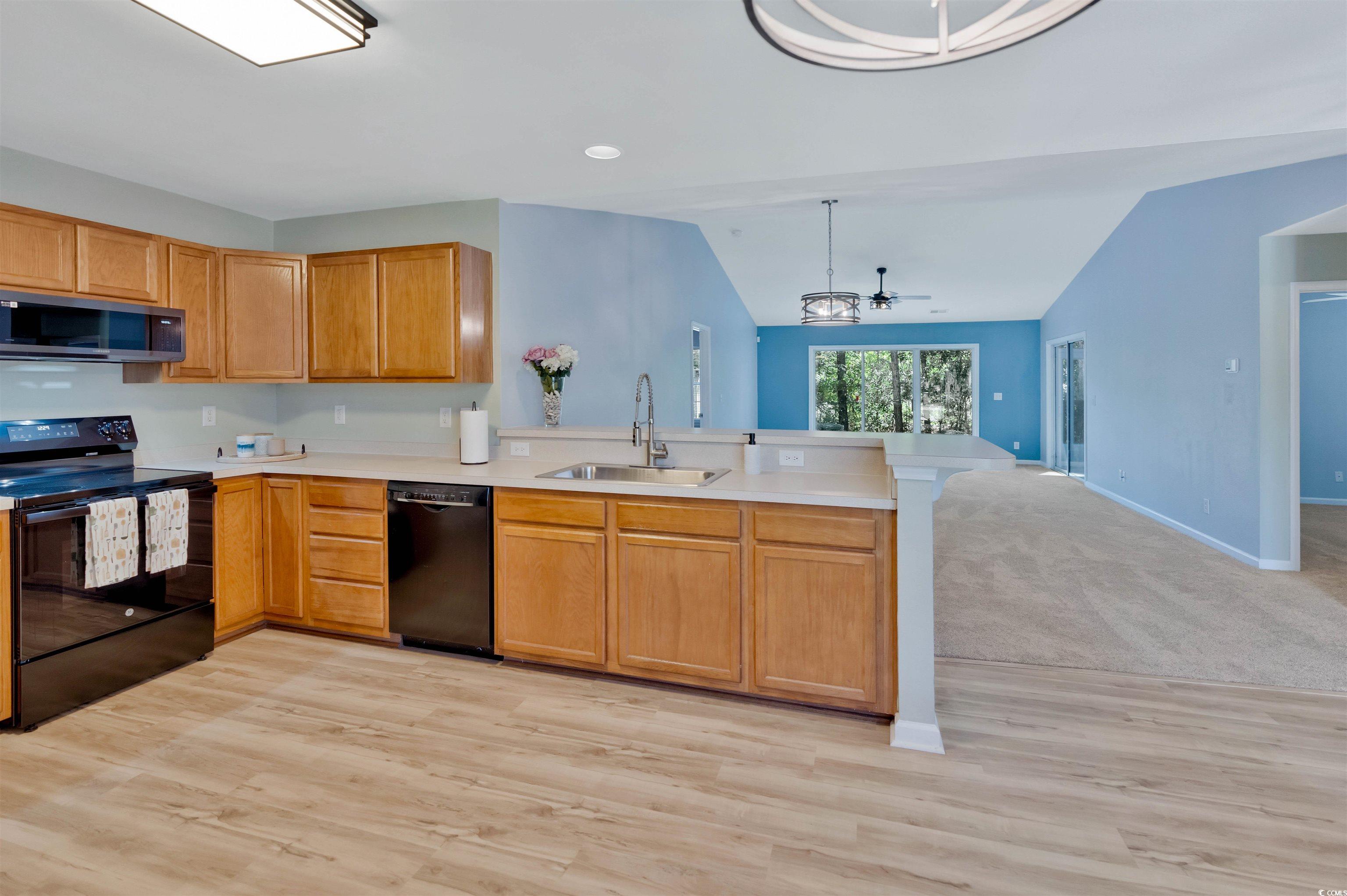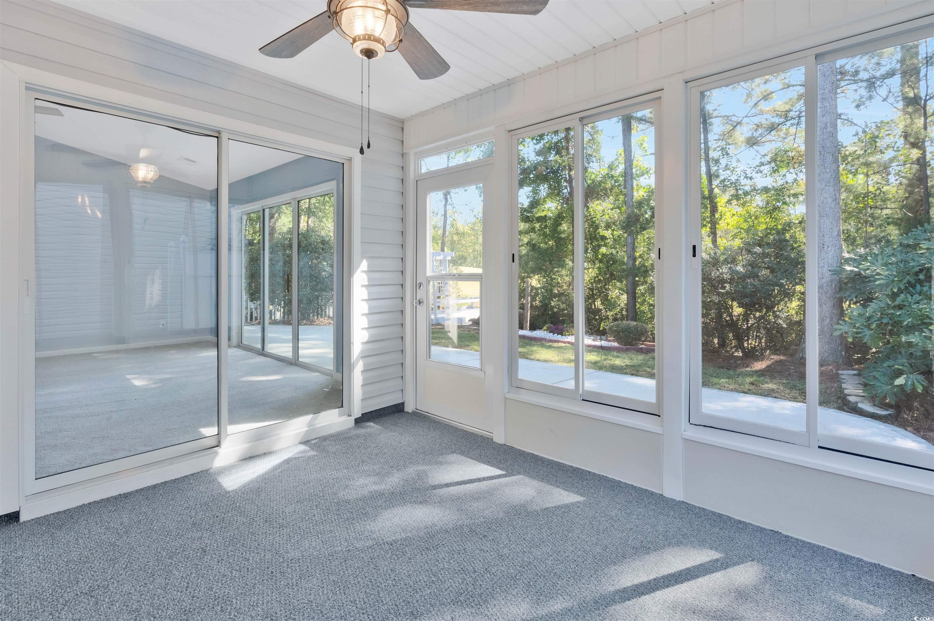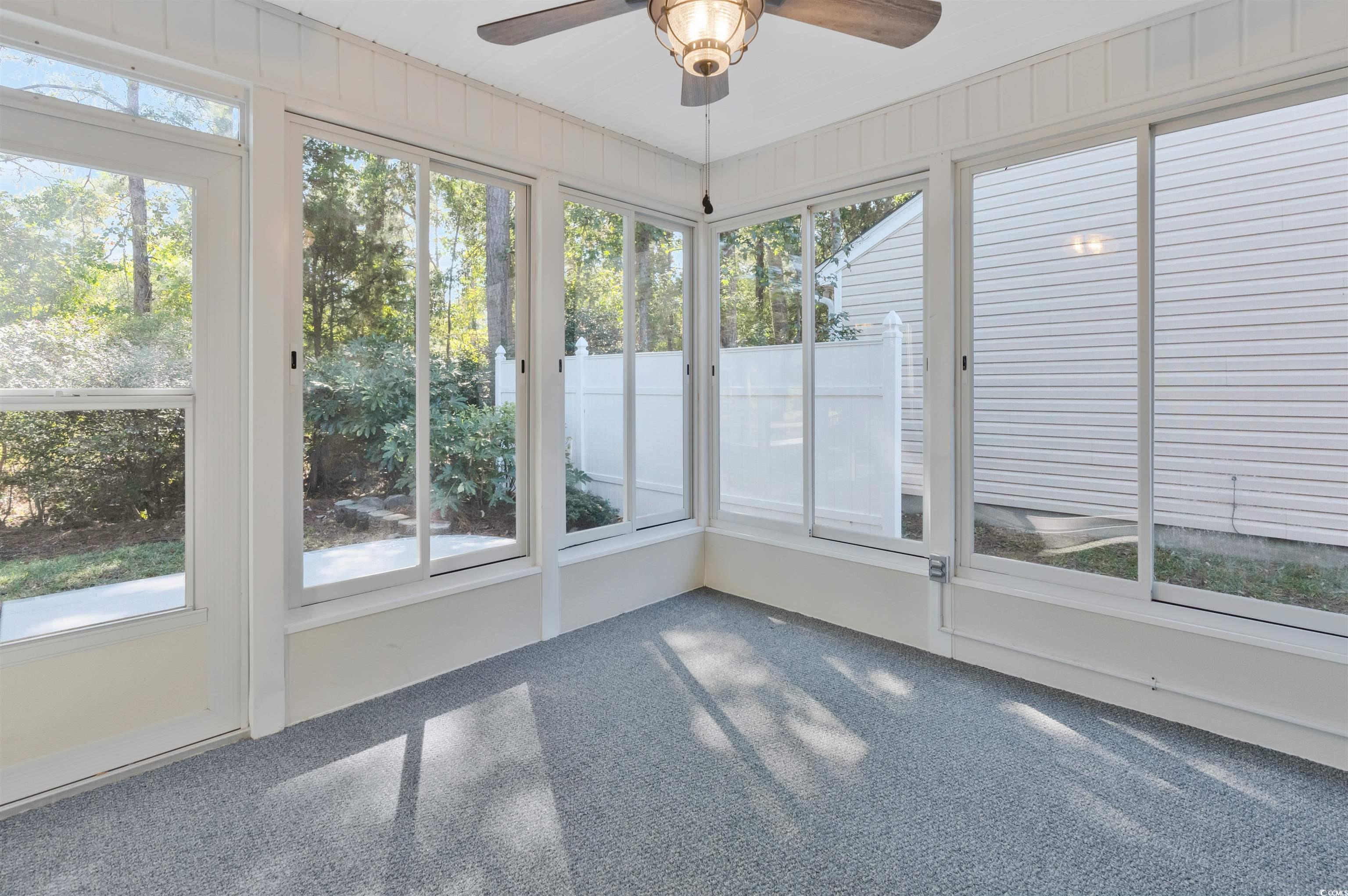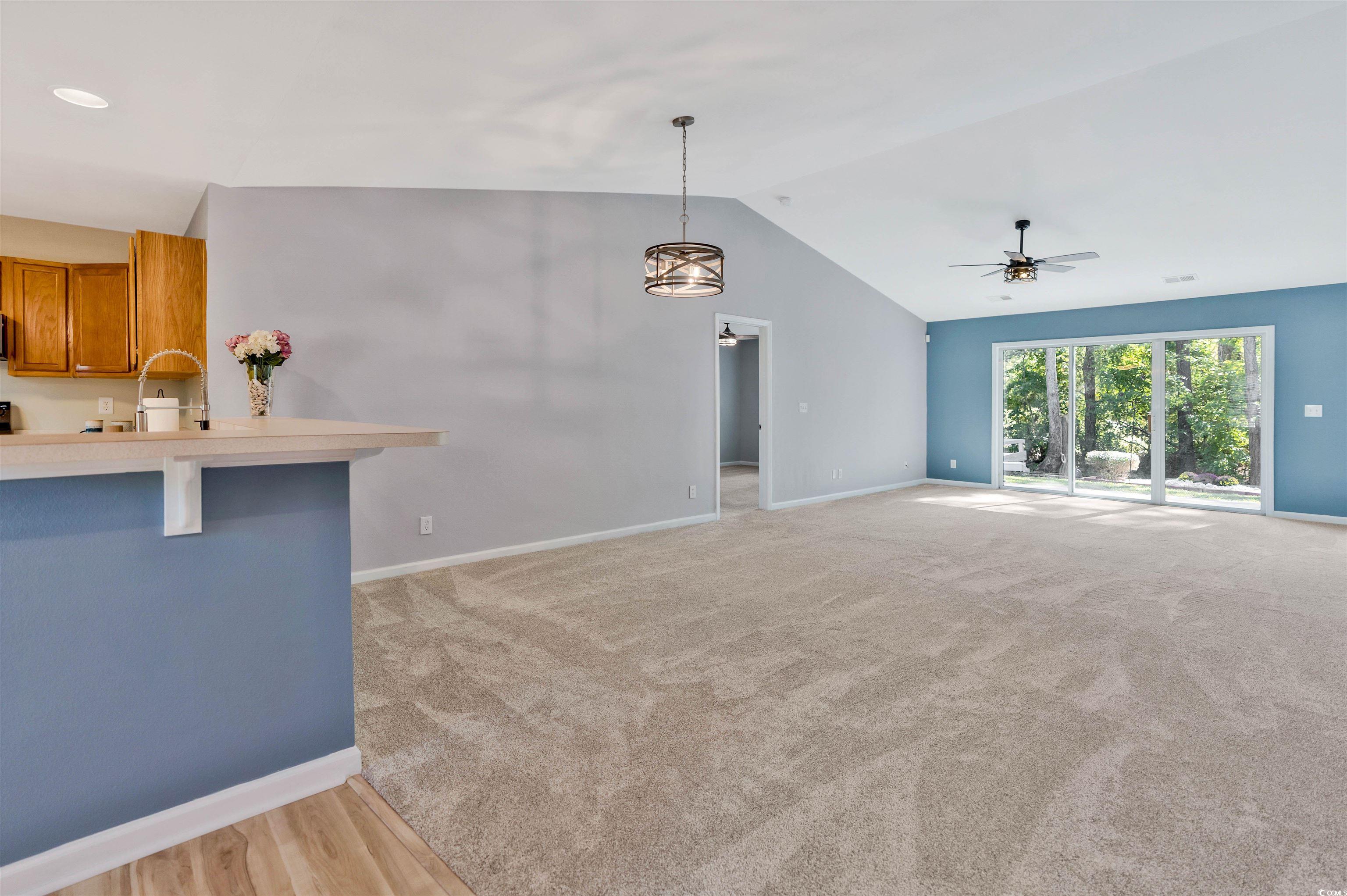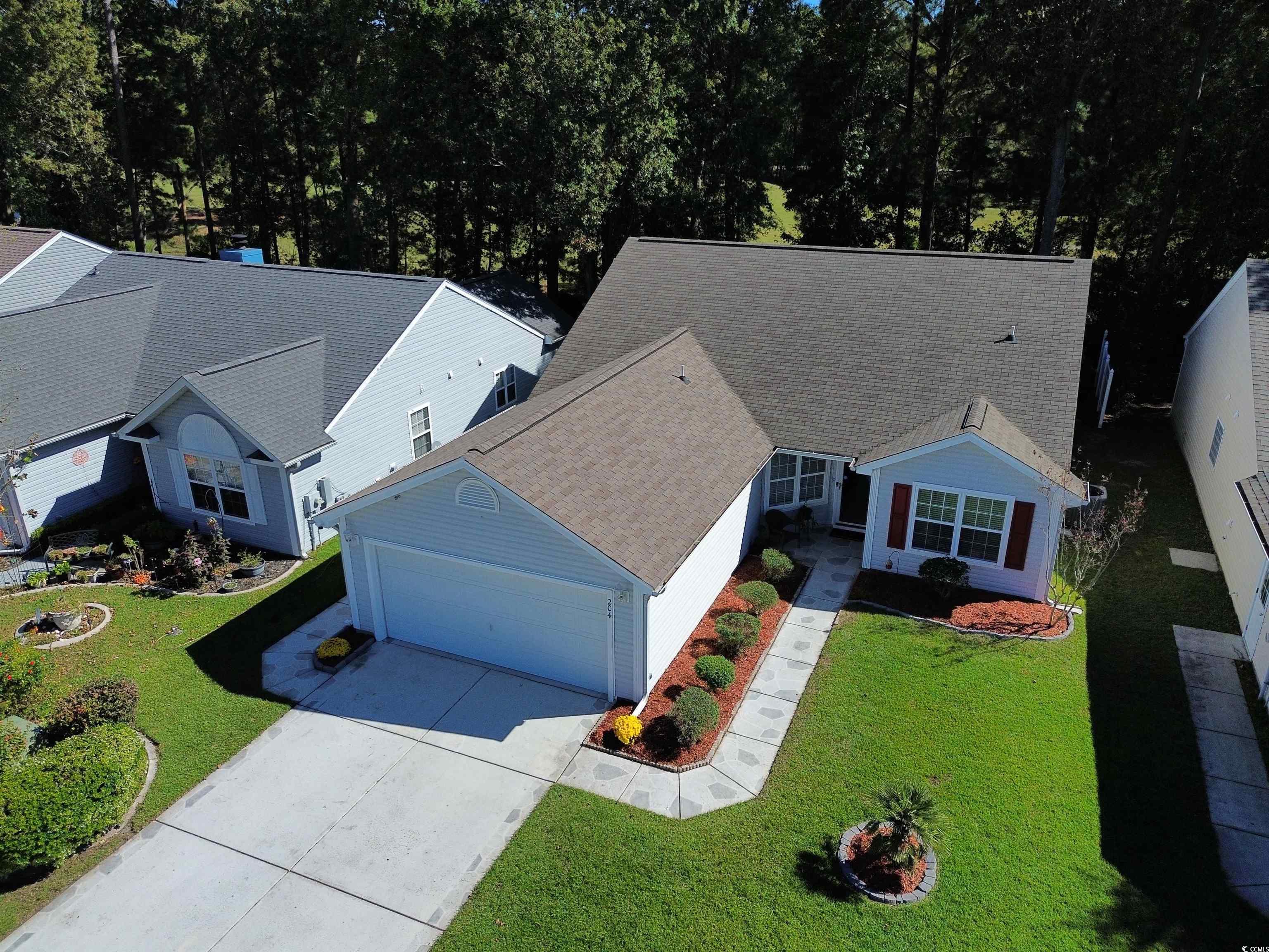 Refreshing, modern and beautifully updated throughout! 204 McKendree Lane is in Inverness - a small, highly desirable community tucked away off River Oaks Drive and nestled between River Oaks & World Tour Golf Courses. Carefully maintained and wonderfully designed to showcase the abundance that a 3 bedroom, 2 bath home can offer! Open concept with vaulted ceilings, split floor plan, large peninsula with ample seating, large dining area, oversized two car garage, eat in kitchen, full size laundry, kitchen pantry, large garden tub + shower + two large walk-in closets in the main bath, large walk-in closet in the second bedroom, floored attic space above the garage, huge backyard patio AND a Carolina room! Recent updates to the interior and exterior include a new HVAC in 2024! Also new in 2024 - range, microwave, new flooring, fresh paint colors, light fixtures in the kitchen, dining, living, main bedroom/bath, foyer, second bath and Carolina room, bathroom vanities with fixtures, and new tub & shower fixtures. More updates include hurricane shutters, gutters and gutter guards, Hunter irrigation system, and ADT security system includes front & rear cameras and doorbell camera. 204 McKendree Lane backs up to the 15th hole and offers the perfect amount of nature and privacy from the backyard. Inverness welcomes residents with a beautifully landscaped entrance, a beautifully designed pool and lounge area, and ponds with fountains. Convenient to everything - shopping, dining, entertaining, commuting options, medical facilities AND the beach!