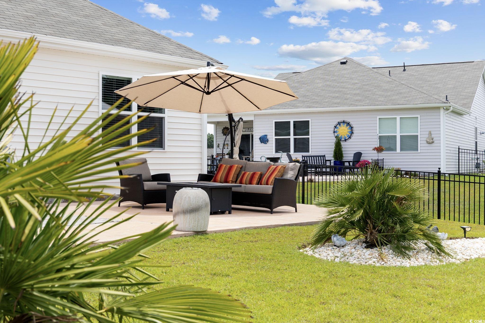 Welcome to this beautifully designed home in the sought-after Heather Glen community! This Aria floor plan offers an open-concept layout with 9' ceilings, creating a bright and spacious atmosphere throughout. As you move through the front hallwaypassing two well-appointed bedroomsyoull find yourself in the heart of the home: a stunning kitchen with granite countertops, a large island that doubles as a breakfast bar, and stainless-steel appliances. The kitchen flows effortlessly into the dining and living areas, making it ideal for both entertaining and everyday living. The dining area boasts a stylish custom light fixture and sliding glass doors that open to a screened back porch and a brick patio, perfect for indoor-outdoor living. The living room features a charming shiplap accent wall, adding warmth and character to the space. The split-bedroom design offers added privacy, with two bedrooms on one side and the owners suite tucked away on the other. The spacious master bedroom includes a large, custom walk-in closet with double hanging rows, a custom wood feature wall, and tranquil pond views. The en-suite bath features a dual vanity and a shower with glass sliding doors and a custom master bath closet. Outside, enjoy your fully fenced backyard with palm trees, a fenced in yard for added security, and a serene pond viewideal for relaxing or entertaining. A covered and screened back porch plus a brick patio offer the perfect spots to unwind while enjoying the outdoors. Additional highlights include an attached 2-car garage, smart home technology, and stylish upgrades throughout. The Heather Glen community offers fantastic amenities, including a resort-syle clubhouse and pool, and a fun playground for families to enjoy. This home perfectly blends comfort, design, and functionalitya true gem in the lifestyle-rich Heather Glen community!