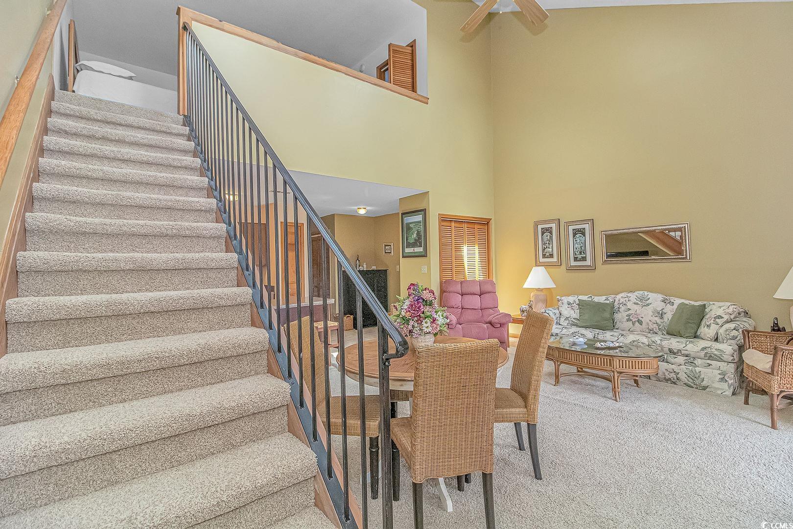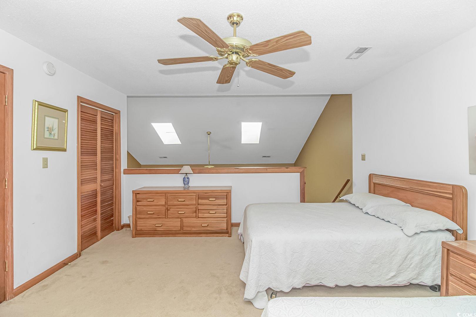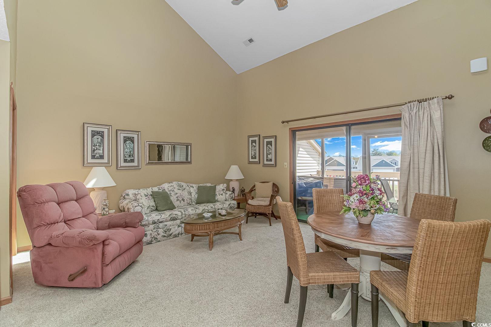 Welcome to paradise at the Grand Palms Resort section of the Deerfield community in beautiful Surfside Beach, SC! Nestled amidst serene ponds, this delightful 2 bedroom, 2 bath condo offers tranquil pond views and a comfortable, resort-style living experience. Step inside and be greeted by the inviting ambiance of the spacious living room, seamlessly connected to the dining area and kitchen. Natural light pours in through skylights overhead, creating an airy and welcoming atmosphere that beckons you to unwind and enjoy coastal living at its finest. Ascend to the second level where you'll discover the primary bedroom retreat, offering a peaceful sanctuary complete with an ensuite bathroom featuring a convenient tub/shower combo and ample space for a cozy sitting area, perfect for relaxation and unwinding after a day of coastal adventures. On the main level, a charming guest bedroom awaits, accompanied by a full bathroom, ideal for hosting with ease. Step through the sliding glass door onto the screened-in porch, where you can savor your morning cup of coffee amidst the tranquil surroundings or bask in the soothing sounds of nature after a sun-kissed day at the beach. The porch also opens to a balcony, providing enchanting views of the shimmering pond below, offering the perfect backdrop for outdoor relaxation and enjoyment. With its idyllic location, resort-style amenities, and comfortable living spaces, this condo at Grand Palms Resort is not just a home, it's a coastal retreat where every day feels like a vacation. This property allows short term rentals and would be a great investment opportunity! Just a mile from the beach, this condo is in a central location to all of the attractions in Surfside Beach and a short drive to the Marshwalk in Murrells Inlet. Don't miss the opportunity to make this Surfside Beach condo your new home, where luxury, comfort, and coastal living converge. Schedule a showing today! Measurements are not guaranteed, buyer is responsible for verifying.