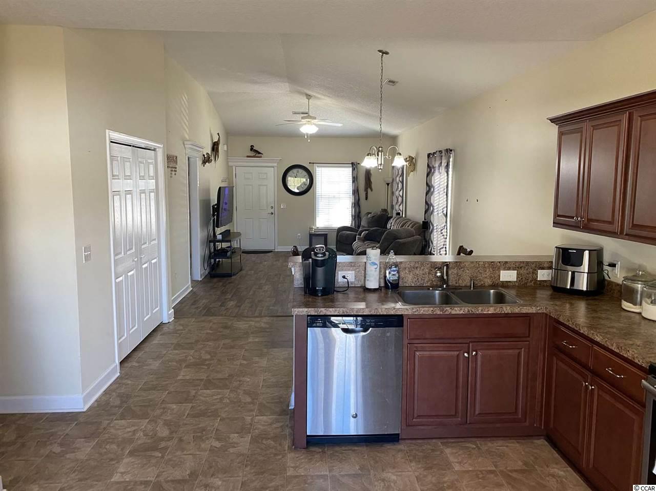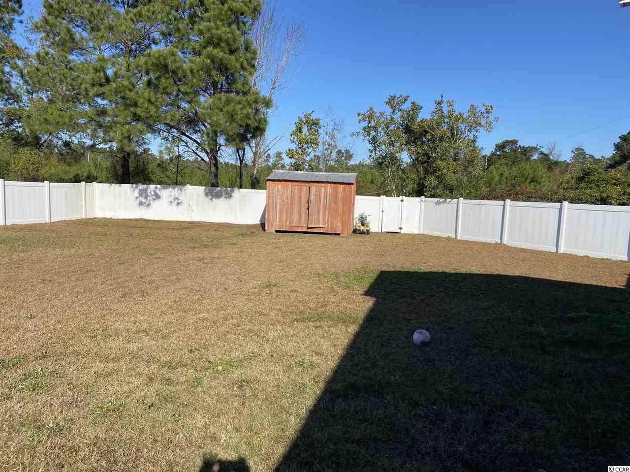 Well maintained 3 bed 2 bath home in Wisteria Woods. Just a short trip to town and close to Hwy 22 for quick access to the Grand Strand. New flooring in living room. Stainless appliances. Attached storage converted into large 2nd walk in closet in master bedroom. Fenced in backyard with exterior storage building.