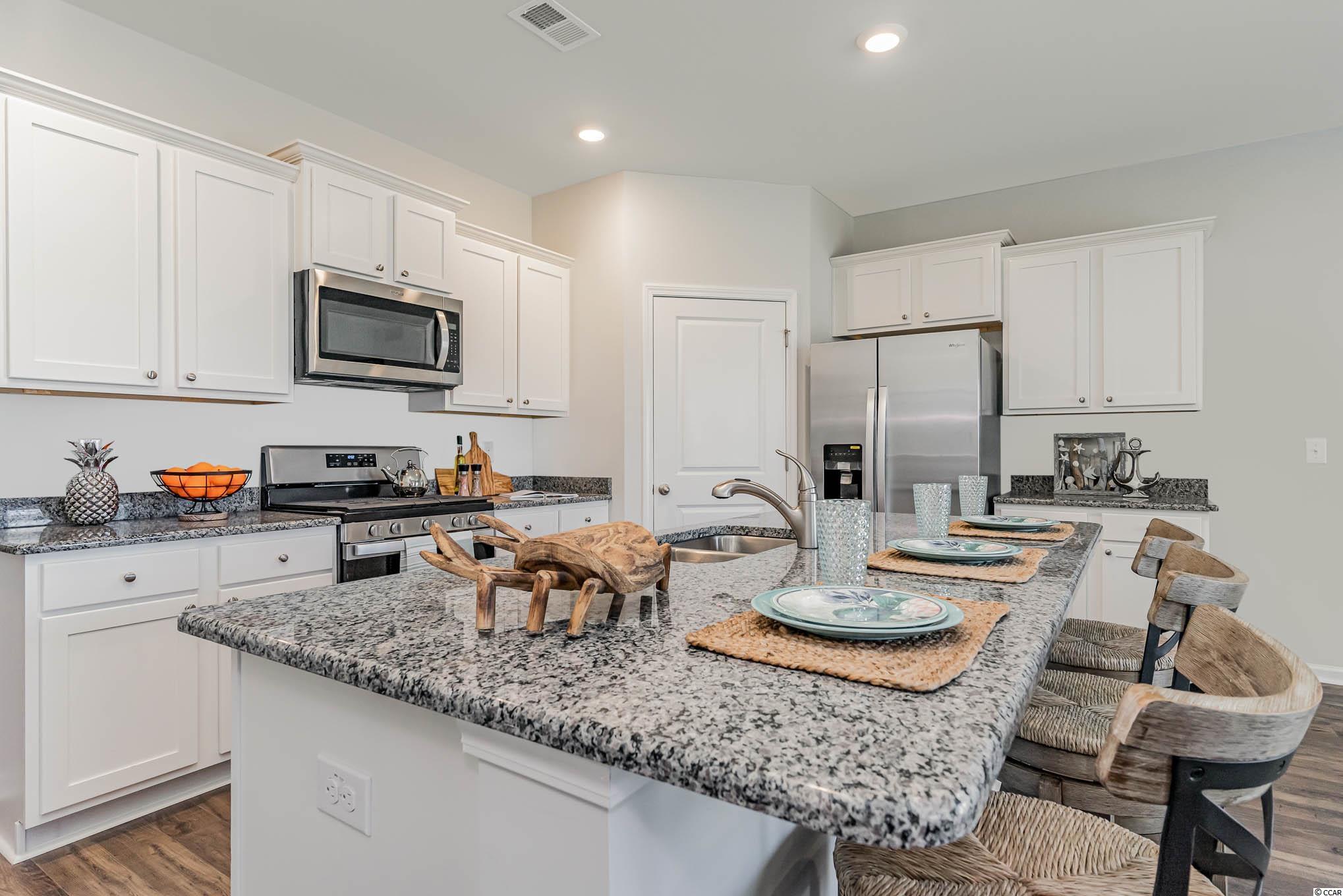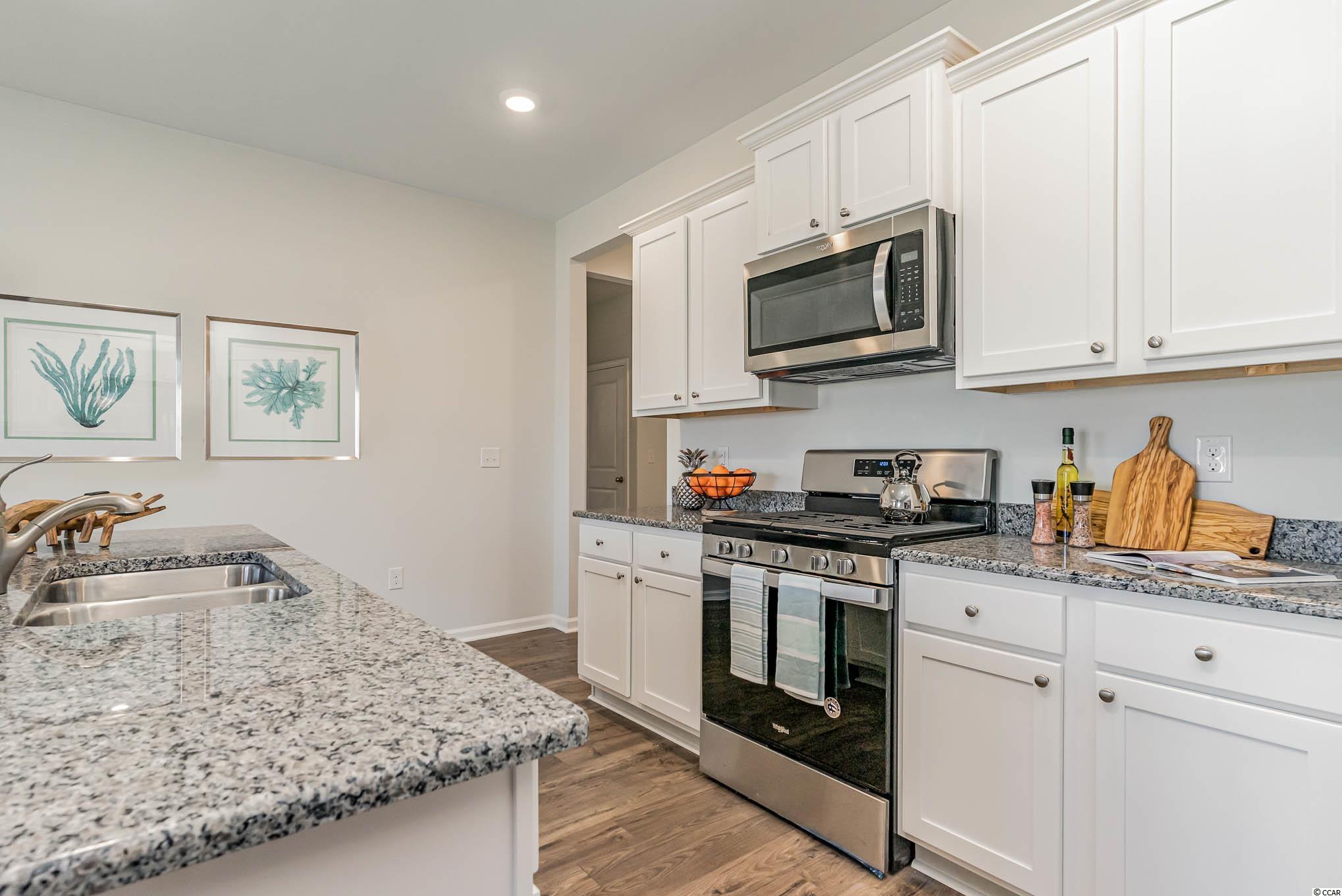 Our Cali plan with brick elevation is the perfect one level home with a beautiful, open concept living area for entertaining. The kitchen features granite countertops, an oversized island, gray painted cabinets, a walk-in pantry, and stainless Whirlpool appliances with a gas range. The large primary bedroom is tucked away at the back of the home, separated from the other bedrooms, with double vanity and 5' shower in the private en suite bath. Low maintenance laminate flooring in the main areas gives the look of wood with easy care and cleanup with tile in both bathrooms and the laundry room. Spacious rear covered porch adds great outdoor living space. This is America's Smart Home! All of our homes come with an industry leading smart home package that allows our homeowners to stay connected with the people and place they value most. *Photos are of a similar Cali plan. (Home and community information, including pricing, included features, terms, availability and amenities, are subject to change prior to sale at any time without notice or obligation. Square footages are approximate. Pictures, photographs, colors, features, and sizes are for illustration purposes only and will vary from the homes as built. Equal housing opportunity builder.)