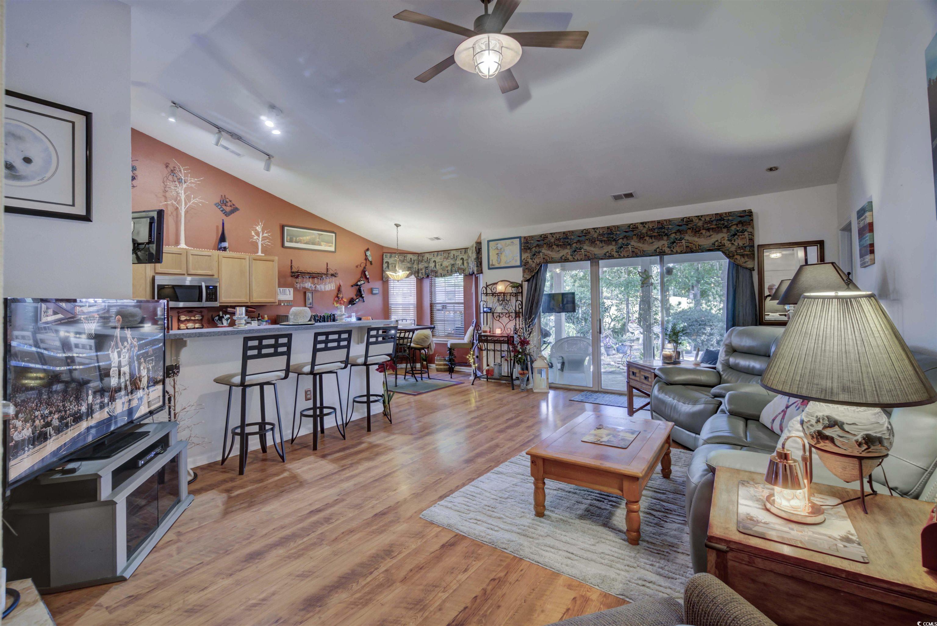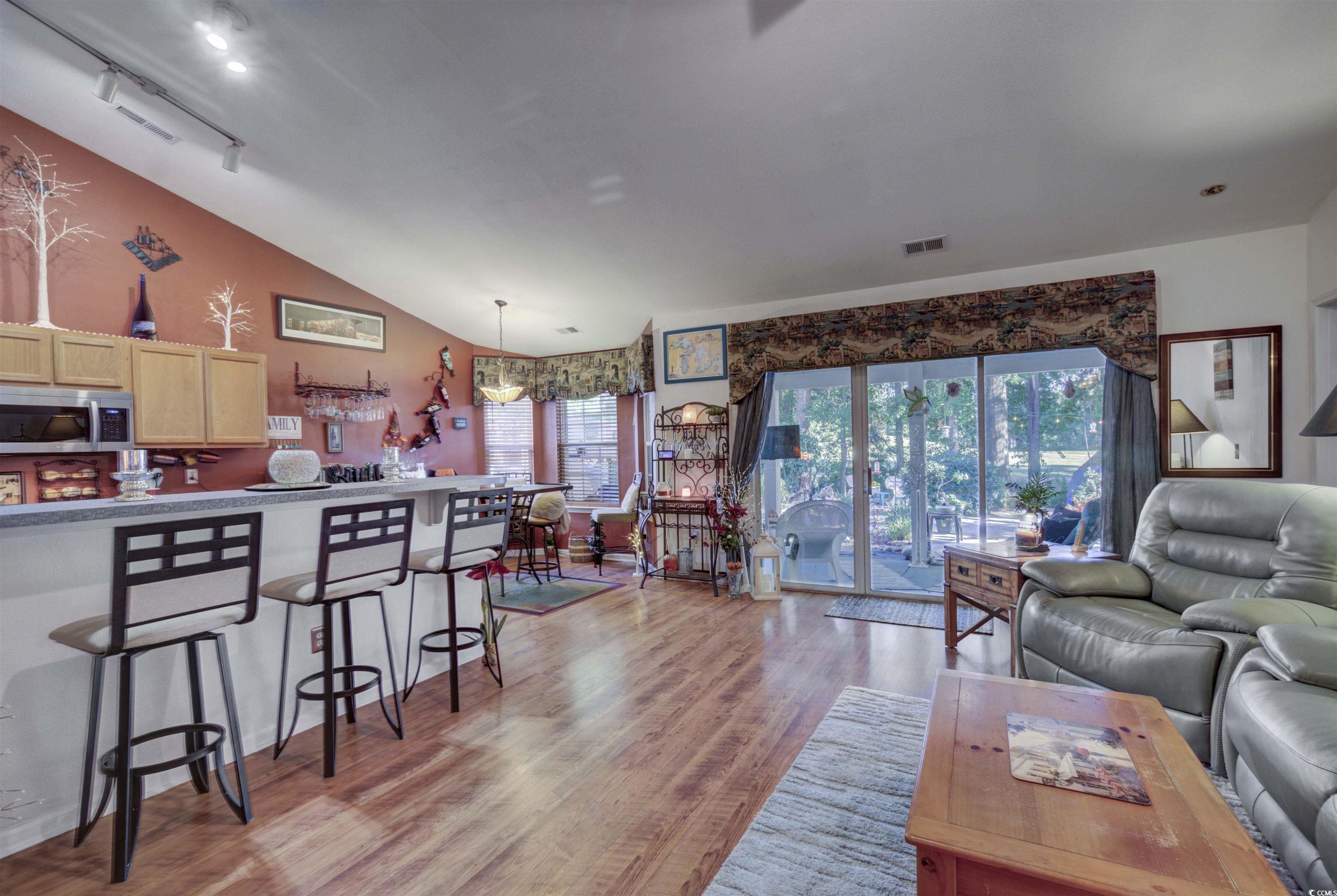 Charming 3 bedroom, 2 bath garden home in Inverness located in the Carolina Forest area of Myrtle Beach. Home features lush, picturesque fenced-in backyard with expansive deck, fountain, extended patio and more. Additional features include: a working wood burning fireplace with custom mantel, freshly painted open concept living area with triple patio doors offering expansive views of the backyard, 195 sq ft of attic storage, added amp service for RV and hot tub, newer LVP flooring in guest bedrooms, bath and kitchen, and a brand new smart stove with induction cooktop. This home is conveniently located to shopping, retail, entertainment and more, but who would want to leave with such a tranquil backyard? Schedule a showing today! Not in town? Request a link to the 3D virtual tour.