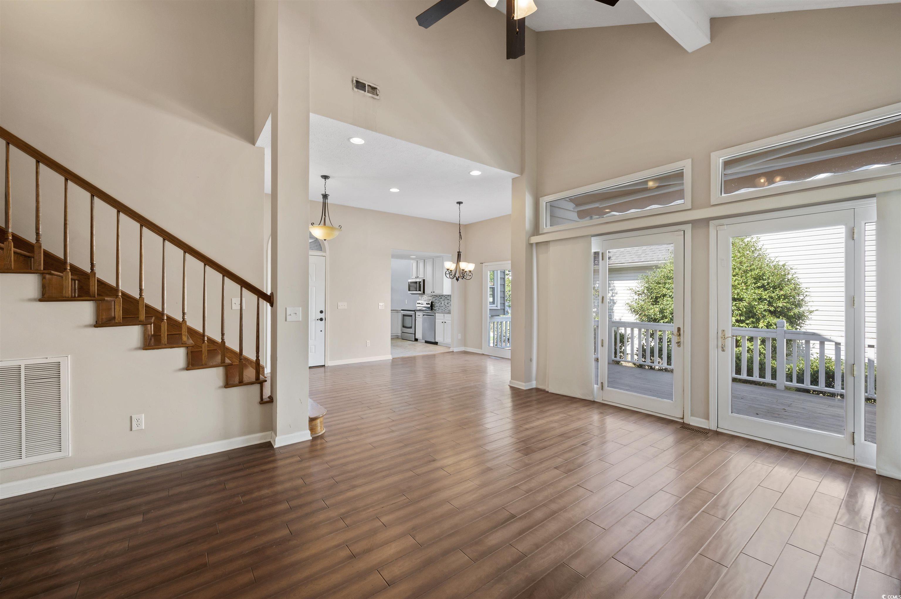 Welcome to the prestigious sought after Prestwick community. This two-story traditional home offers an open concept with a master on the 1st floor! As you enter the foyer area you are welcomed by hard wood flooring, vaulted ceilings and a fireplace. From there the light will lead you to the windows in the Carolina room that looks out onto the private views of the 11th and 12th fairways! The open concept kitchen is adorned with; 42 "" cabinetry, granite, tile back splash, new microwave, new dishwasher and touch faucet. Upstairs is perfect for children or guest with an open loft area, two bedrooms, full bath and two floored storage areas. The outdoors has a 25' x 10' deck with a retractable remote awning. Also, roof was replaced in 2022! Don't miss this opportunity to live in a premier, guarded gate community in an excellent location. Home needs some work , listing price reflects that. Prestwick offers a Pete Dye designed golf course, pool with shaded cabana areas, tennis courts and the beach is only 1/4 mile away as well as close proximity to many activities this area has to offer! Also, a short golf cart away from The Market Common! Buyer must verify square footage.