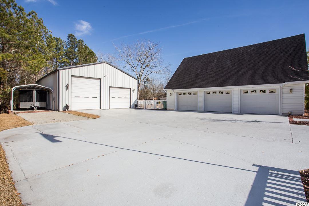Come all you ""Car Enthusiasts"" and ""Country Living Perfectionists"" to this meticulously maintained property sitting on 1.55 acres in Loris with NO HOA, only 30 minutes away from the beach. Attached 3 car garage plus detached 36' X 50' garage with heat pump. Country living at its finest. Enter from the covered new front porch to a grand tiled foyer with wooden staircase on right and powder room on your left. Continue into Living room with brick fireplace, massive 2 story windows, french doors and wood floors. Large master bedroom to your right with another office space, french doors, walk-in closet, dressing area and tiled bathroom with whirlpool tub and separate shower. Follow wood floors to office/den enclosed with pocket doors, cross over to formal dining room w/ french doors and then into remodeled kitchen. Kitchen updated with tile floors, granite counter tops, tile back splash, stainless appliances, double ovens, huge refrigerator, island, pantry and eat-in area. French doors lead out to covered patio area. Follow tile floors to laundry room with storage closet & extra cabinets, then to main 3 car garage. Check out the backyard with a 2 car detached garage (36'X50') with its own heat pump & 2 carports. Fenced in area with garden shed and patio areas. Yard is nicely landscaped and has an irrigation well system.