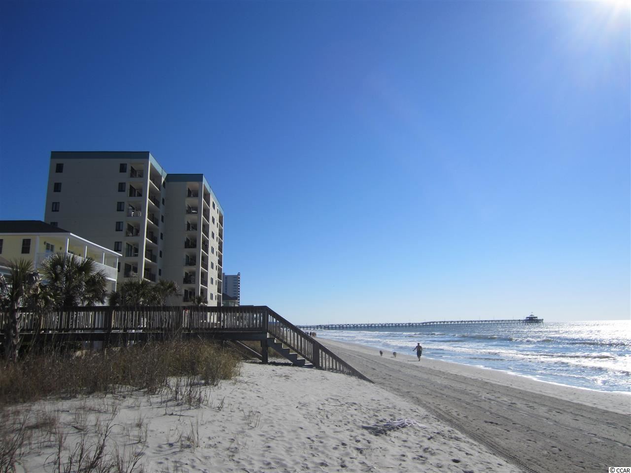 Steps to the beach @ The Oceans Edge in the popular Cherry Grove section of North Myrtle Beach. This first floor 2BR/2BA unit is sold fully furnished and offers an open floor plan, private screened porch, ceiling fans in living room & bedrooms, full size laundry closet & extra storage room in the foyer . Assigned covered parking with ground level storage room for the beach supplies! Outdoor pool or head to the beach. Elevator if needed but this unit is so convenient just at the top of the stairs on the first floor! Great price- come and enjoy fall at the beach and a great buy in your very own beach escape!