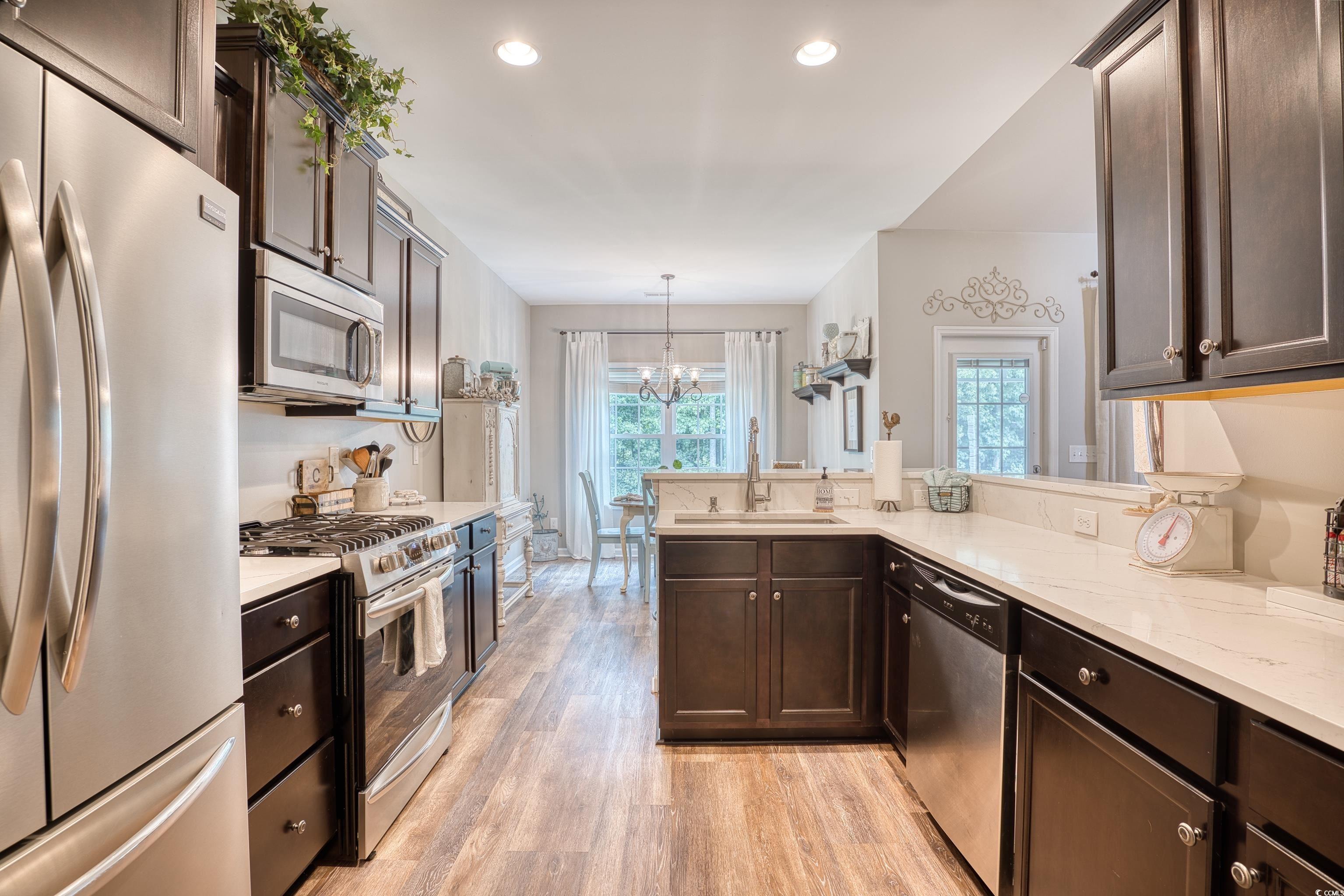 Welcome to your new home at 212 Grasmere Lake Circle in the picturesque city of Conway, SC. Imagine starting your day in this charming 3-bedroom, 2-bathroom residence, where the 15 ft vaulted ceilings and open space in the living room create a warm and inviting atmosphere. Enjoy your morning coffee while the ceiling fan provides a gentle breeze, setting the perfect tone for the day. The rest of the home offers 9ft ceilings. Step into the modern kitchen, equipped with stainless steel appliances, quartz countertops, recessed lighting, and natural gas for cooking. Preparing meals becomes a delightful experience in this well-appointed space. The open layout ensures you're always connected with family and friends, whether they're gathered in the living room or eat in kitchen. The luxury vinyl plank (LVP) flooring in the main area and primary bedroom adds a touch of elegance and durability to your home. Retreat to the primary bedroom, a true sanctuary featuring a trey ceiling and a ceiling fan for ultimate comfort. The spacious room offers a peaceful escape at the end of the day. Two additional bedrooms provide ample space for children, guests, or a home office, ensuring everyone has their own comfortable space. Outdoor living is a joy with a screened porch and patio, perfect for hosting barbecues or simply relaxing in your fenced-in yard. The 2-car finished garage, complete with pull-down stairs, a screen, and side door, provides convenient access and plenty of storage space. Beautiful exterior finish with brick veneer, vinyl siding and gutters. As part of this wonderful community Baron's Bluff North, you'll have access to a refreshing salt water pool, perfect for cooling off on hot summer days. Living at 212 Grasmere Lake Circle means enjoying a blend of modern amenities, comfort, and a vibrant community lifestyle. This home offers everything you need to create lasting memories. Schedule a viewing today and start envisioning your life in this beautiful home!