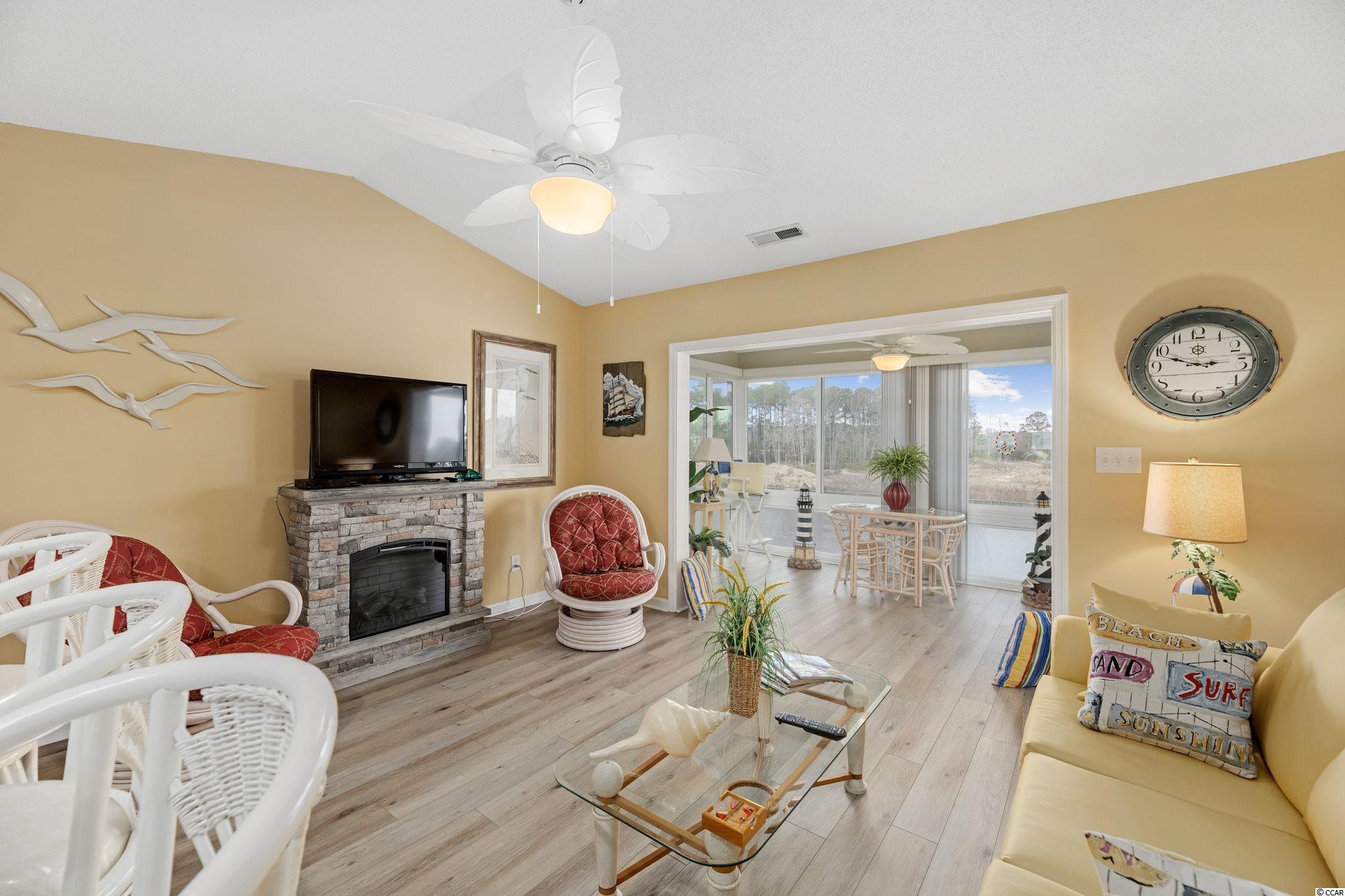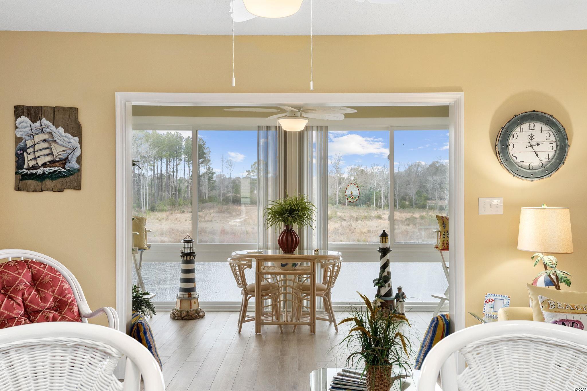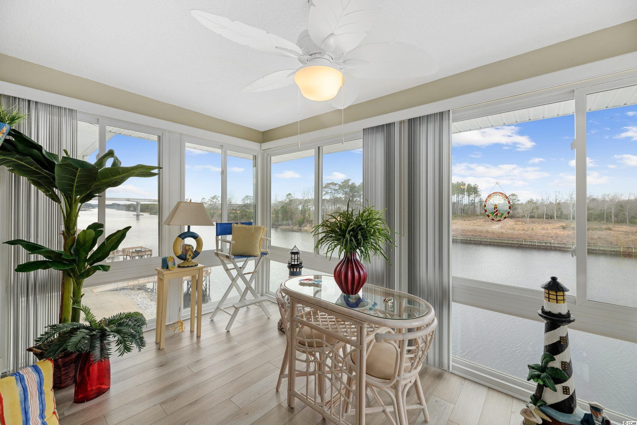 Amazing waterway views from this 1BR-1BA condo in the gated Waterway Landing community in North Myrtle Beach! Morning coffee, quiet moments, reading or entertaining in the Carolina Room....priceless. Beautifully decorated (sold furnished) and in pristine condition. Beautiful laminate flooring in bedrooms & living area. A cozy electric fireplace is in the living room. The swimming pool and hot tub are a few steps away. Waterway Landing is minutes from restaurants, shopping, entertainment and of course the beach and Main St area of North Myrtle Beach.