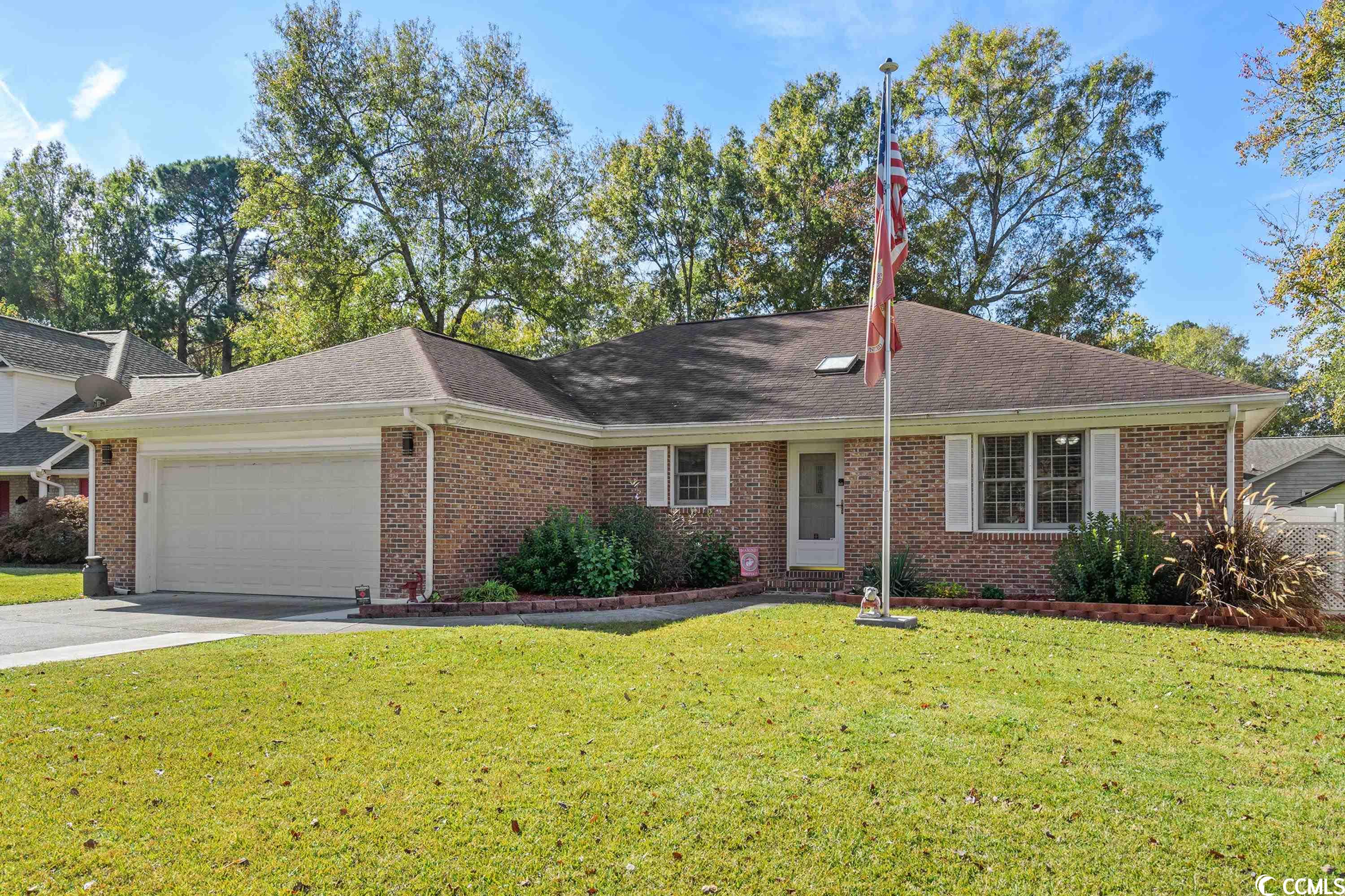 Beautiful all brick home has been excellently and carefully maintained. New quartz countertops in the kitchen. New backsplash in kitchen. The new kitchen appliances are LG Thinq. Oven and Microwave double as air-fryers. The living area is open concept with vaulted ceiling. The home has four bedrooms and two bathrooms all on one single level. Split bedroom floorplan with primary bedroom suite on one side complete with one walk in closet and separate standard closet. The primary suite has bathroom with tub and shower and new toilet. Sink in bathroom and double vanity outside of walk-in closet with skylight above. The guest bedroom side of the house has three bedrooms. New toilet in guest bath. Additional sunroom area out back leads to a new deck of treated wood in the back yard. New privacy fence in back yard. Home is move in ready!