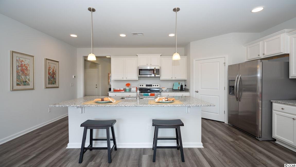 Our Cali plan is a thoughtfully designed one level home with a beautiful, open concept living area that is perfect for entertaining. The kitchen features granite countertops, an oversized island, 36"" white painted cabinetry, a walk-in pantry, and stainless appliances. The large owner's suite is tucked away at the back of the home, separated from the other bedrooms, with a walk-in closet and spacious en suite bath with a double vanity, 5' shower, and separate linen closet. Laminate wood flooring in the main areas! Spacious covered rear porch adds additional outdoor living space. This is America's Smart Home! Each of our homes comes with an industry leading smart home package that will allow you to control the thermostat, front door light and lock, and video doorbell from your smartphone or with voice commands to Alexa. *Pictures are of a similar Cali plan. (Home and community information, including pricing, included features, terms, availability and amenities, are subject to change prior to sale at any time without notice or obligation. Square footages are approximate. Pictures, photographs, colors, features, and sizes are for illustration purposes only and will vary from the homes as built. Equal housing opportunity builder.)
