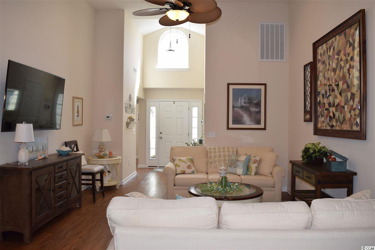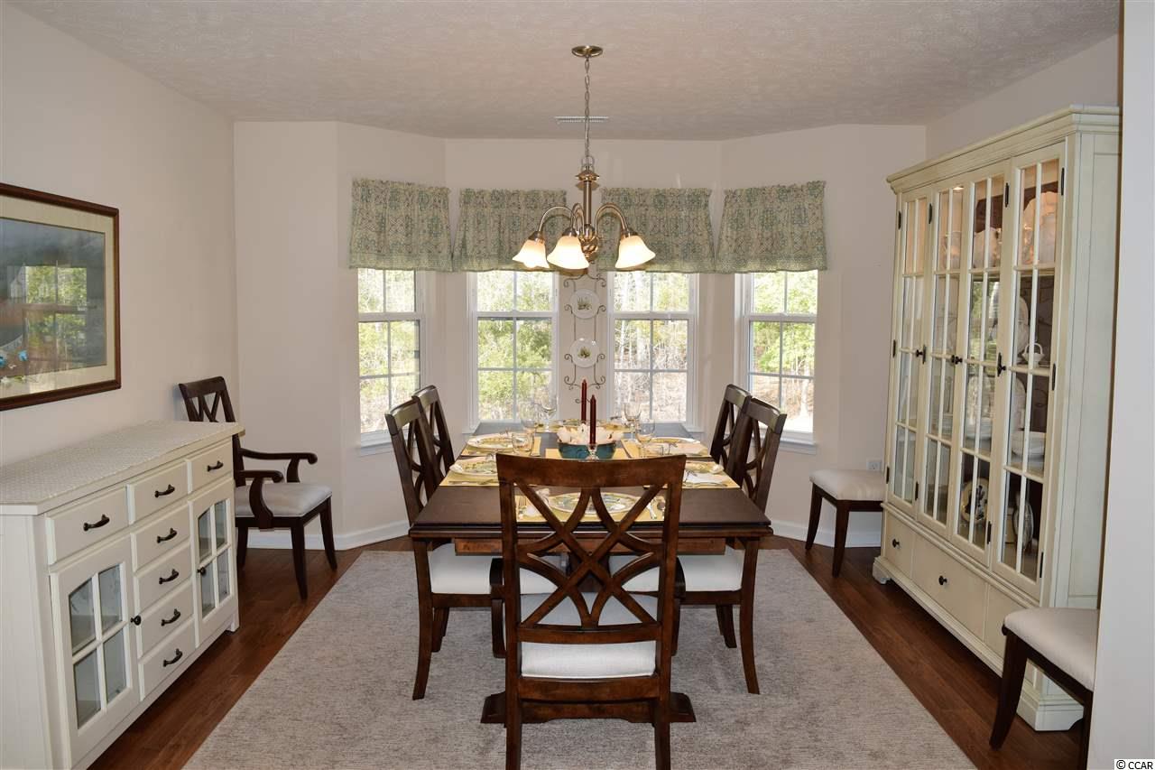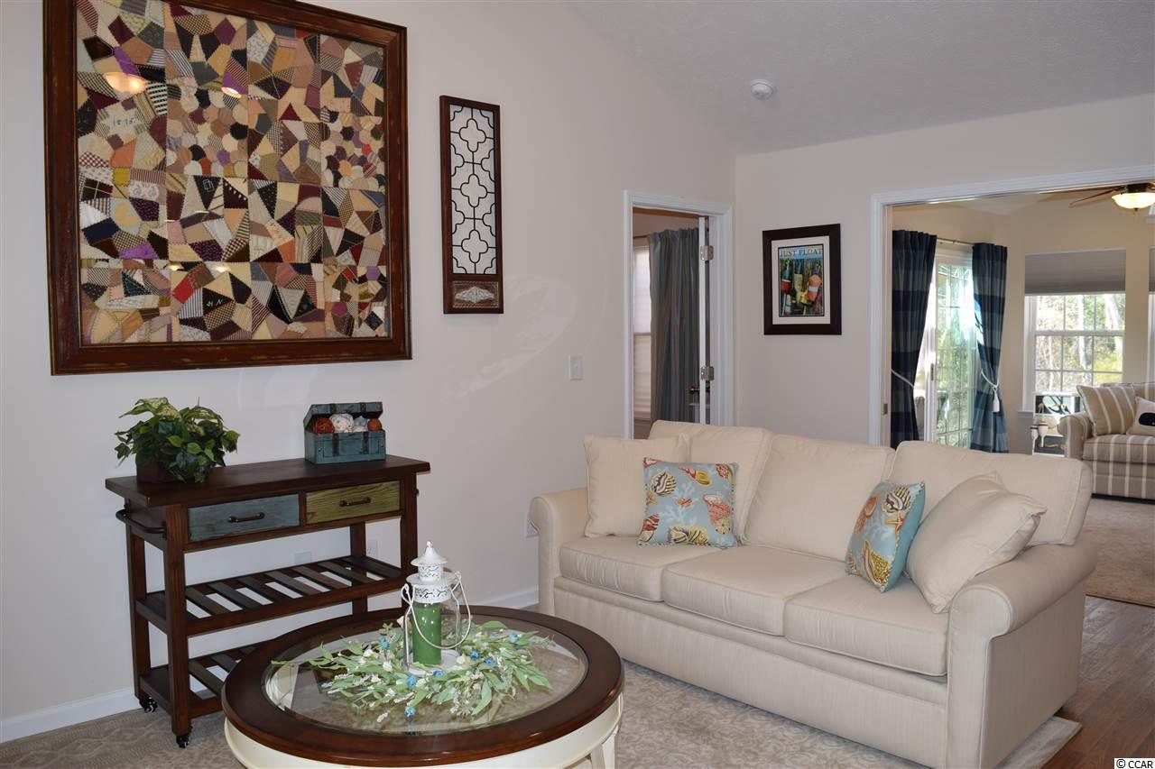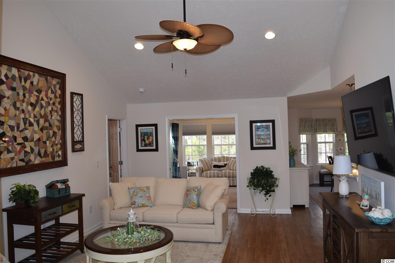 Better than brand new open floor plan home just minutes to the beach. This immaculate home feels super spacious and boasts a large Carolina room in addition to three bedrooms and two baths. The family room has vaulted ceilings and opens to the lovely vaulted Carolina room that overlooks the large back yard with woods behind. The kitchen has been beautifully upgraded with maple glazed cabinets, granite, and stainless steel appliances. The dining room has a bay window to enjoy the view and ample room for a big table, hutch and buffet. The kitchen has granite counters, stainless steel appliances, upgraded cabinets and a pantry. The master suite has a big walk in closet, tray ceiling and an ensuite bath with a garden tub, linen closet and special features such as a custom mirror and comfort height toilet. The front bedroom has a vaulted ceiling and palladium window. The third bedroom has a big closet. Both bedrooms were enlarged 2' in width and 1' in length during construction. The laundry room has a big linen closet. The lighting throughout the home has been upgraded with recessed lighting, nice ceiling fans, and exterior motion lights. The garage has attic stairs and a side door. The back patio is 10 x 14. This beautiful home has it all and a great location just minutes to the ocean, shopping, dining and recreation at the Market Common, good schools, and all the fun of the Grand Strand. There is also a nice community pool. This is the home for you!