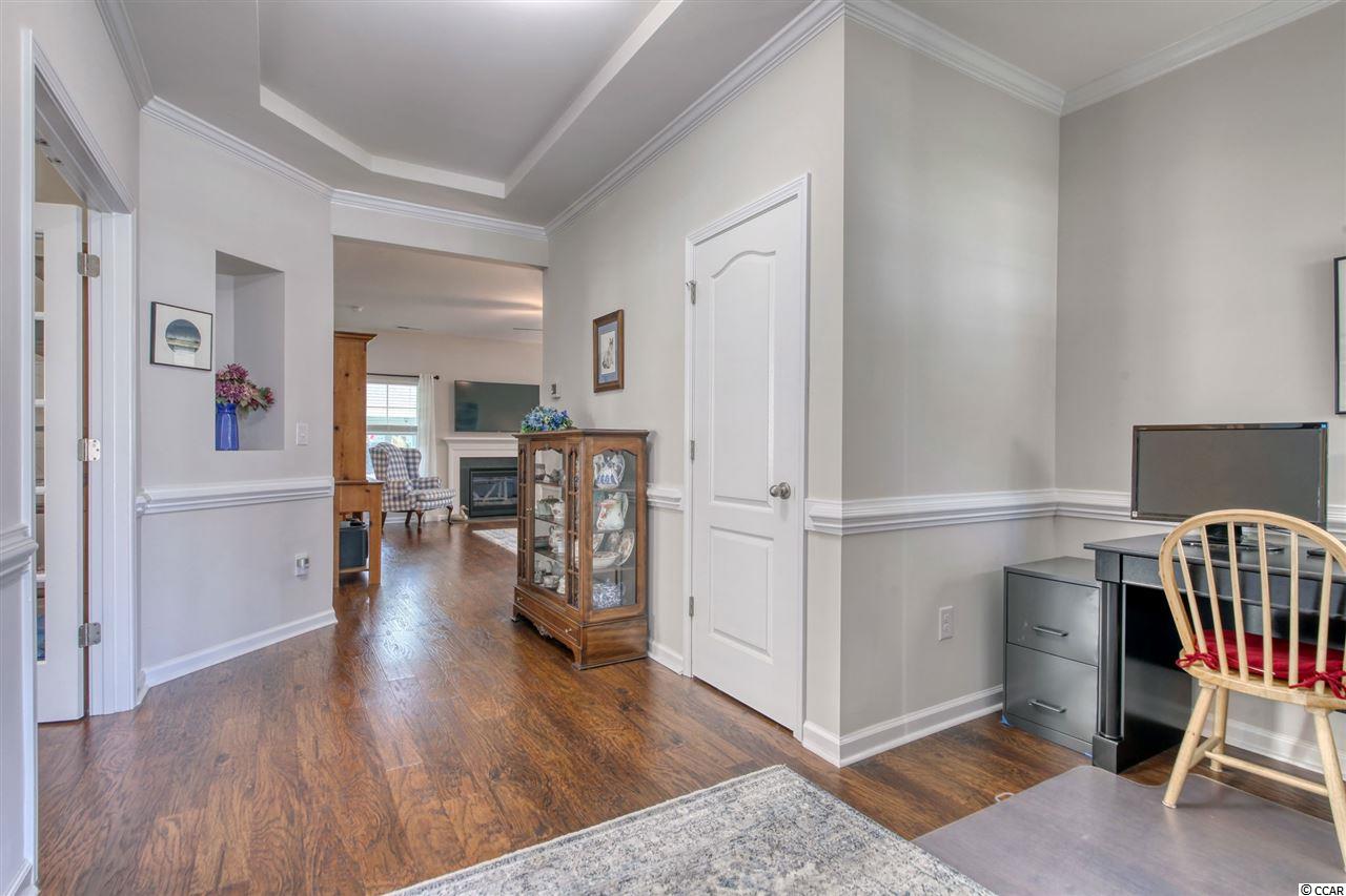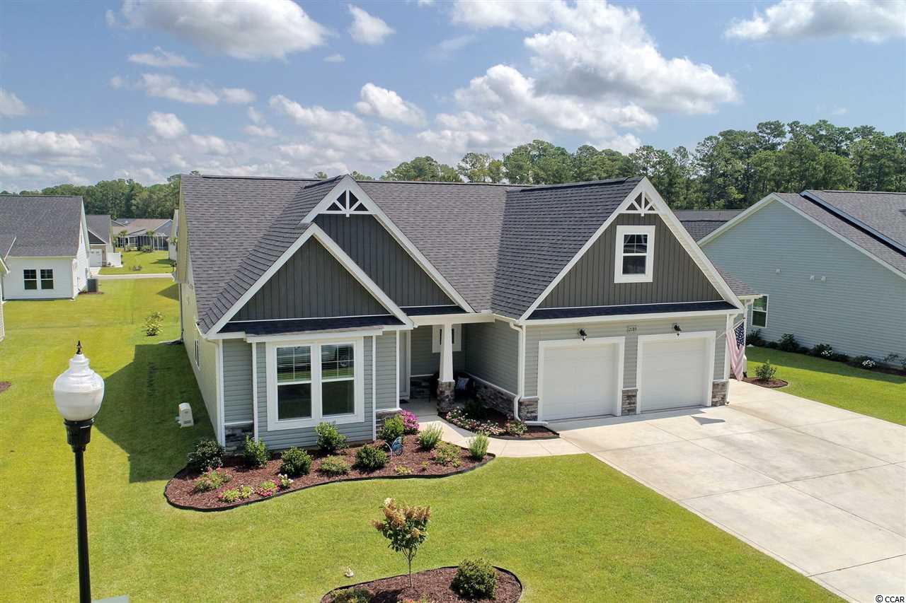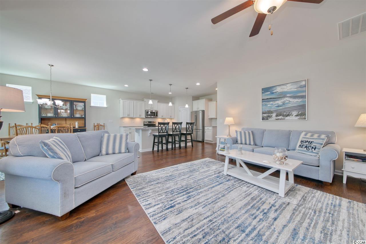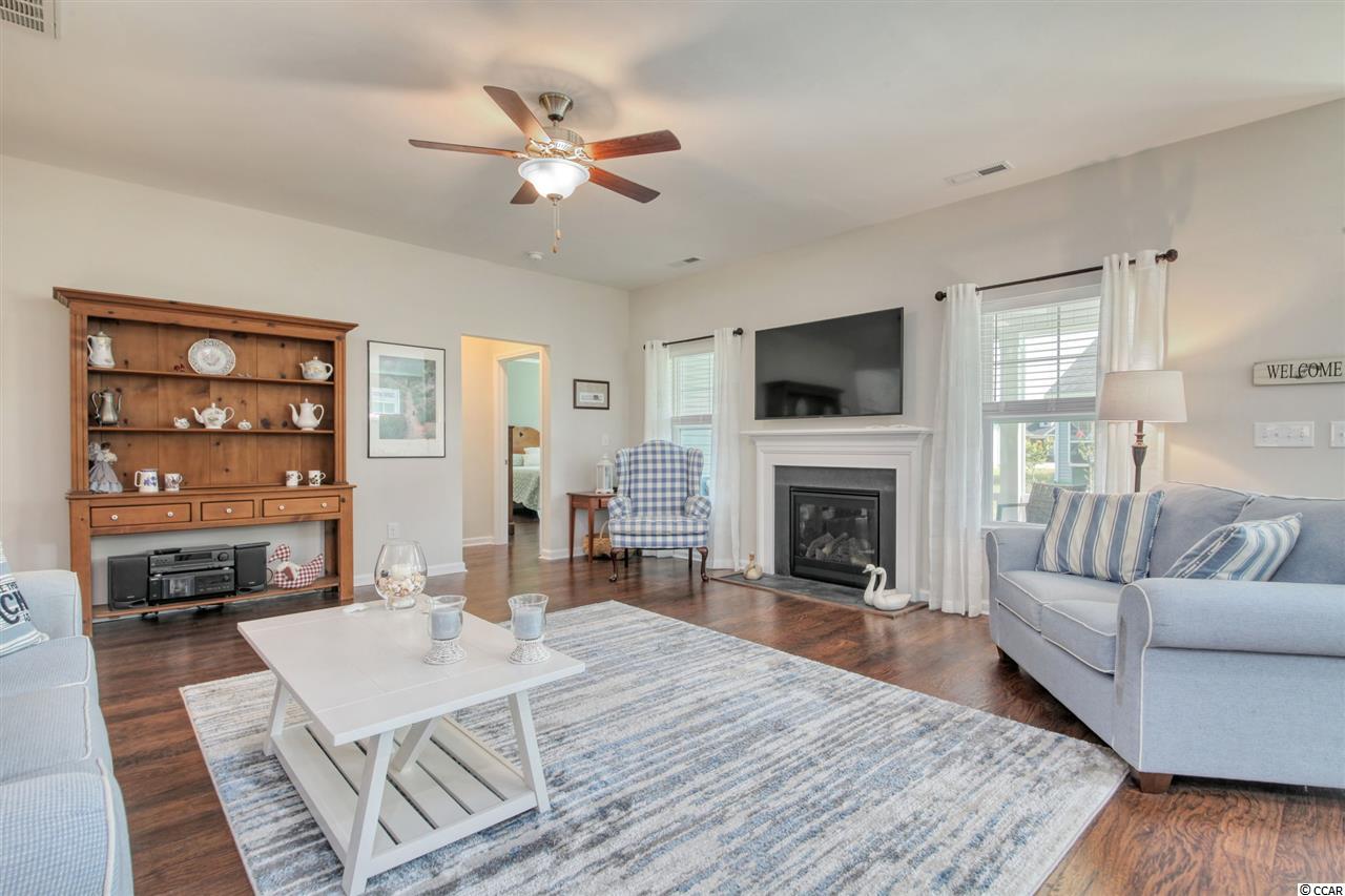 Welcome to your new bright and cheery 3BR, 2 BA home with a third car garage featuring everything you need for a relaxing lifestyle. Built only one year ago, this home minimizes maintenance with all new appliances, HVAC, and roof. Enjoy your morning coffee on the enclosed back porch facing the morning sun and stay cool there on hot afternoons. Rest easy knowing that flood insurance is not required in Springmill Plantation! From the moment you enter the spacious foyer of this H&H Homes Wrightsville model, natural light and a serene color palette beckon you to spend time in the open and airy great room, kitchen, and dining area. Entertain around the gas log fireplace in the great room, or setup your grill on the deck area. The kitchen offers granite countertops, stainless steel appliances, faucet with built-in sprayer, huge island with breakfast bar, and walk-in corner pantry. Owner's suite includes tray ceiling, closet upgrade, separate vanities, and walk-in shower. Two additional bedrooms access the full hall bath. The home displays engineered hardwood floors in the main living areas and tile in the bathrooms. A huge laundry room with vinyl floor helps keep clothes in one area. Experience the low maintenance yard work with updated backyard landscaping, including new sod, trees, and plants. Special features include recessed lighting in the kitchen, nook in the hallway, sitting/office area and tray ceiling in the foyer, deep coat closet, French doors on one of the guest rooms, and Legrand WiFi panel installed in a central location. The expansive garage allows you to park your vehicles and all your lawn/sport equipment with plenty of room to use as a workshop. The garage entrance with windows brings in light. Springmill Plantation offers residents low HOA fees, an outdoor pool, club house with fitness room and a Social Club, sidewalks on the main road, and ponds. Your new home is just a short distance to the community pool.