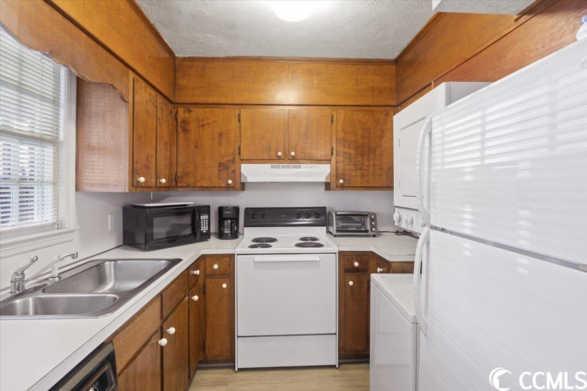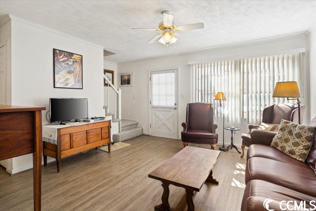 This cozy, all-brick, 2BR townhome is one of seven units total, with NO HOA and nestled just ONE block from the 76th Ave. N Beach access!!! Perfect location for low maintenance ocean living, use as a second residence, or provide long-term rental income! A hidden gem with convenience to many restaurants, shopping, hospital facilities, and several updates including HVAC, water heater, and LVP/carpet flooring. Don't miss your chance to own this slice of heaven at the beach!