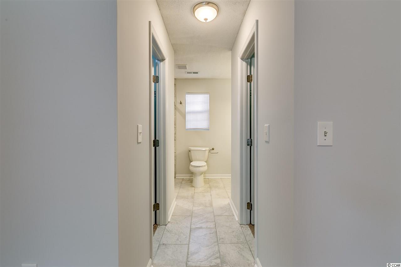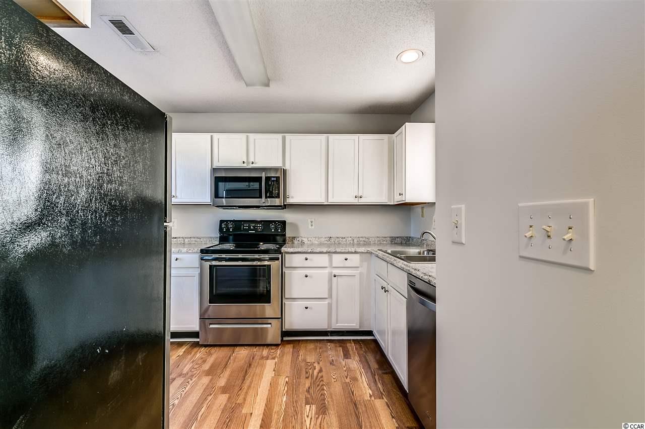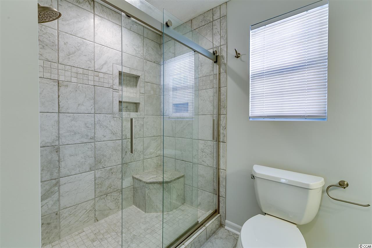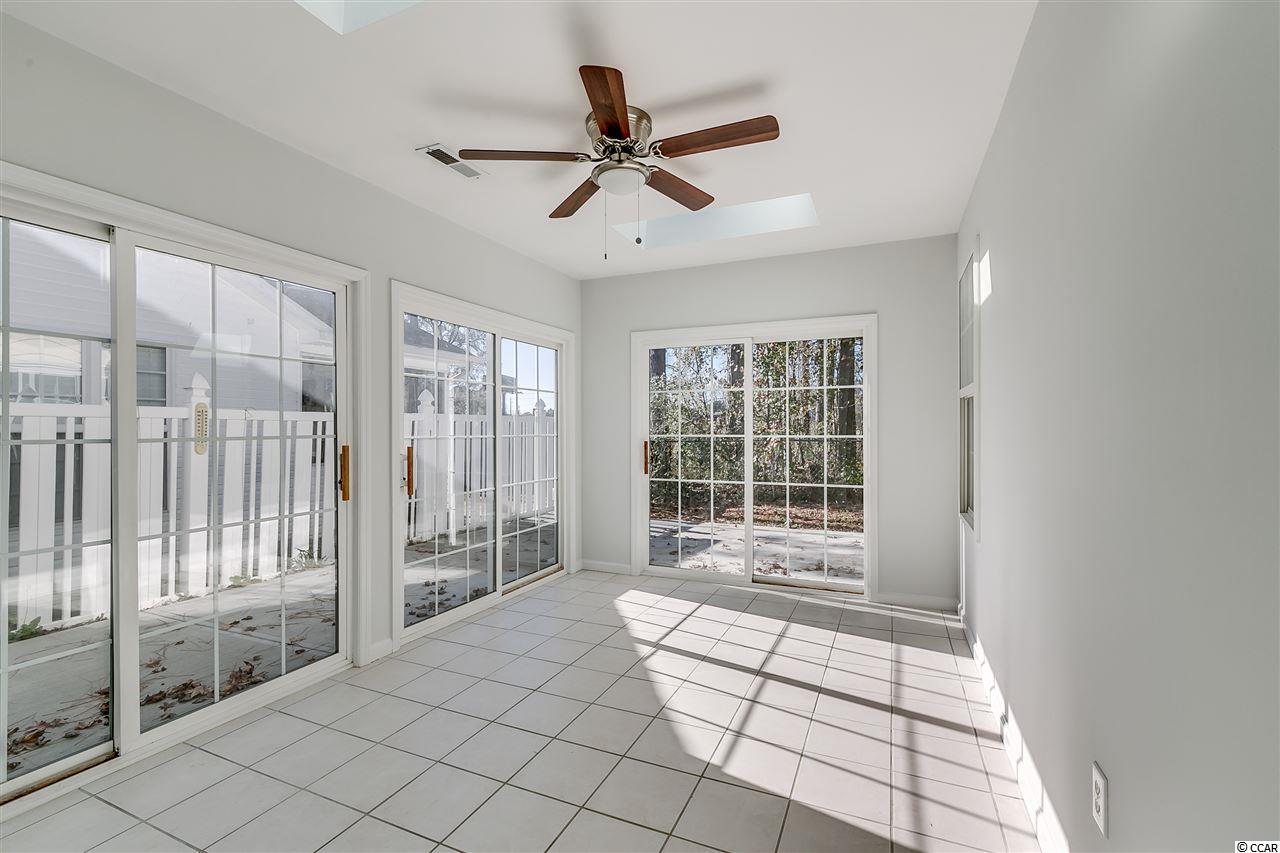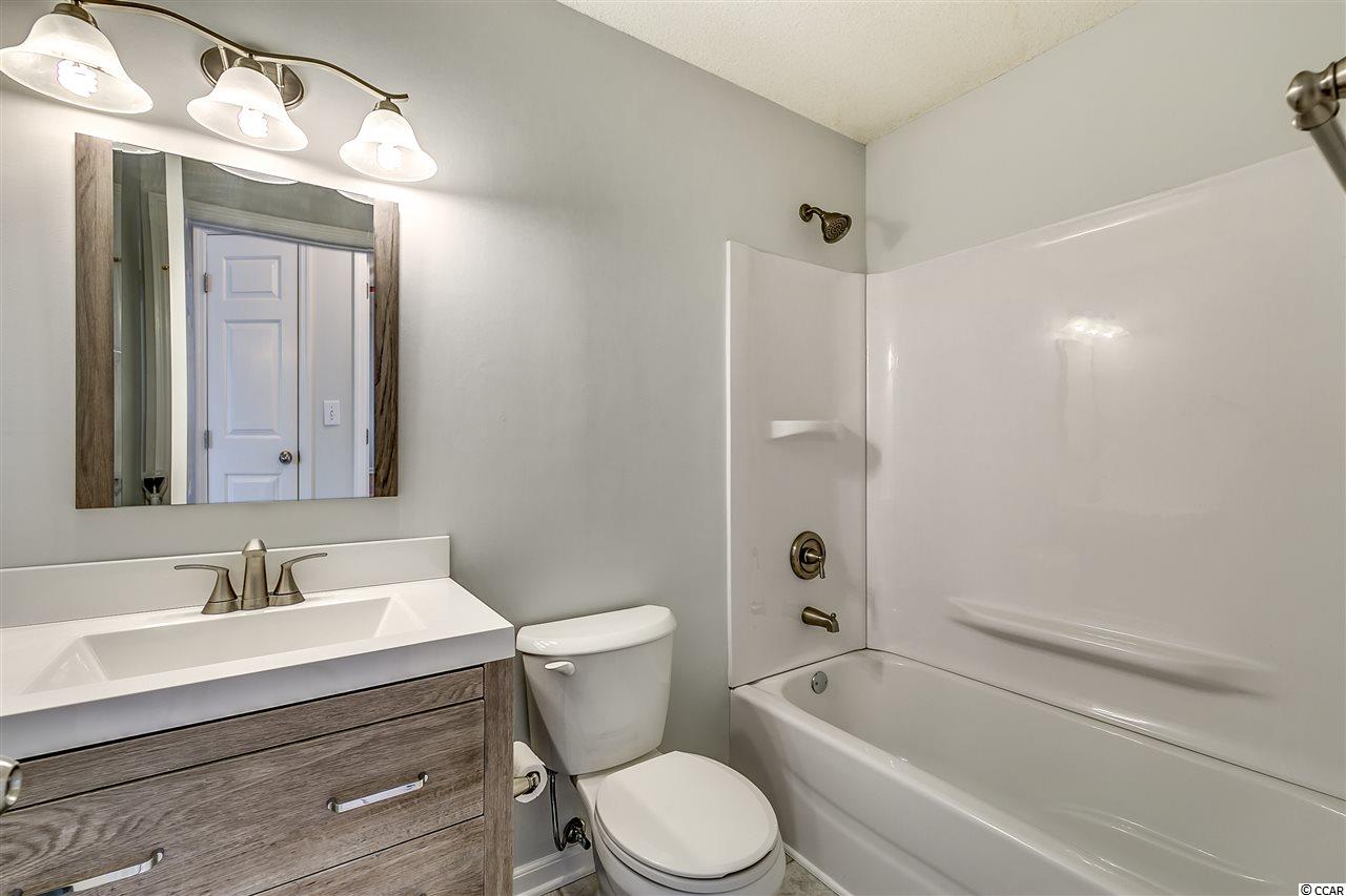 Well-maintained 2 bedroom, 2 bath home with Carolina Room and 2-car attached garage. Home is nestled among mature trees in the Colonial Place subdivision of Colonial Charters. With just over 1200 heated sqft, this home provides ample living space with plenty of sunlight. Home has a new roof in 2015 and newly painted interior walls and kitchen cabinets in 2017. HVAC new in 2013. Kitchen boasts all new stainless steel kitchen appliances: stove, microwave above stove, dishwasher, refrigerator; new granite-look laminate countertops; and new sink and faucet. Side-by-side washer & dryer convey with property. Huge living and dining room combination has vaulted ceilings, new ceiling fan, new dining room light, 12 tile floors, and a corner gas log fireplace. Master bedroom has vaulted ceilings, laminate floors, ceiling fan and 2 walk-in closets. Master bathroom has been totally renovated with new rectangular tile floors, new toilet, new double sink vanity, new light fixtures and a gorgeous new floor-to-ceiling 5 tile shower with a bench and designer glass sliding doors. Guest bedroom also has a ceiling fan and laminate floors. Guest bathroom has new tile floors, new designer vanity, new toilet and new tub/shower combo. Bright and sunny Carolina room is just off the living room, has a ceiling fan and could be used as 3rd bedroom. 2 sets of sliding doors lead to a wrap-around patio with over 278 sqft of entertaining area. Back yard is fully fenced in with 6 fencing on left side. Property backs up to trees for added privacy. The nicely-sized 2 car garage has a pull down attic for additional storage. Home has low-maintenance vinyl siding on exterior. Subdivision allows owners to have pets as well as golf carts and motorcycles. HOA fees cover common area expenses, trash pick-up, road maintenance and pool service. Owners are allowed to use the Colonial Charters pool. Incredible location just out of the citys traffic, yet less than 10 minutes to the sandy beaches of the Atlantic Ocean. As well, enjoy Ocean Drives shagging clubs, arcades, shopping, dining and entertainment. Come see this fantastic home today!