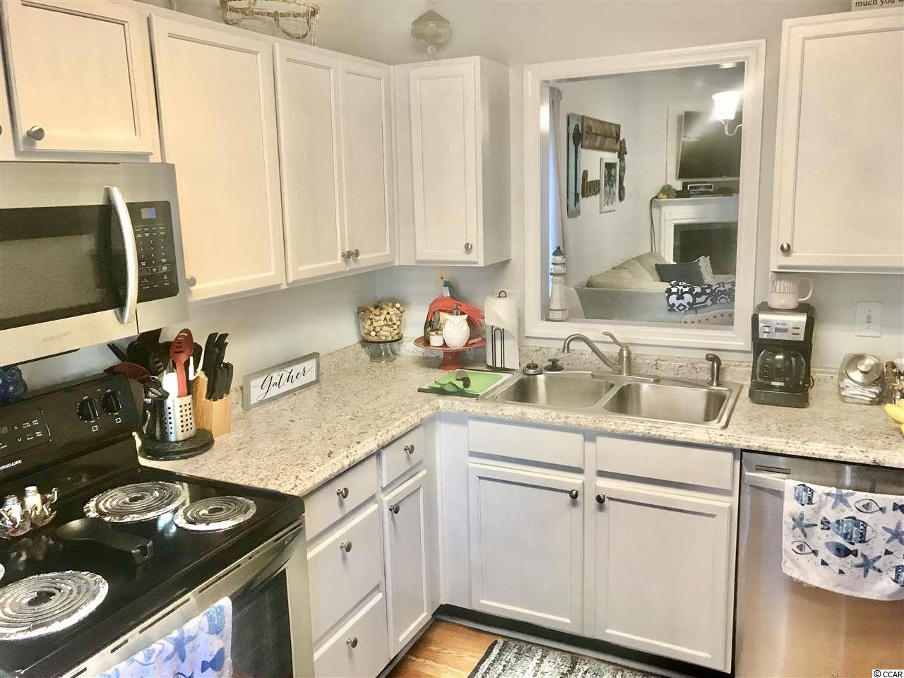If you are buying your first house or are looking for a second home, Come to your little slice of heaven only a few minutes from the beach. 2 Bedroom @ 2 bath home and a Carolina Room with a 2 Car Garage nestled among mature trees within Colonial Place Subdivision of Colonial Charters. This floor plan allows for ample natural light and over 1200 sq feet of living space including a carolina room which could act as office or 3rd bedroom. New HVAC in 2013. New Roof 2015 In 2017 interior had a complete makeover including painted interior and kitchen cabinets updated light fixtures tile and laminate flooring fully updated bathrooms. Kitchen upgraded with stainless Steel Appliances, even new granite look- Laminate countertops and a new sink and faucet Great room offers a huge well lit living area, a ceiling fan and a corner gas log fireplace. Master bedroom boasts vaulted ceilings, ceiling fan, laminate floors and two walk in closets. Master bath has rectangular tile flooring, double vanity, 5' tile shower with bench and designer glass doors. Carolina Room could be used as third bedroom or office, lots of light from the 2 glass sliding doors which exits to a wrap around patio with 278 sqft of entertaining area. Fully fenced back yard which backs up to trees for added privacy. Owners allowed access to Colonial Charters pool . Only 10 minutes from Beaches and all North Myrtle Beach has to offer. more pics to come