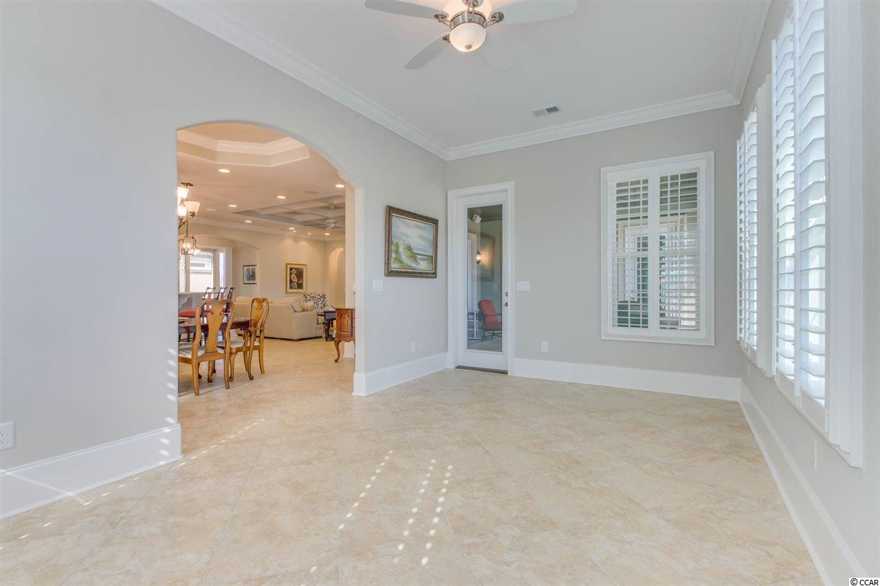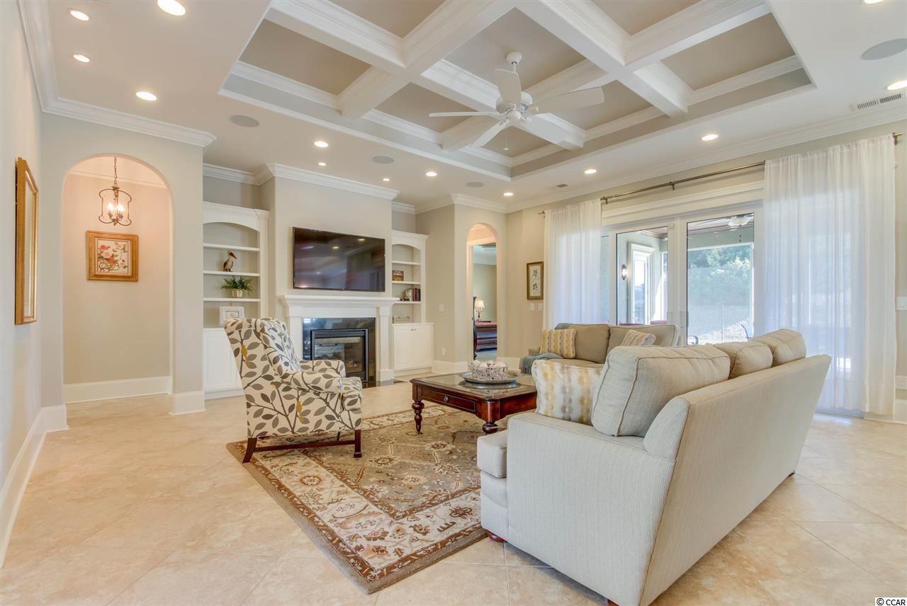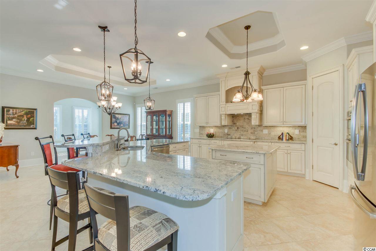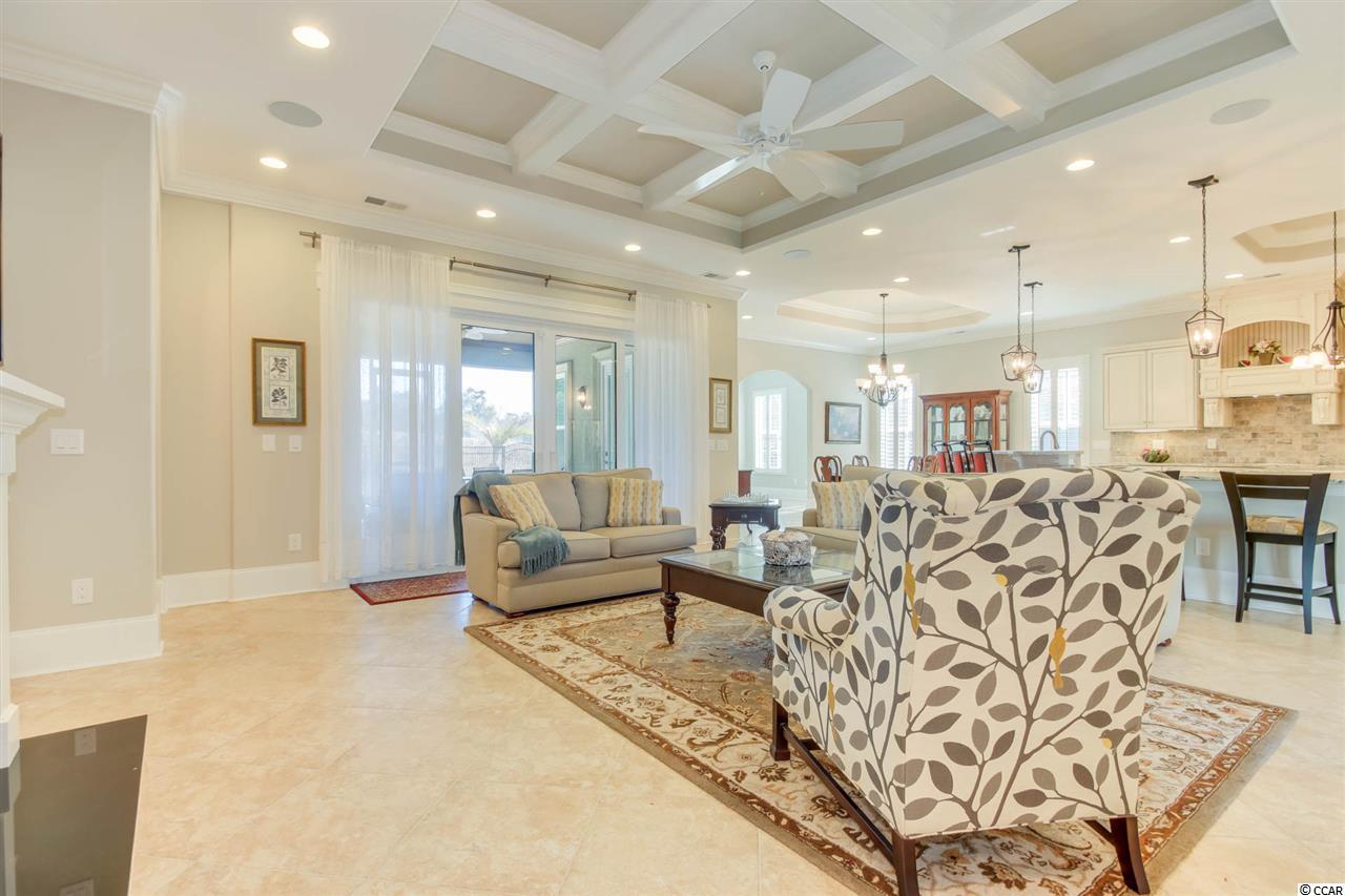 CUSTOM BUILT - Absolutely Stunning Architecture in this Meticulously Maintained, Pristine and Move in Ready Home with ~ 3000 Heated Square Feet of Living Space! This home is located in one of Barefoot Resorts newest communities - Tuscan Sands! Enter your new home through a grand courtyard with landscaped beds and cobblestone pavers. Open the beautifully detailed glass front door to be swept away by the breathtaking spaciousness and Mediterranean style throughout! Your eyes will be drawn to the 11 foot coffered ceilings in the open concept family room and kitchen and the Beautiful tile floors throughout all living areas and the master suite! 4 bedrooms and 3 baths include a front bedroom which could also be an office or study, an oversized 2nd bedroom with ensuite bath, and a luxurious Master Suite with ample room for a sitting area that opens out to the screened porch. A Carolina room spans the back of the house on one side with windows overlooking the Greg Norman golf course adjacent to the ICW. Exclusive Dye Club Membership for Golf, Swim & Spa Privileges is Transferrable with Fee. Convenient to all Barefoot and North Myrtle have to offer!