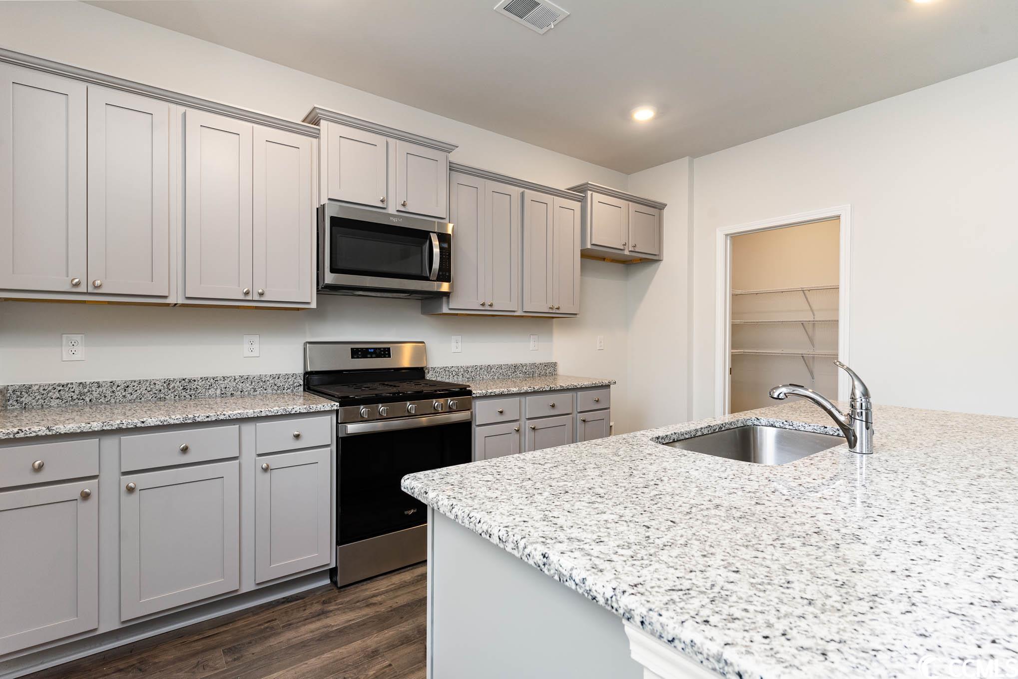 This spacious two level home has everything you are looking for! With a large, open concept great room and kitchen you will have plenty of room to entertain. Granite countertops with breakfast bar, stainless steel Whirlpool appliances and gas range, large walk-in pantry, and beautiful and durable LVP wood flooring all included! The first floor also features a great size flex room with French doors that could be a formal dining room or office. Sliding glass doors off the great room lead to the rear covered porch! Your primary bedroom suite awaits upstairs with huge walk-in closet and very spacious en suite bath with double sinks, 5' shower, and linen closet. Simplify your life with a dream home that features our industry leading smart home package. Control the thermostat, front door light and lock, and video doorbell from your smartphone or with voice commands to Alexa! Its a home that adapts to your lifestyle. *Photos are of actual home. (Home and community information, including pricing, included features, terms, availability and amenities, are subject to change prior to sale at any time without notice or obligation. Square footages are approximate. Pictures, photographs, colors, features, and sizes are for illustration purposes only and will vary from the homes as built. Equal housing opportunity builder.)