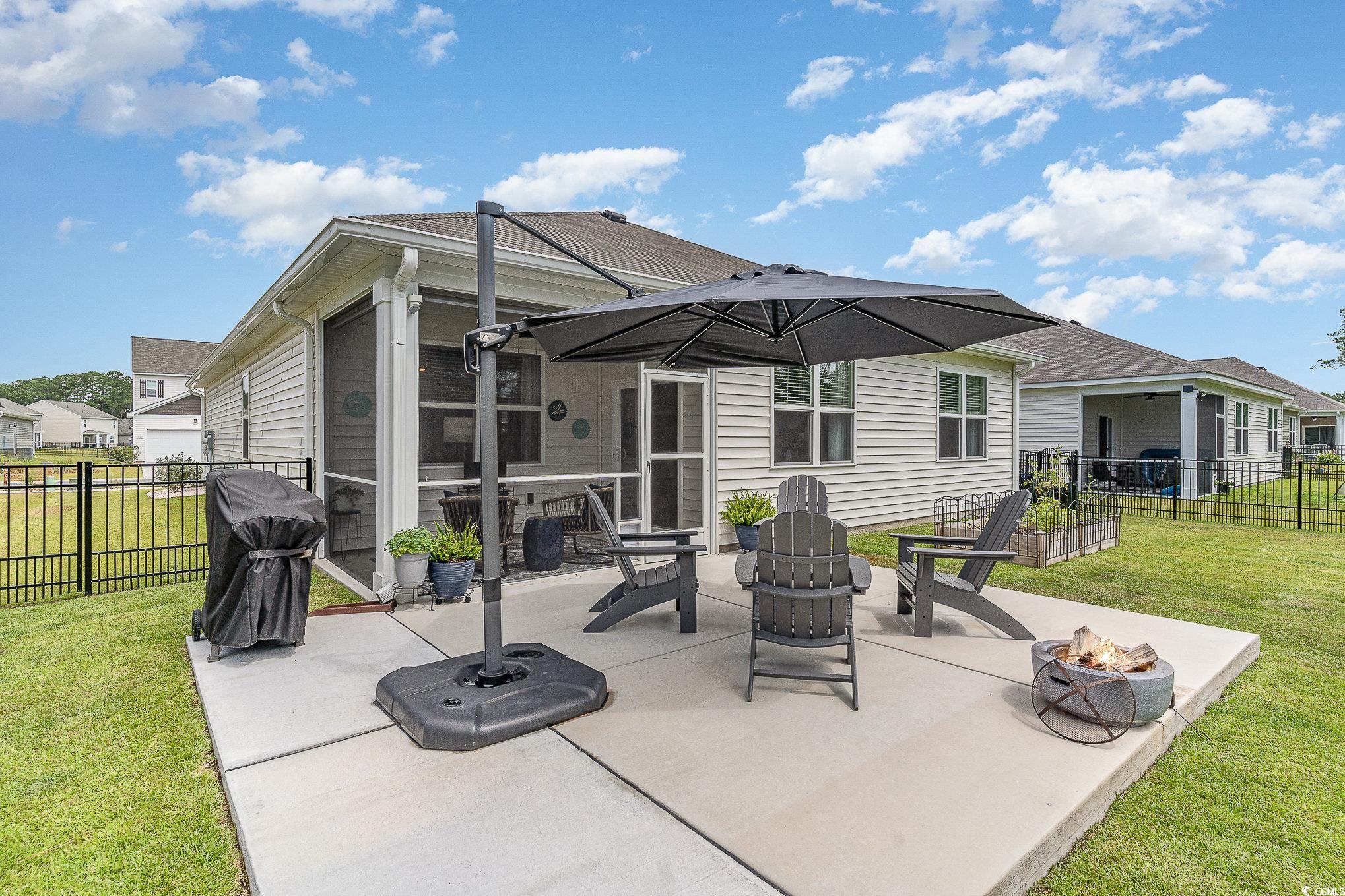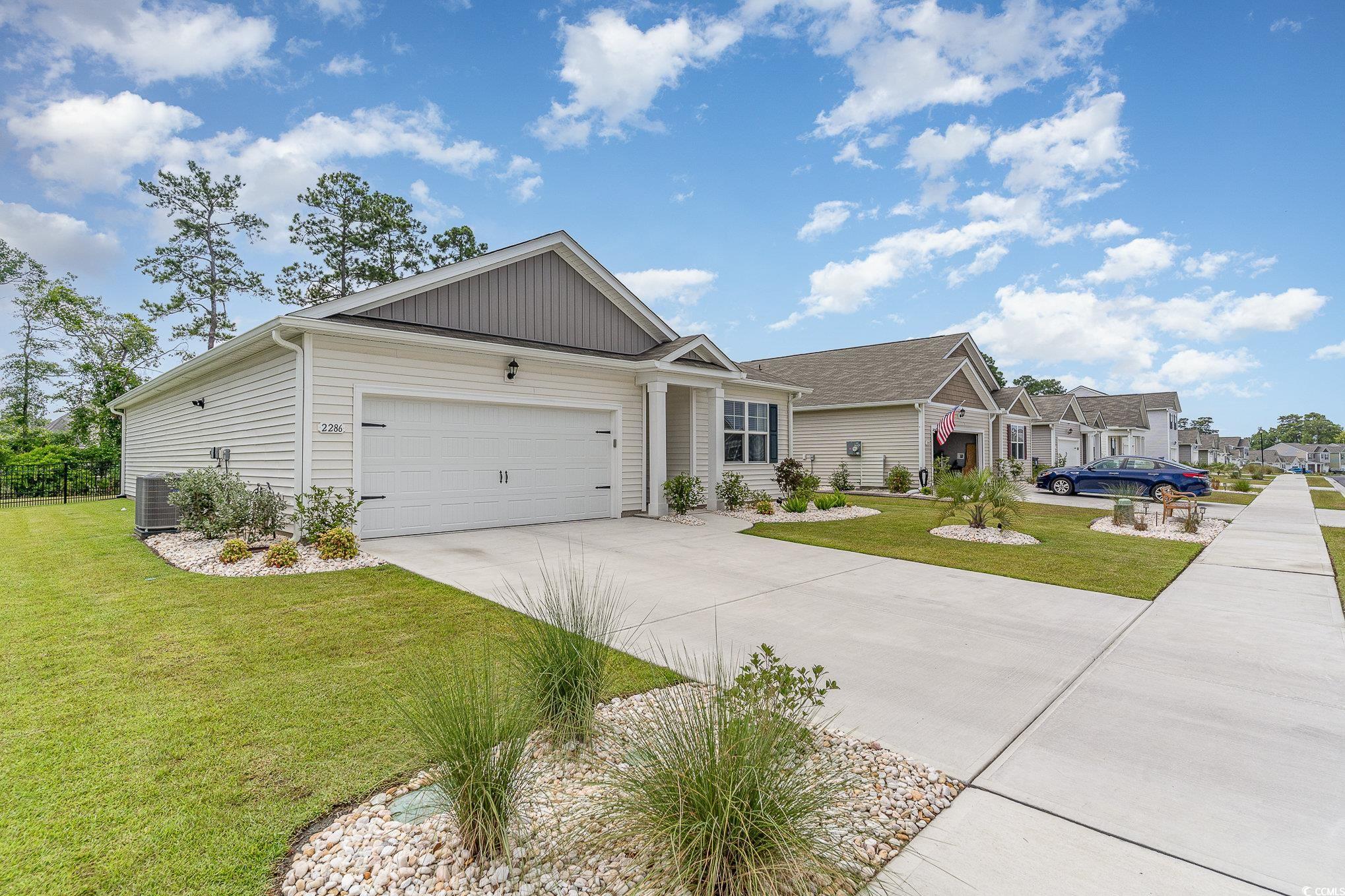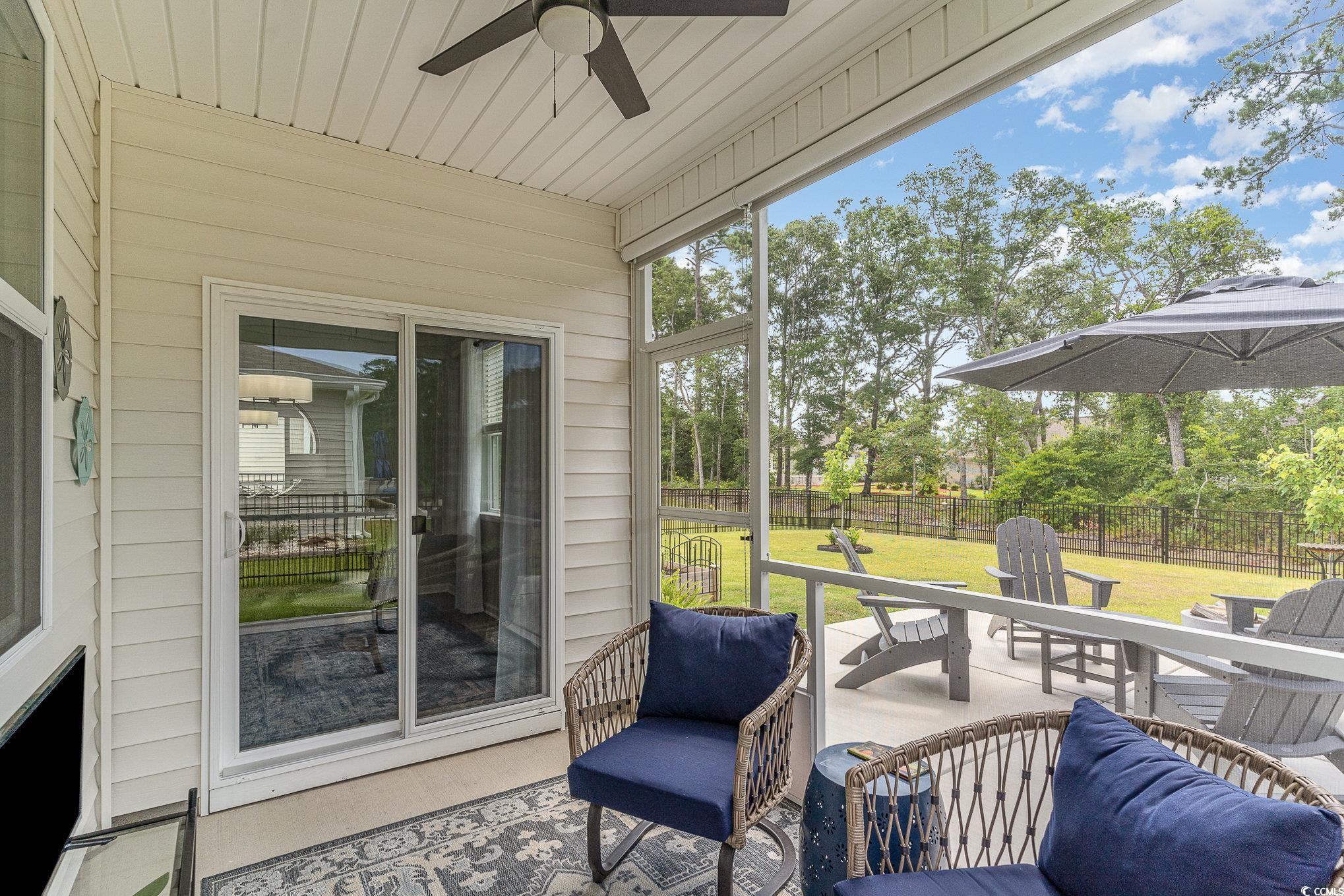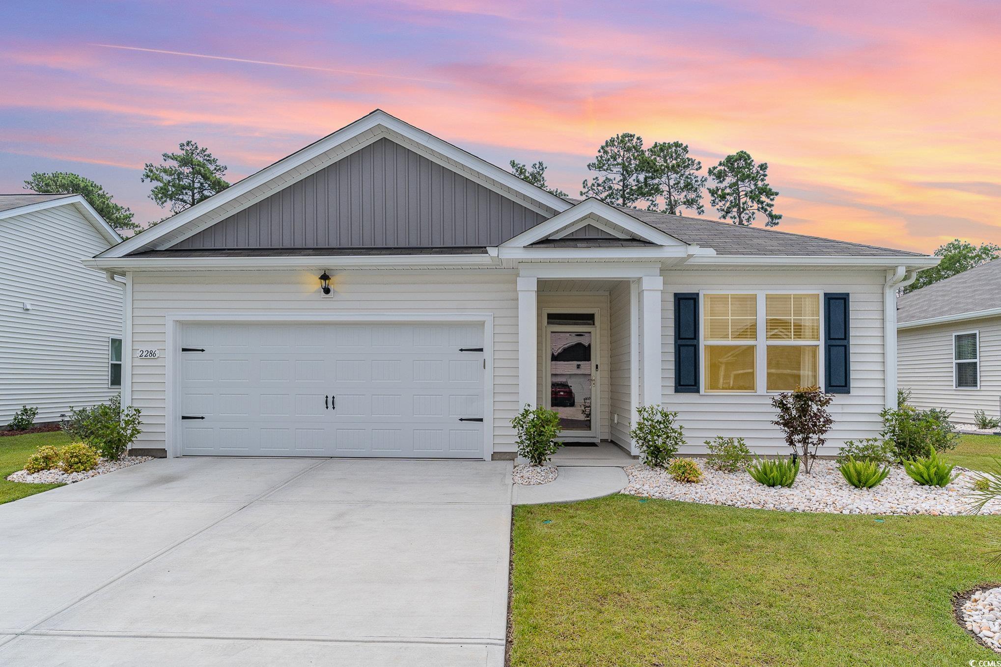 Discover contemporary living at its finest in this nearly new 3-bedroom, 2-bathroom home, nestled in the desirable Heather Glen community. Perfectly positioned a short drive from the picturesque Little River waterfront and the North Carolina-South Carolina border, this property offers an ideal blend of modern comfort and convenient coastal living. This one-year-old home features numerous upgrades visible upon arrival including updated landscaping with stone, gutters, the addition of a front storm door, ceiling fans in all bedrooms and the rear screened-in porch, a surge protector in the electric panel, updated lighting, fresh paint, roll-up and retractable blinds on the screened-in porch, the screened-in porch itself, extended rear patio, black aluminum fencing, a full irrigation system, and LVP or tile flooring throughout. The bright and airy living room flows seamlessly into the dining area and kitchen, creating a perfect space for entertaining and everyday living. Enjoy the well-appointed kitchen featuring granite countertops, stainless steel appliances, ample cabinetry, and a large island with seating. This home offers three generously sized bedrooms, including a master suite with an en-suite bathroom and walk-in closet. The bathroom features cultured marble counters and a walk-in shower. The guest bedrooms are located at the front of the home, along with the guest bathroom, laundry room, and plenty of closet space. At the rear of the home, the extended patio, screened-in porch, and wooded view from the fenced in backyard offer plenty of opportunities for grilling, entertaining, or relaxing. Heather Glen offers a variety of amenities, including a clubhouse with two floors of gathering areas, a fitness room, and a bar area. The rear of the clubhouse offers a large porch and seating area overlooking the pool. Plenty of seating surrounds the pool and provides a beautiful view of the pond. Amenities also include a community garden, dog park, playground area, and numerous activities that can be seen on the community board just inside the clubhouse. Enjoy the best of coastal living with easy access to the Little River waterfront, golf courses, shopping, dining, and entertainment. The property is also conveniently located near the border of North and South Carolina, providing easy access to attractions in both states and the many stunning beaches and attractions in Cherry Grove, North Myrtle Beach, Calabash, Sunset Beach, and more. Experience the perfect combination of modern luxury and coastal charm in this exceptional Heather Glen home. Don't miss your opportunity to make this stunning property your own. Schedule a showing today and envision your new lifestyle in this vibrant community.