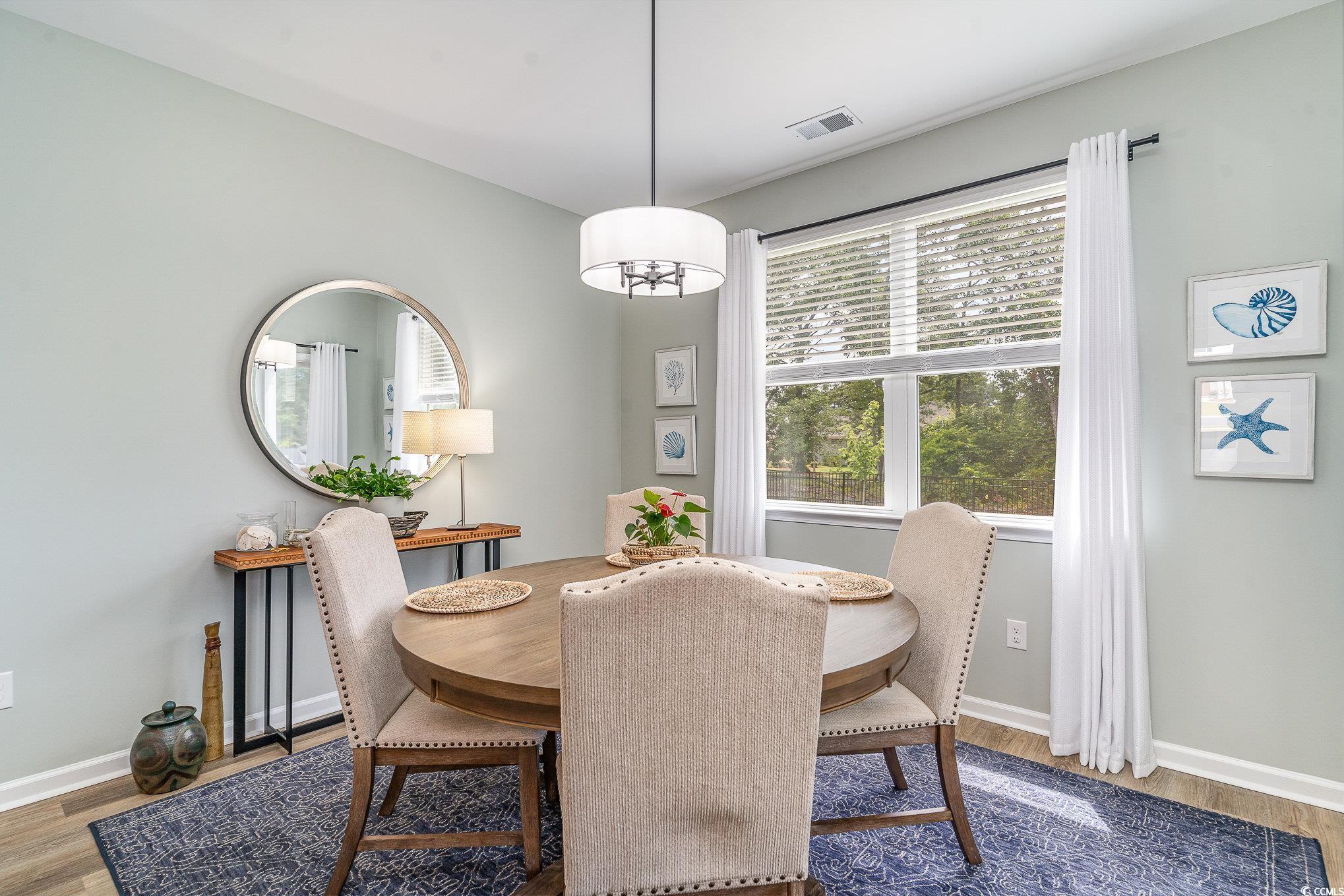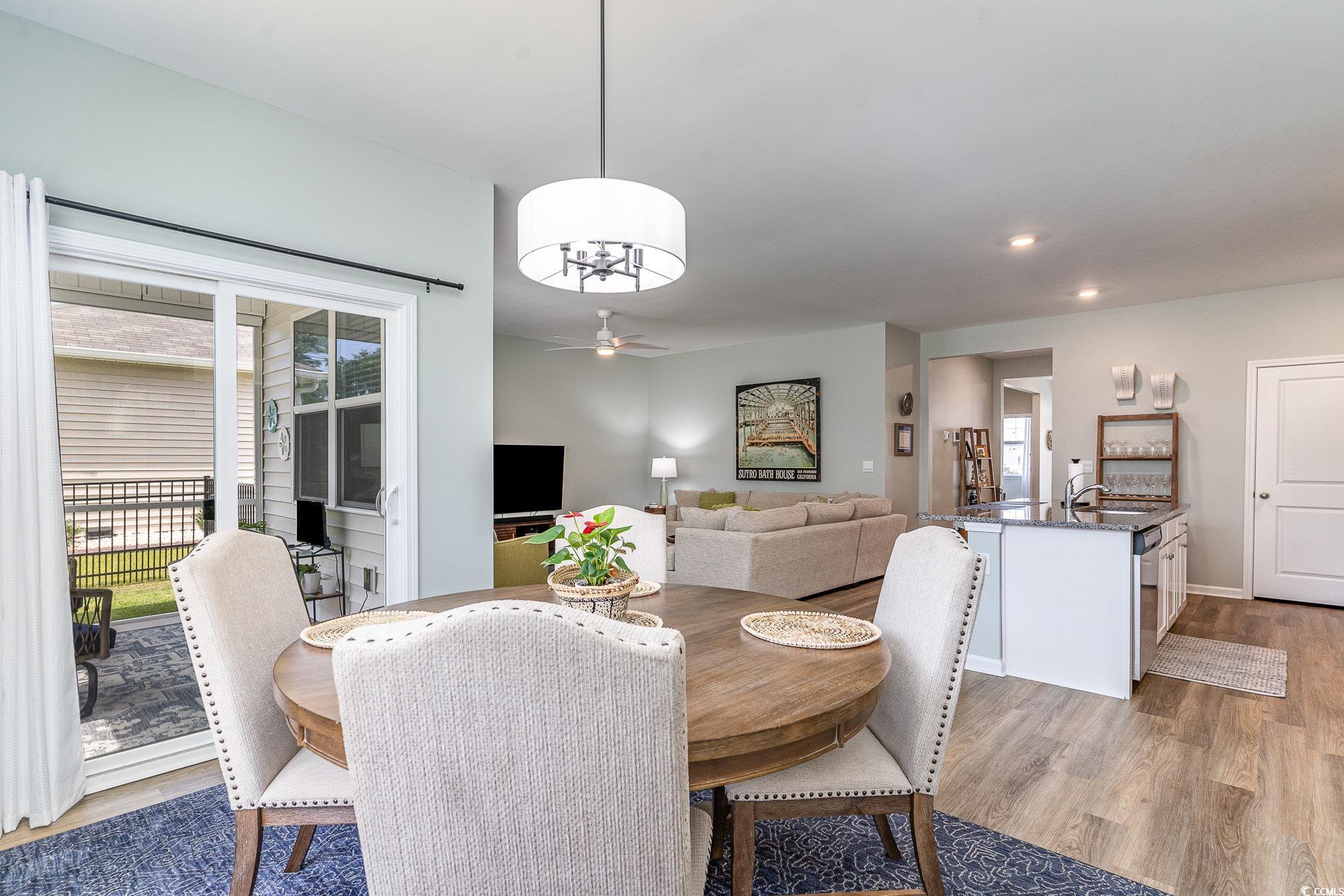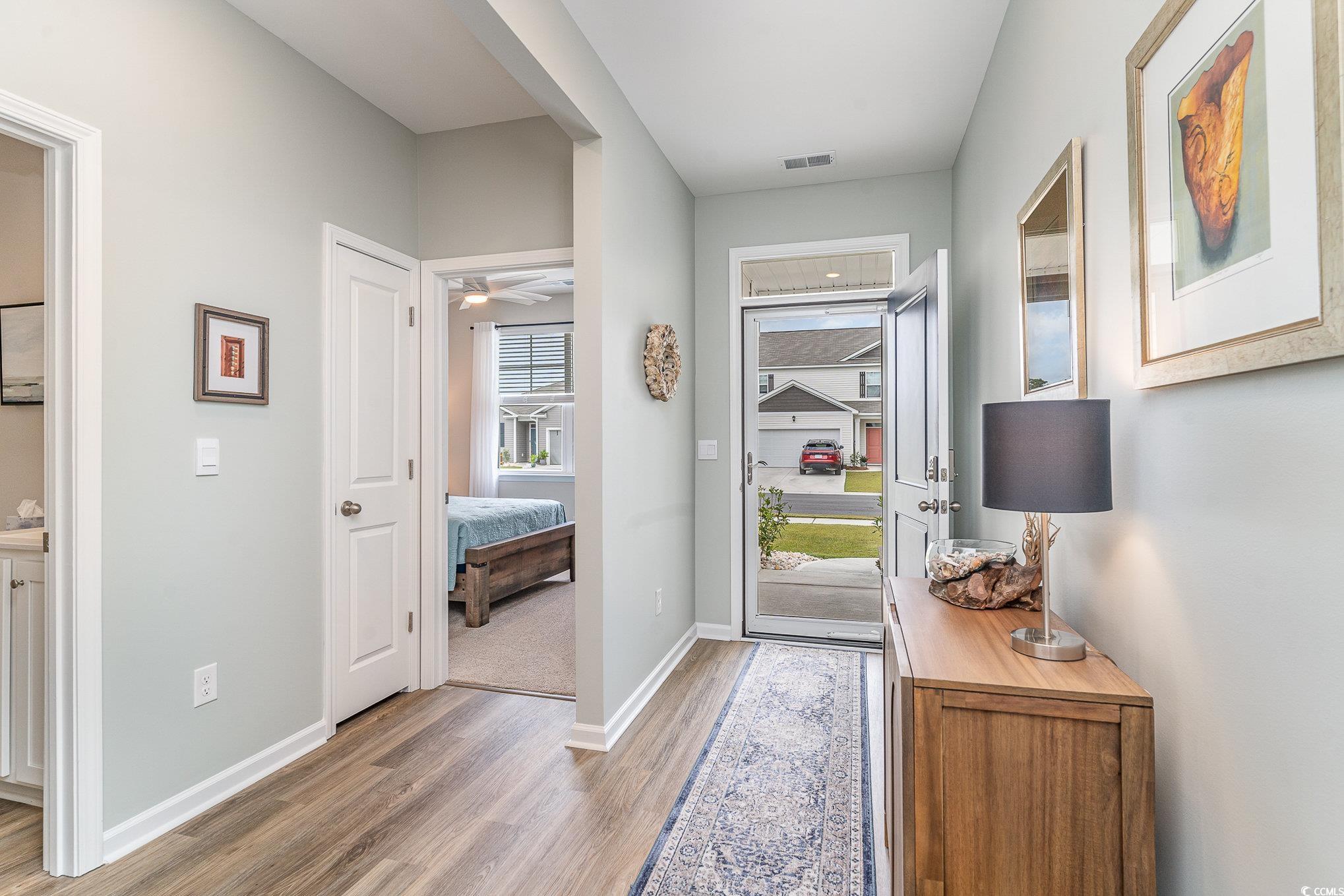 Discover contemporary living at its finest in this nearly new 3-bedroom, 2-bathroom home, nestled in the desirable Heather Glen community. Perfectly positioned a short drive from the picturesque Little River waterfront and the North Carolina-South Carolina border, this property offers an ideal blend of modern comfort and convenient coastal living. This one-year-old home features numerous upgrades visible upon arrival including updated landscaping with stone, gutters, the addition of a front storm door, ceiling fans in all bedrooms and the rear screened-in porch, a surge protector in the electric panel, updated lighting, fresh paint, roll-up and retractable blinds on the screened-in porch, the screened-in porch itself, extended rear patio, black aluminum fencing, a full irrigation system, and LVP or tile flooring throughout. The bright and airy living room flows seamlessly into the dining area and kitchen, creating a perfect space for entertaining and everyday living. Enjoy the well-appointed kitchen featuring granite countertops, stainless steel appliances, ample cabinetry, and a large island with seating. This home offers three generously sized bedrooms, including a master suite with an en-suite bathroom and walk-in closet. The bathroom features cultured marble counters and a walk-in shower. The guest bedrooms are located at the front of the home, along with the guest bathroom, laundry room, and plenty of closet space. At the rear of the home, the extended patio, screened-in porch, and wooded view from the fenced in backyard offer plenty of opportunities for grilling, entertaining, or relaxing. Heather Glen offers a variety of amenities, including a clubhouse with two floors of gathering areas, a fitness room, and a bar area. The rear of the clubhouse offers a large porch and seating area overlooking the pool. Plenty of seating surrounds the pool and provides a beautiful view of the pond. Amenities also include a community garden, dog park, playground area, and numerous activities that can be seen on the community board just inside the clubhouse. Enjoy the best of coastal living with easy access to the Little River waterfront, golf courses, shopping, dining, and entertainment. The property is also conveniently located near the border of North and South Carolina, providing easy access to attractions in both states and the many stunning beaches and attractions in Cherry Grove, North Myrtle Beach, Calabash, Sunset Beach, and more. Experience the perfect combination of modern luxury and coastal charm in this exceptional Heather Glen home. Don't miss your opportunity to make this stunning property your own. Schedule a showing today and envision your new lifestyle in this vibrant community.