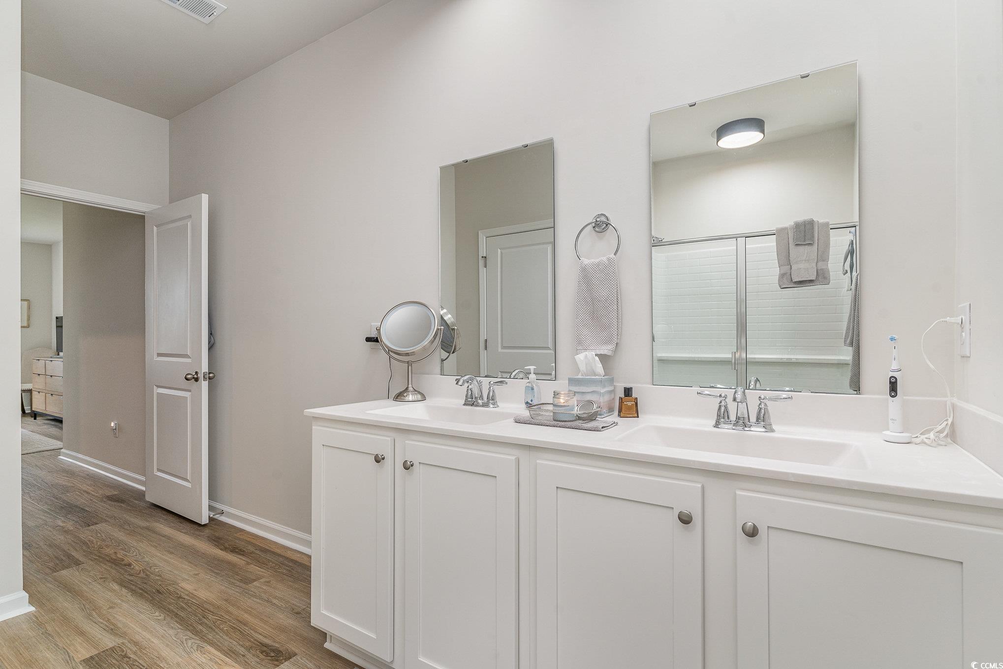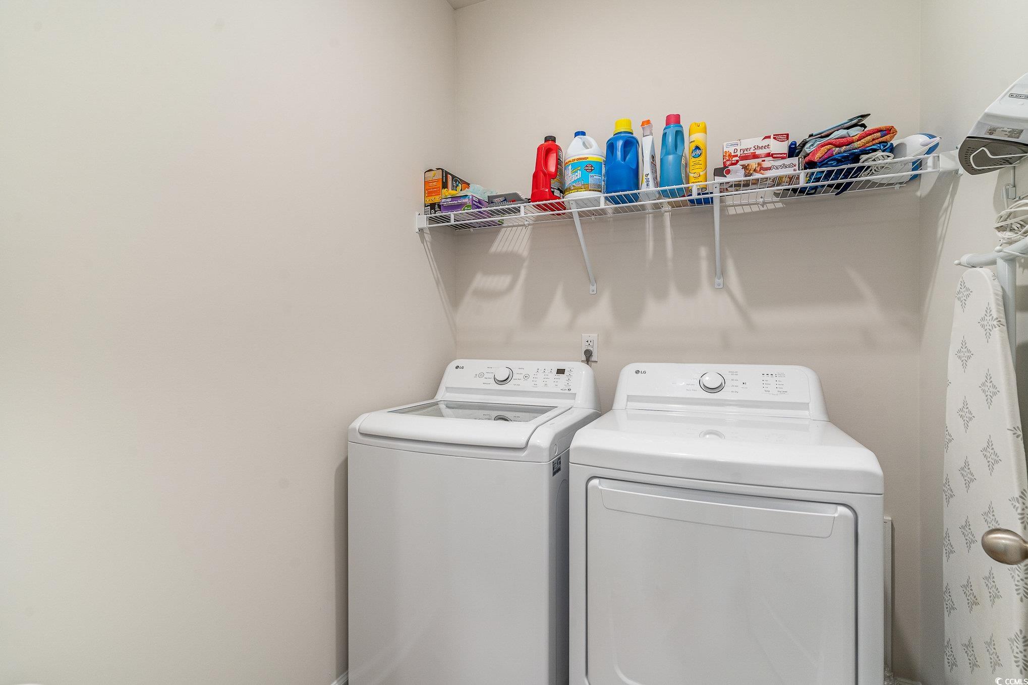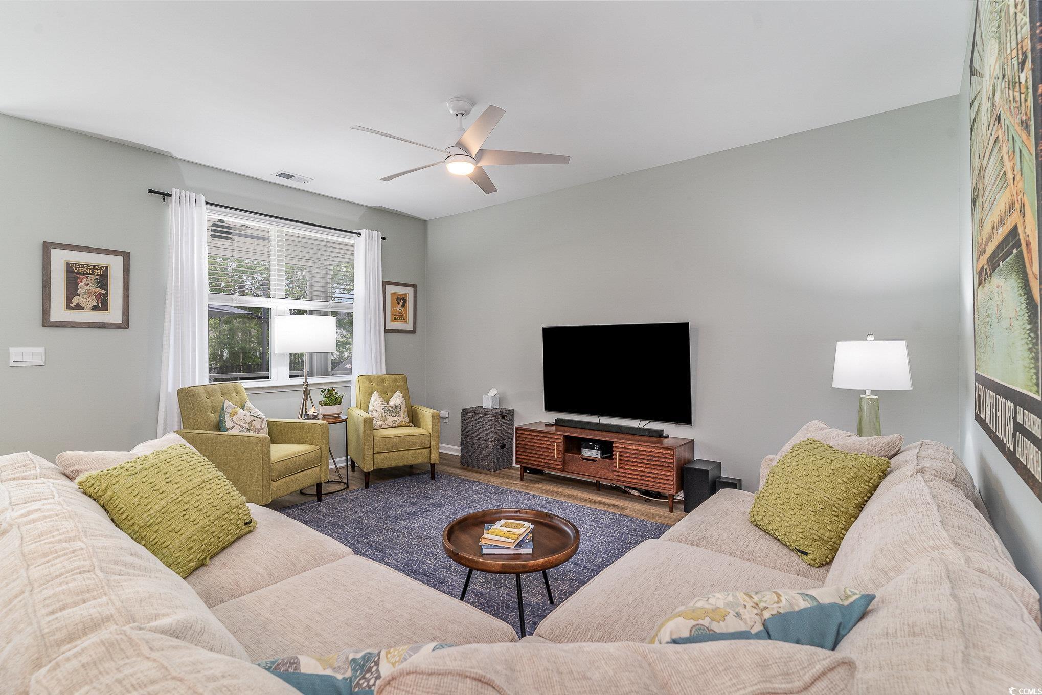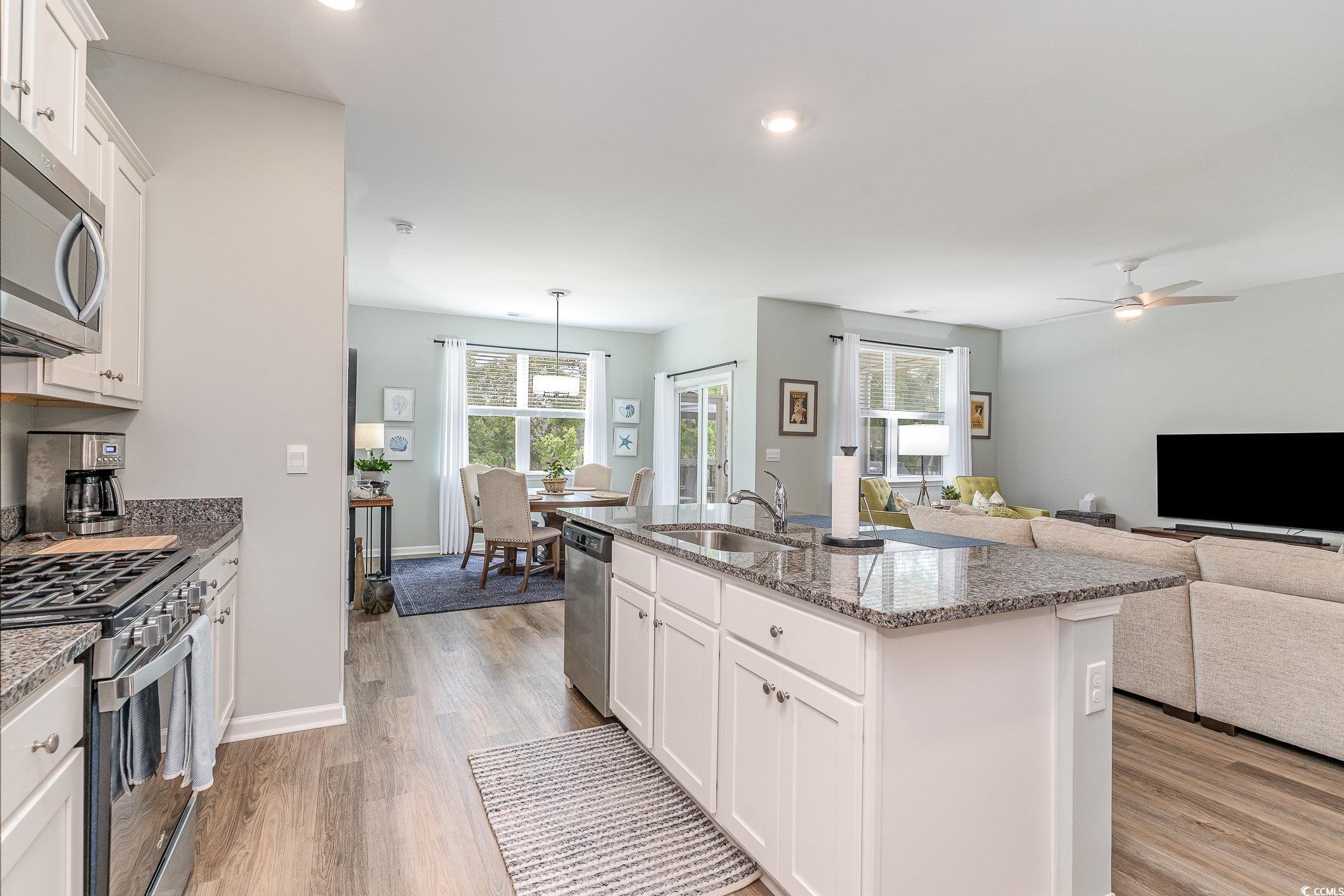 Discover contemporary living at its finest in this nearly new 3-bedroom, 2-bathroom home, nestled in the desirable Heather Glen community. Perfectly positioned a short drive from the picturesque Little River waterfront and the North Carolina-South Carolina border, this property offers an ideal blend of modern comfort and convenient coastal living. This one-year-old home features numerous upgrades visible upon arrival including updated landscaping with stone, gutters, the addition of a front storm door, ceiling fans in all bedrooms and the rear screened-in porch, a surge protector in the electric panel, updated lighting, fresh paint, roll-up and retractable blinds on the screened-in porch, the screened-in porch itself, extended rear patio, black aluminum fencing, a full irrigation system, and LVP or tile flooring throughout. The bright and airy living room flows seamlessly into the dining area and kitchen, creating a perfect space for entertaining and everyday living. Enjoy the well-appointed kitchen featuring granite countertops, stainless steel appliances, ample cabinetry, and a large island with seating. This home offers three generously sized bedrooms, including a master suite with an en-suite bathroom and walk-in closet. The bathroom features cultured marble counters and a walk-in shower. The guest bedrooms are located at the front of the home, along with the guest bathroom, laundry room, and plenty of closet space. At the rear of the home, the extended patio, screened-in porch, and wooded view from the fenced in backyard offer plenty of opportunities for grilling, entertaining, or relaxing. Heather Glen offers a variety of amenities, including a clubhouse with two floors of gathering areas, a fitness room, and a bar area. The rear of the clubhouse offers a large porch and seating area overlooking the pool. Plenty of seating surrounds the pool and provides a beautiful view of the pond. Amenities also include a community garden, dog park, playground area, and numerous activities that can be seen on the community board just inside the clubhouse. Enjoy the best of coastal living with easy access to the Little River waterfront, golf courses, shopping, dining, and entertainment. The property is also conveniently located near the border of North and South Carolina, providing easy access to attractions in both states and the many stunning beaches and attractions in Cherry Grove, North Myrtle Beach, Calabash, Sunset Beach, and more. Experience the perfect combination of modern luxury and coastal charm in this exceptional Heather Glen home. Don't miss your opportunity to make this stunning property your own. Schedule a showing today and envision your new lifestyle in this vibrant community.