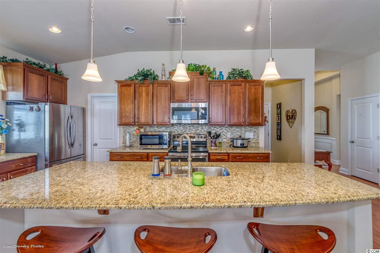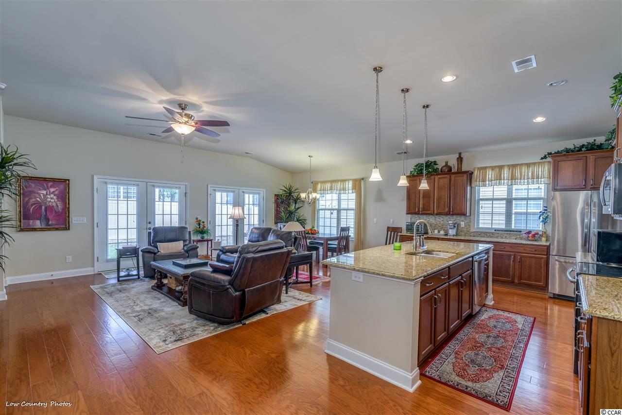 Just minutes to Litchfield Beach. Clean, comfortable, and thoughtful floor plan. Built in 2015 and shows wonderfully. Hardwood floors throughout out living areas and tile in bathrooms. Open living room with cathedral ceiling. Large kitchen with immense island, granite counters, stainless appliances and walk in pantry. Master suite includes dual sinks and large walk in closet. Outdoor living is easy on the large lanai, which can easily be screened. Child and pet friendly yard with privacy fence. Low maintenance with stone and vinyl exterior. Just minutes to the beach, golf courses, marina, state park, restaurants, grocery stores, fitness centers, bakeries, library, etc. Only 20 minutes south of Myrtle Beach and just one hour north of historic Charleston.
