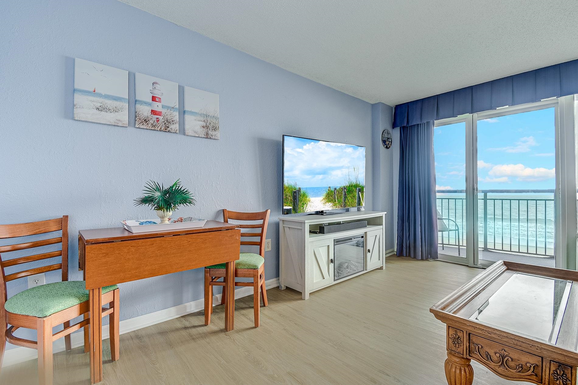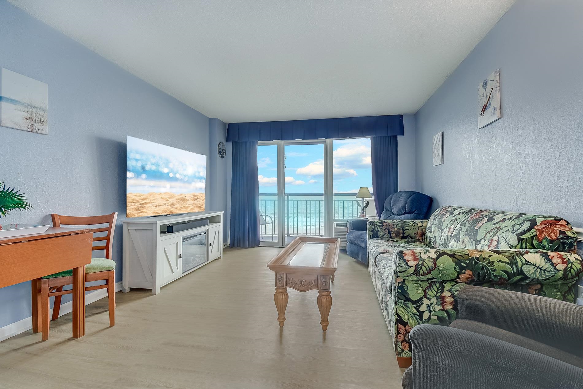Looking for an Oceanfront condo with beautiful views of the sand and waves? Located in the heart of Myrtle Beach, this one is for you! The Boardwalk Oceanfront Resort includes great amenities...Lazy river, heated indoor pool, 3 outdoor pools, a kiddie pool, and indoor/outdoor hot tubs. The resort is conveniently located near stores and restaurants for your everyday and vacation needs. Featuring a large bedroom area with 2 new queen mattresses and a full bathroom with a new walk in shower, this unit was recently updated with new LVP throughout. Also featuring a Murphy bed and pull out sofa bed to provide more sleeping spaces for larger families.. Great rental potential for investors or keep it for years of family fun.