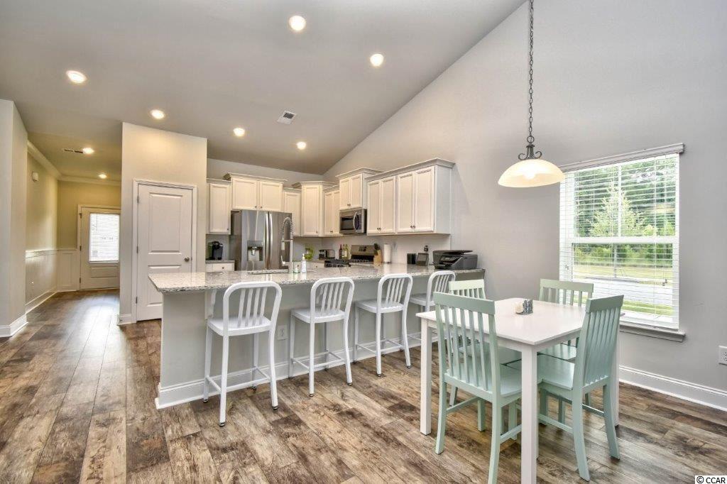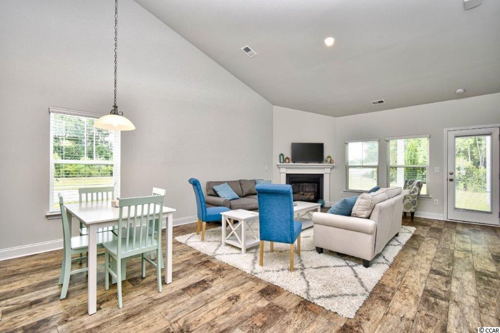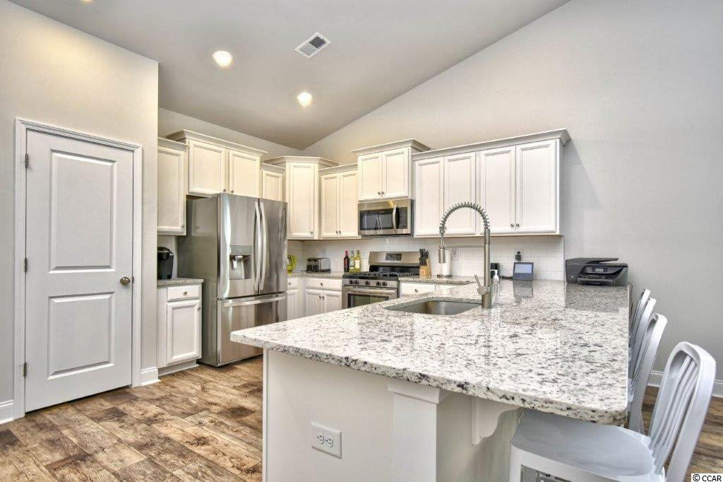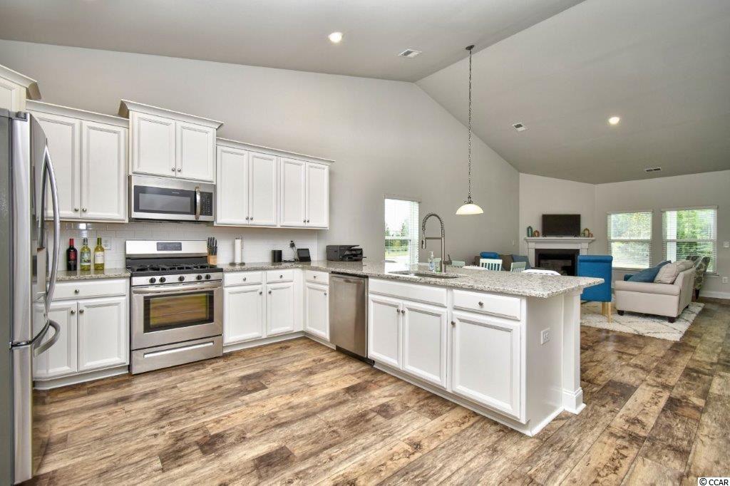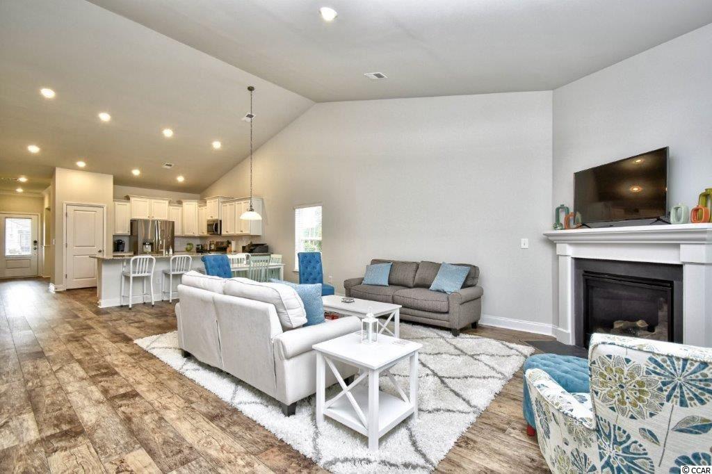 Welcome Home! Located on a desirable corner lot in the Market Common community of Belle Harbor, this lovely four bed, three bath home is like new and is move in ready. Just a short Golf Cart Ride to the beach, shopping, dining, and entertainment! Once you enter the home you are met by a bright and welcoming space with formal dining room kitchen and living area which offers a cozy gas fireplace perfect for entertaining family and friends. The kitchen features all stainless-steel appliances, granite countertops with breakfast bar and seating for four, brushed nickel pulls 42-inch cabinets and a five-burner gas stove. The family room features a gas fireplace and high cathedral ceilings. The master bathroom is complimented by double sinks, a walk-in shower, a private water closet, and a large linen closet with the Master bedroom offering a tray ceiling and large walk-in closet. Sit and relax on your front porch and enjoy everything this community has to offer It features a gorgeous pool, grilling area and more.