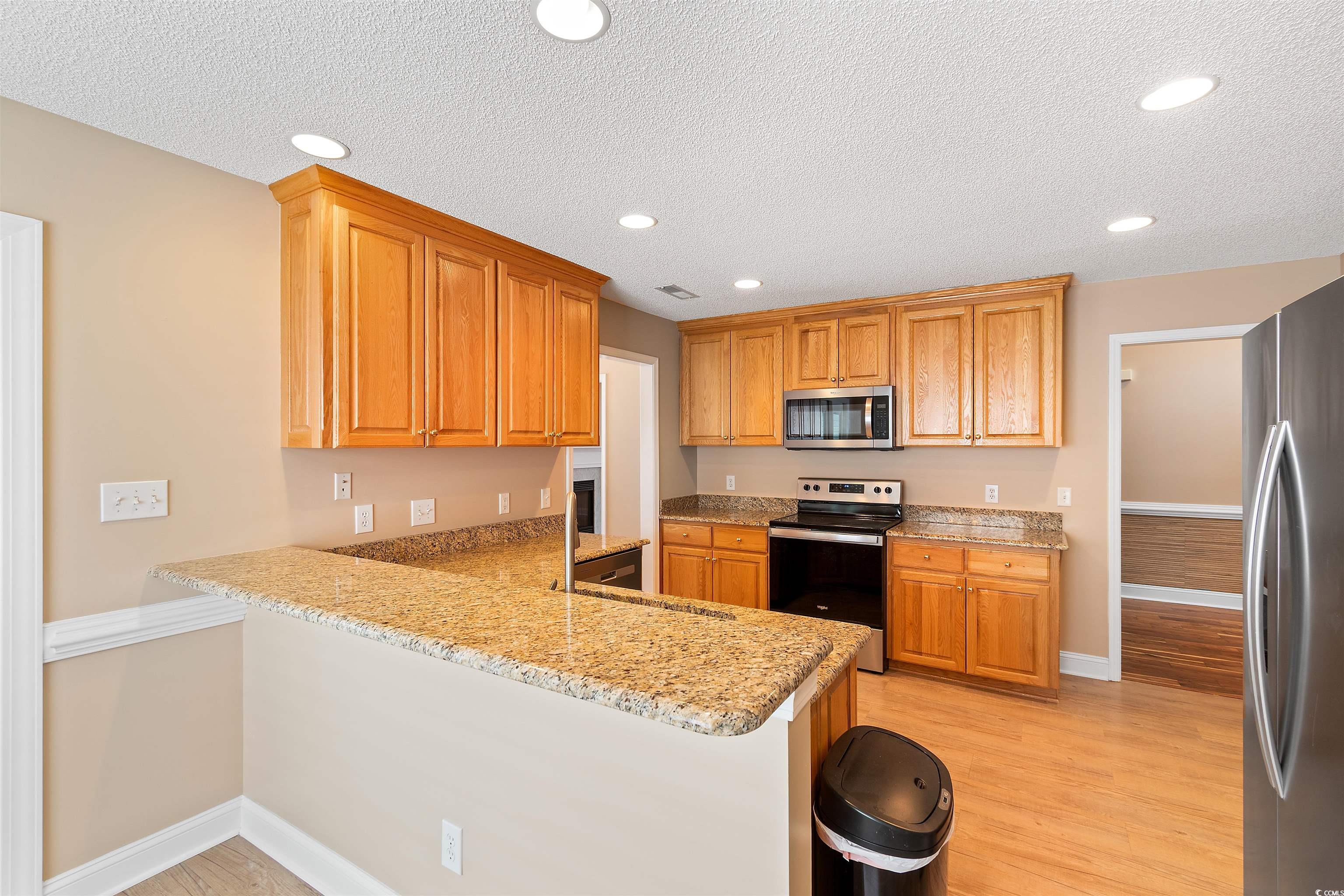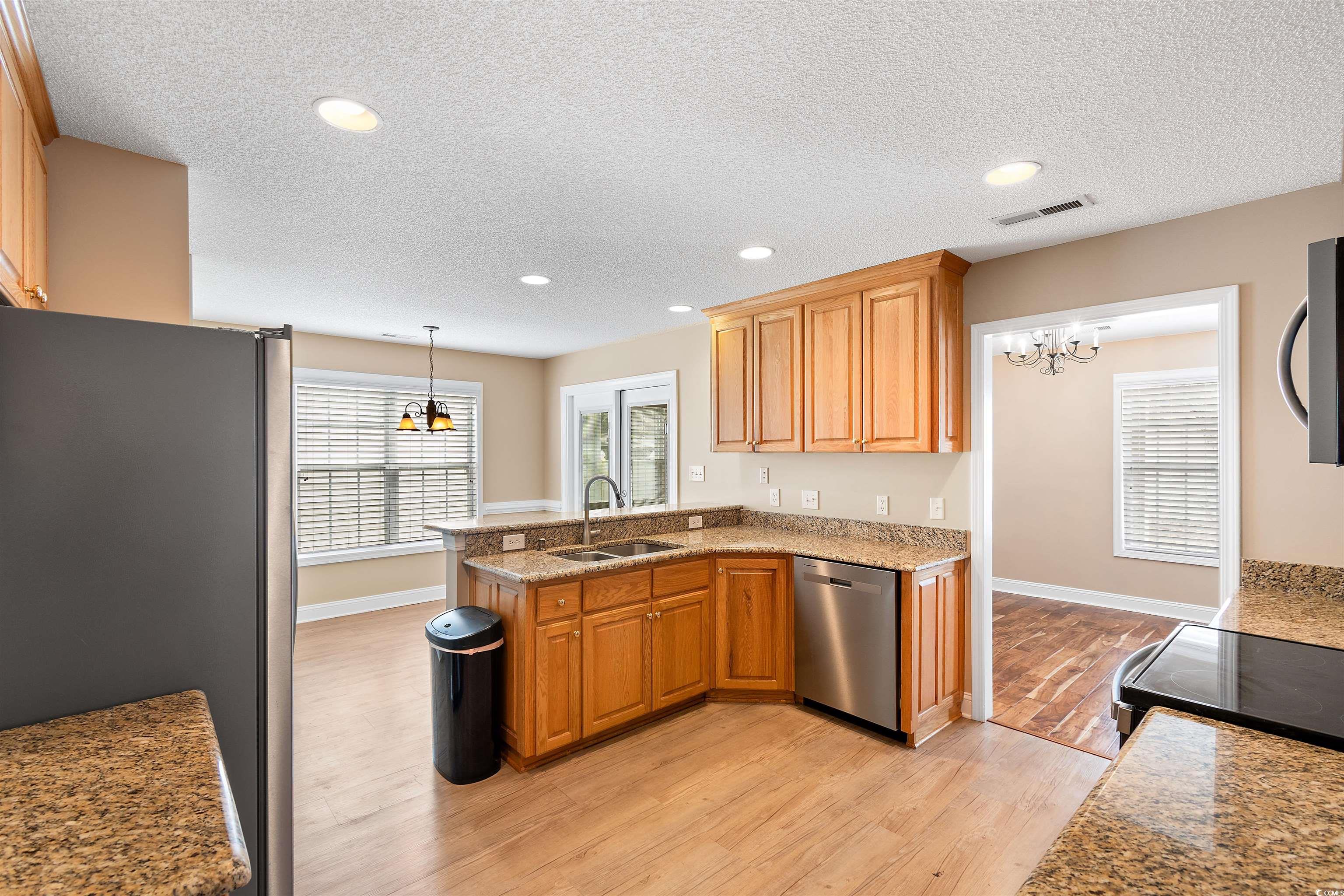 Welcome to this beautifully updated 3-bedroom, 2-bathroom home with a finished room over the garage, located in the sought-after Jessica Lakes community of Conway, South Carolina. Offering 2,062 sq. ft. of thoughtfully designed living space, this home combines modern updates with a warm and inviting atmosphere. Step inside to find freshly painted interiors and newer hardwood flooring in the main living area. The somewhat open-concept layout provides an easy flow between the living room, dining area, and kitchen while still maintaining defined spaces for comfort and functionality. The primary suite is a true retreat, featuring a newly updated master bathroom, complete with modern finishes designed for relaxation. Two additional bedrooms provide ample space for family or guests, while the finished room over the garage offers endless possibilities as a home office, media room, or guest suite. Outdoor living is just as enjoyable with a screened porch and a spacious patio, perfect for unwinding or entertaining. The two-car garage ensures plenty of storage and parking space. Located just minutes from downtown Conway, shopping, dining, and a short drive to Myrtle Beach, this home is a fantastic opportunity. Schedule your showing today and make this home yours!