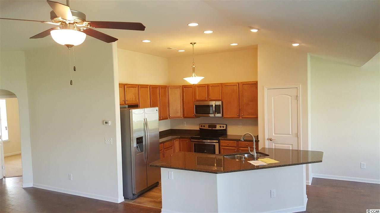 This beautiful Cayman is move-in ready. The home is a true split floor plan that is open and airy. The home has a wonderful covered front porch accented with board and batten vinyl siding. The home also has stone masonry with shake vinyl shingles on the garage. The home features Weatherby Birch 5 inch plank hardwoods in the Foyer, Great Room, Dining Nook, and hallway. It also has tile in the Kitchen, Laundry, and both baths and carpet in all bedrooms. Both baths have raised vanities and the Master has a large cultured marble shower. The kitchen features 36"" birch tuscany cabinets with crown molding. The granite counters are tropical brown. The kitchen has stainless steel appliances. The home also includes faux wood blinds.