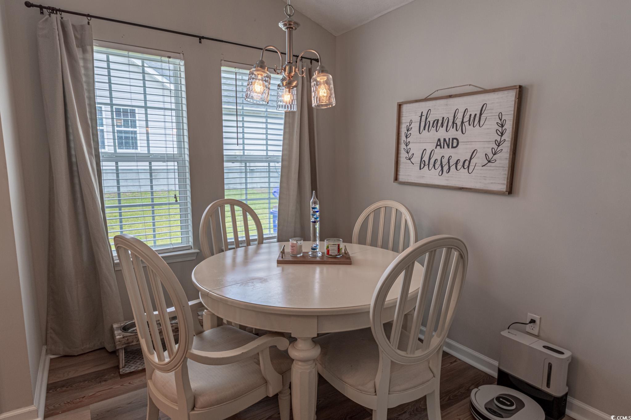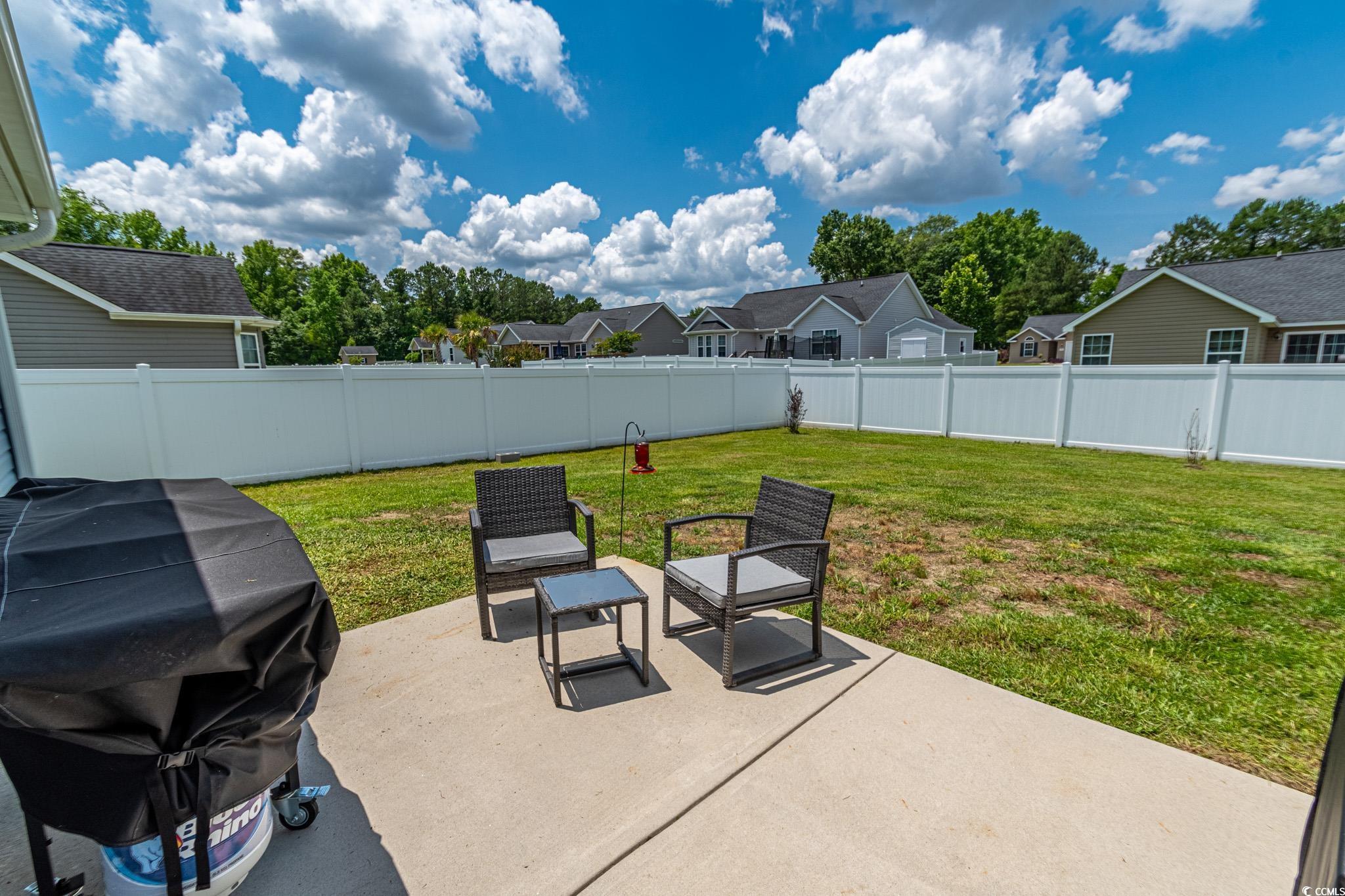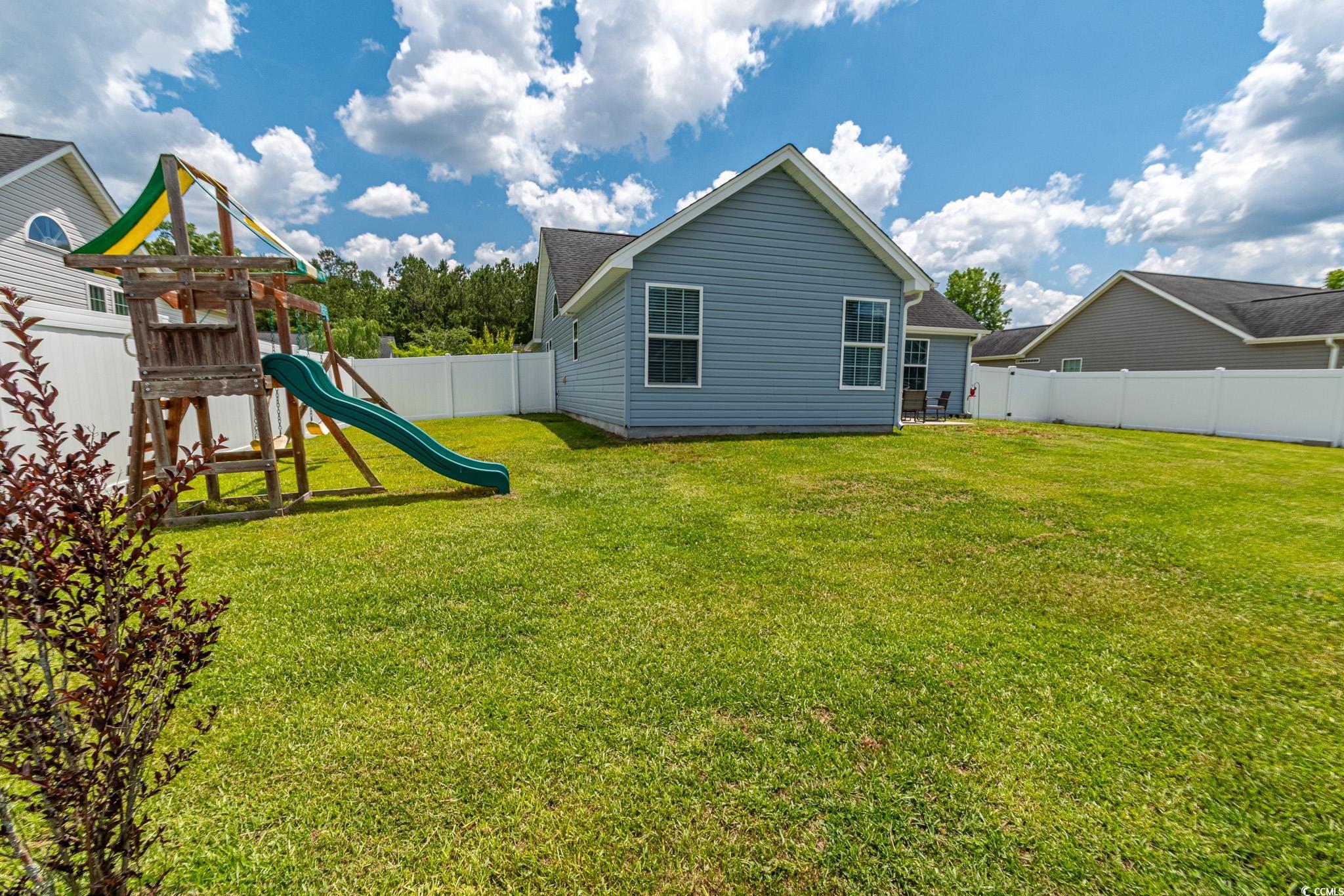 Move right in and enjoy the extras already in place: a fully fenced backyard, stainless steel appliances (including the refrigerator), ceiling fans in every room, window blinds, and more! This attractive three-bedroom, two-bathroom home with a two-car garage is located in Jordan Estates. The split bedroom floor plan features durable LVP flooring throughout the main living areas, with cozy carpet in the bedrooms. Enter through the foyer into a spacious living room with vaulted ceilings and a ceiling fan. The open kitchen and dining area boasts stainless steel appliances, a pantry, a breakfast nook, and a convenient eat-up bar. The primary suite offers a tray ceiling with a fan, a walk-in closet, and a private bath with a vanity, linen closet, and shower. Bedroom two is at the front of the home, featuring a vaulted ceiling and fan, while bedroom three is at the back, also with a ceiling fan. These rooms share a full bathroom with a vanity and shower-tub combination. Step outside to a spacious, fully fenced backyard with a patio for outdoor enjoyment. Jordan Estates is ideally located close to historic downtown Conway, shopping, dining, entertainment, medical facilities, the Waccamaw River, and just a short drive to the beach. Plus, the seller will provide a one-year home warranty at closing! Square footage is approximate and not guaranteed. Buyer responsible for verification.
