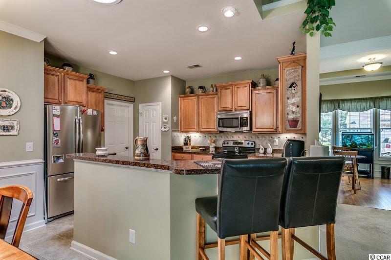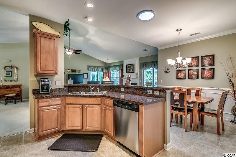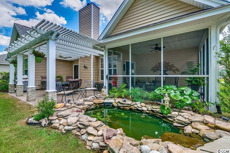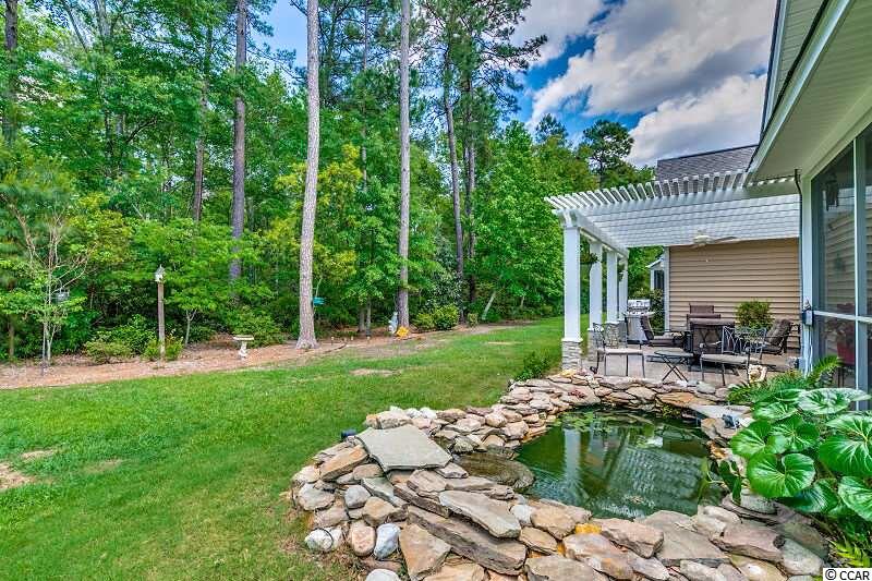 Split bedroom plan with very large Master and en suite bathroom, and two sizable additional bedrooms with roomy hall bath. The foyer and formal dining room have hardwood oak floors and a trey ceiling. The large great room has a lovely gas fireplace, a cathedral ceiling and is open to all living areas. There is a casual dining area next to the spacious kitchen along with a breakfast bar for two. There is an abundance of kitchen cabinets, with draws that pull out for storage. The laundry room adjoins both the kitchen and garage. The kitchen has upgraded, staggered maple cabinets, stainless steel appliances and a solar tube. Two sets of sliding glass doors in the living area open out to a screened porch and large patio with custom built pergola. Both have custom porcelain tile floors and are adjacent to a small but lovely koi pond with waterfall. All appliances except washer & dryer convey. This 108 home community is convenient to everything and has a clubhouse, swimming pool and hot tub. There are various social activities organized by the residents. The home and yard are not too big or too small, making them both easy to maintain. The house backs to a protected wooded area providing ample privacy to the back yard with great neighbors on either side. Imagine sitting outback listening to the sounds of nature under your pergola that has a fan. Close to Conway Hospital and physicians, many golf courses, ample shopping and only 20 minutes to the beach. Square footage is approximate and not guaranteed. Buyer is responsible for verification.