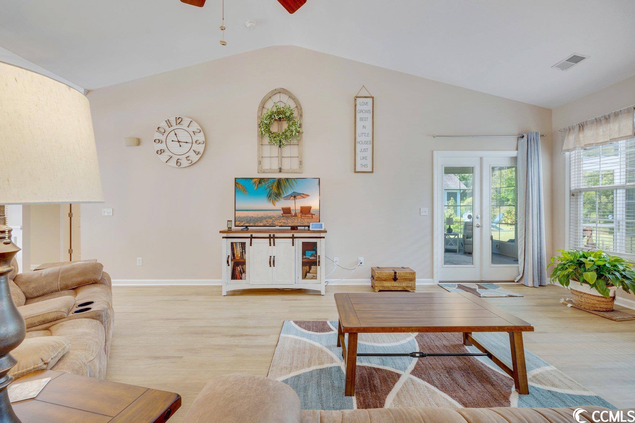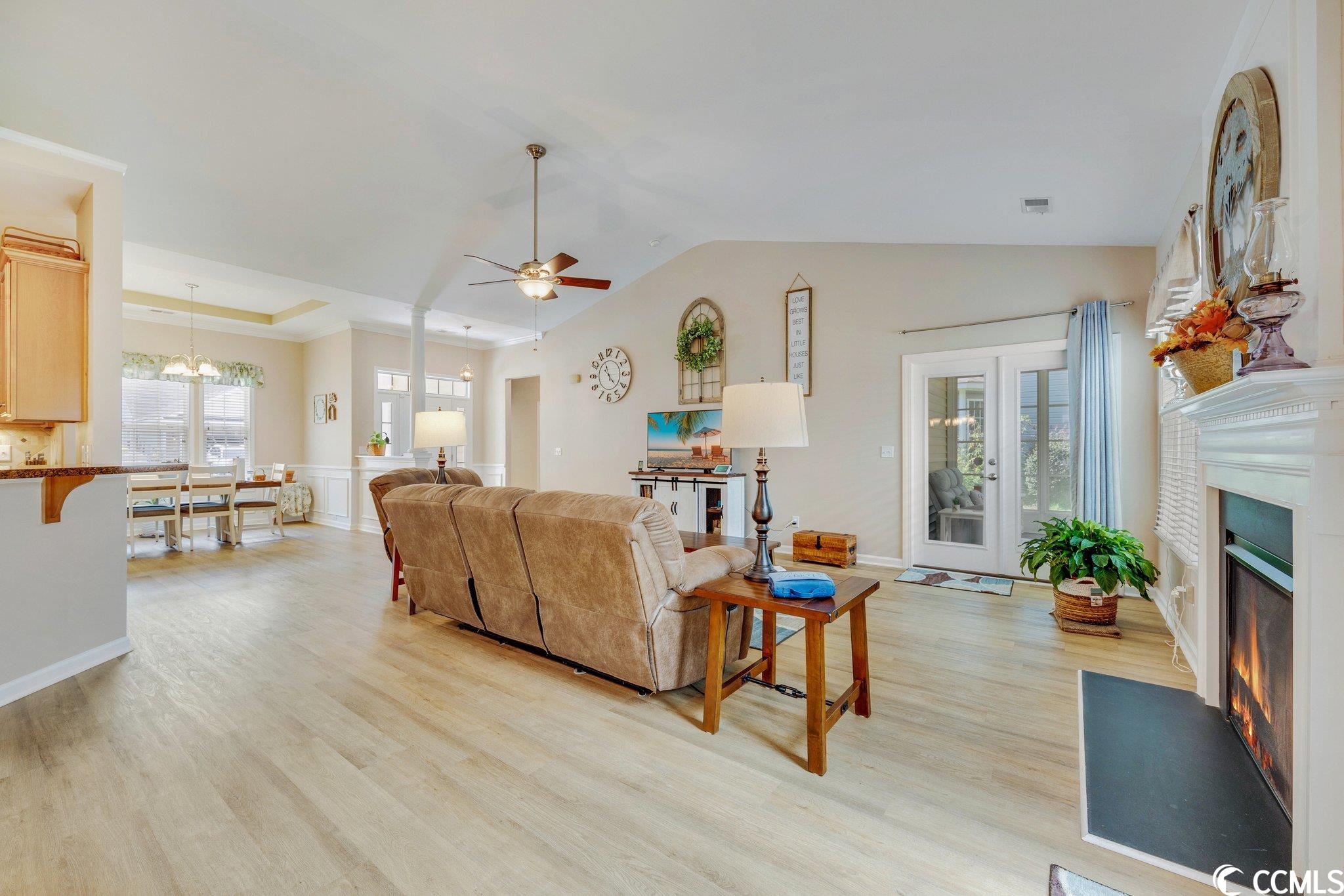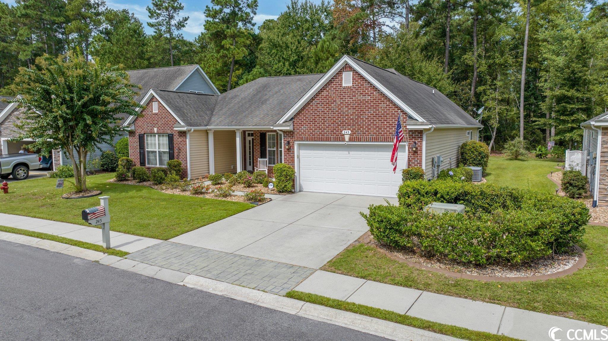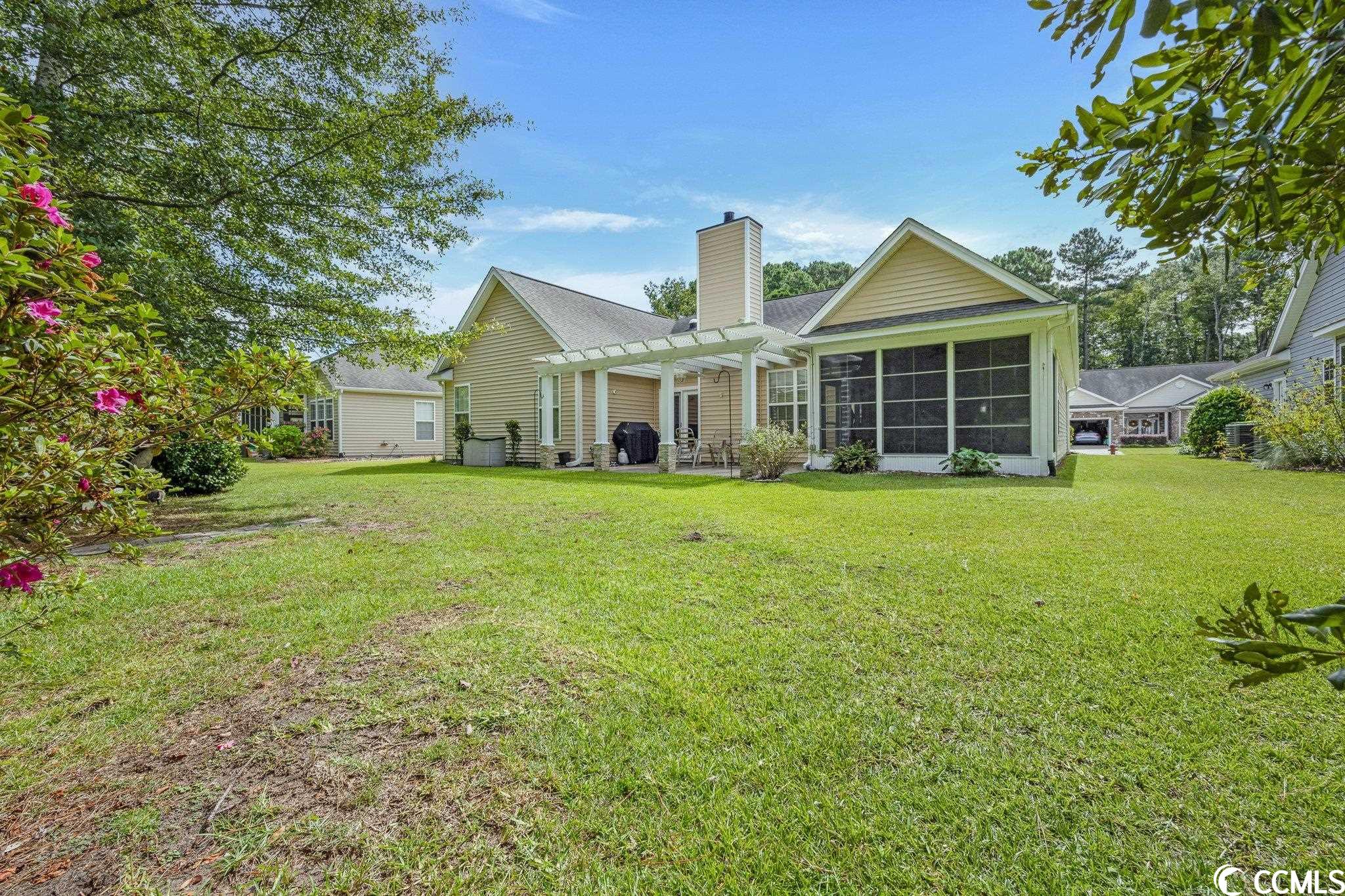 Open the door to this beautiful Stockton B Model in a 55+ community close to hospitals, shopping, dining and a short drive to the beach. This 3 BR, 2 Bath home has new LVP flooring and new appliances along with a wonderful front porch for sipping coffee and relaxing. The great room features a propane fireplace and cathedral ceilings. Formal DR, open floor plan and a split bedroom plan. New French doors lead to your sunroom or your patio with a beautiful pergola. This home backs up to conservation land that can't be built upon and is private and serene. The Myrtle Trace Grande community has a clubhouse, pool and hot tub with lots of activities and a fun place to gather. So grab your belongings and make this home yours!