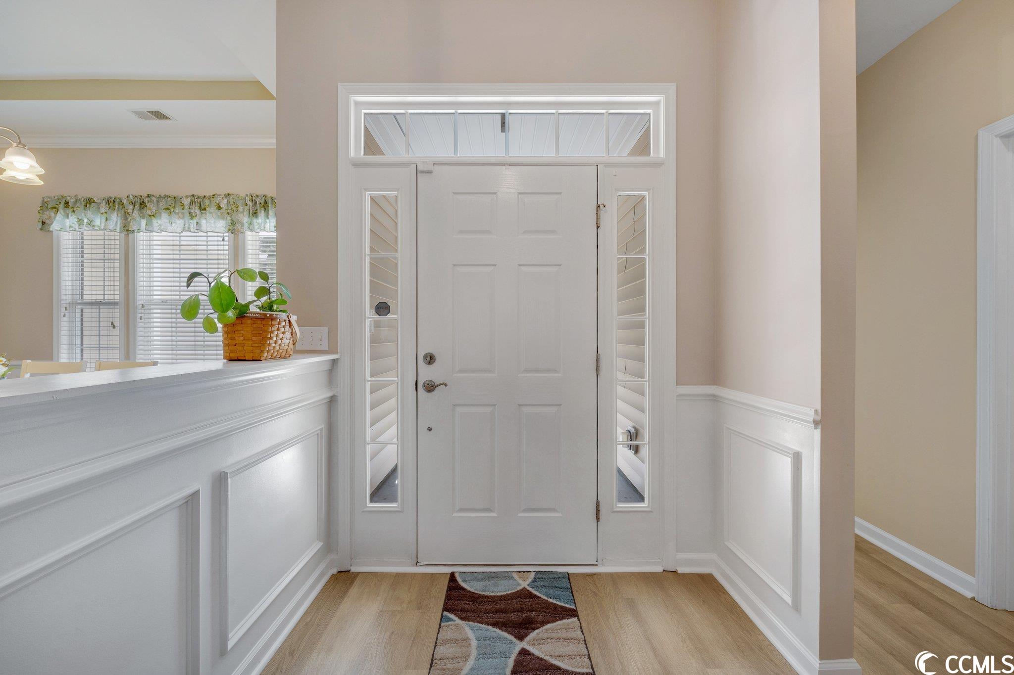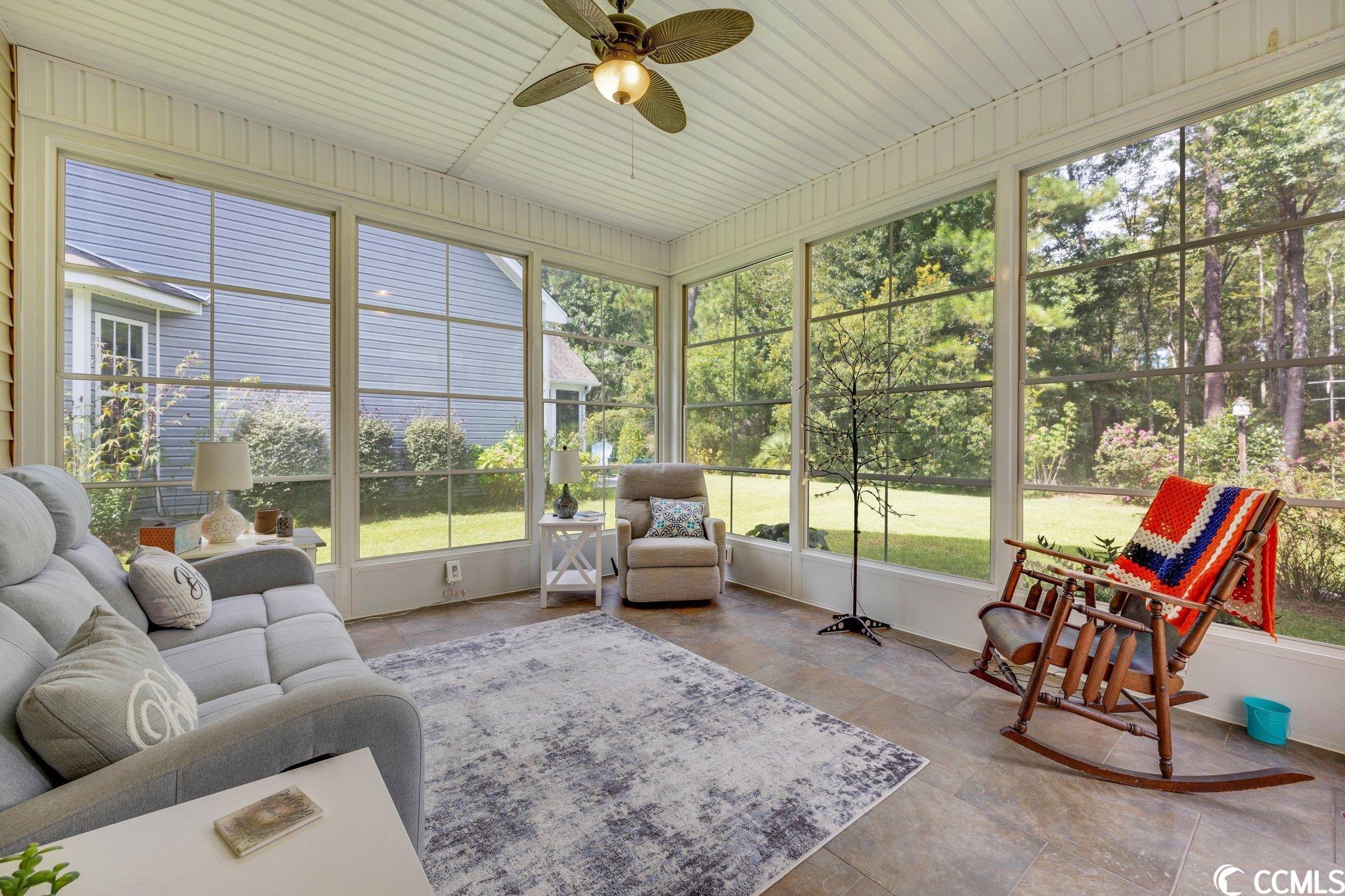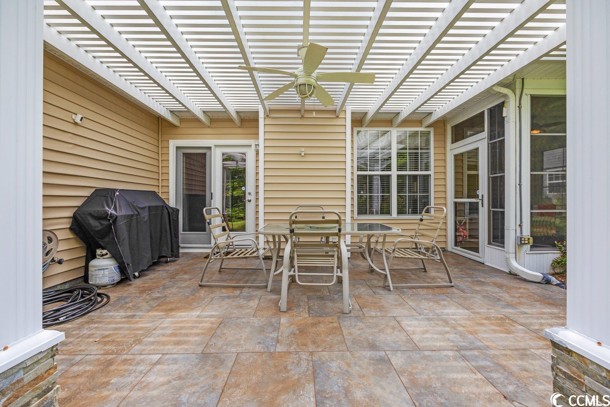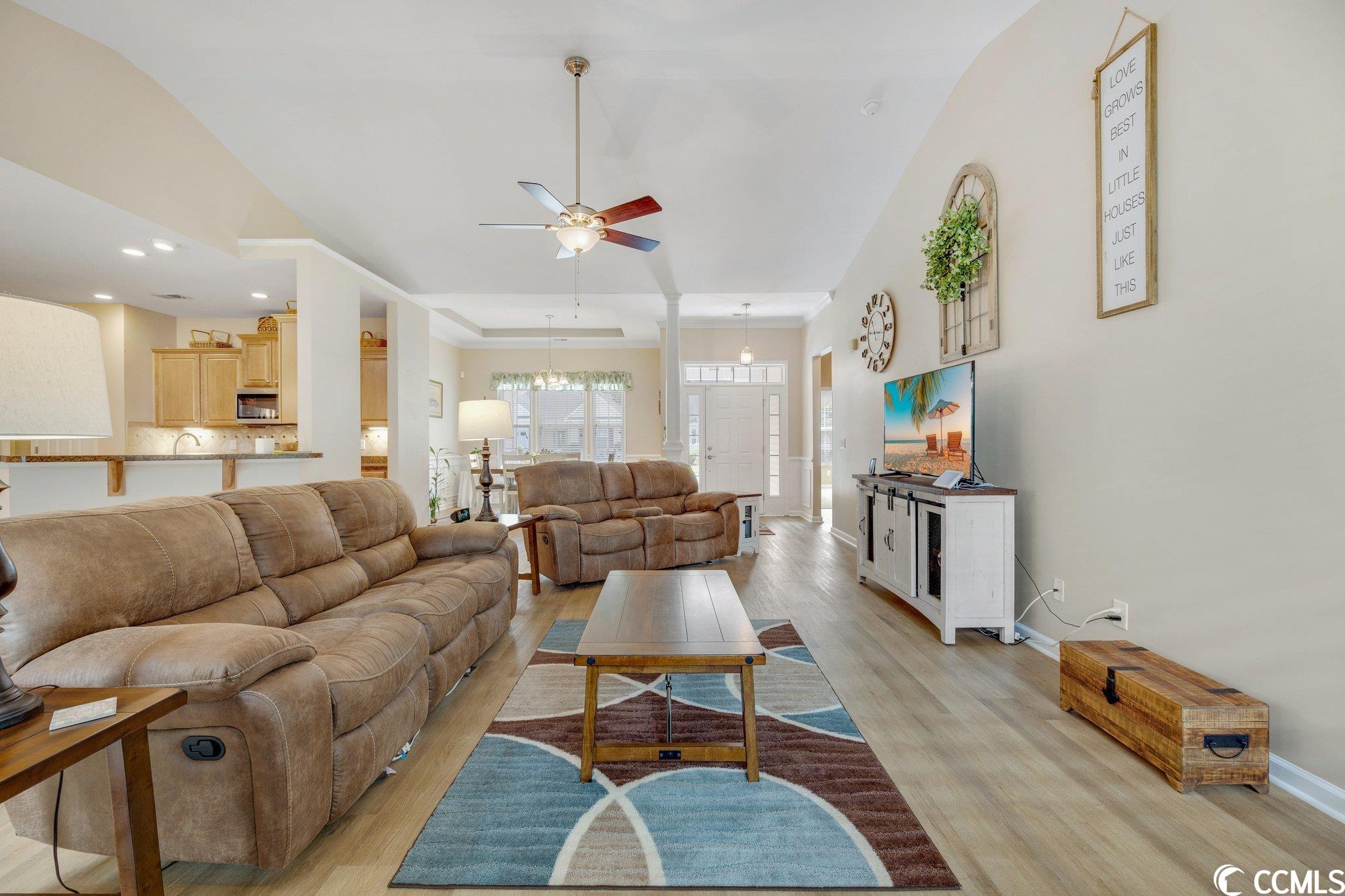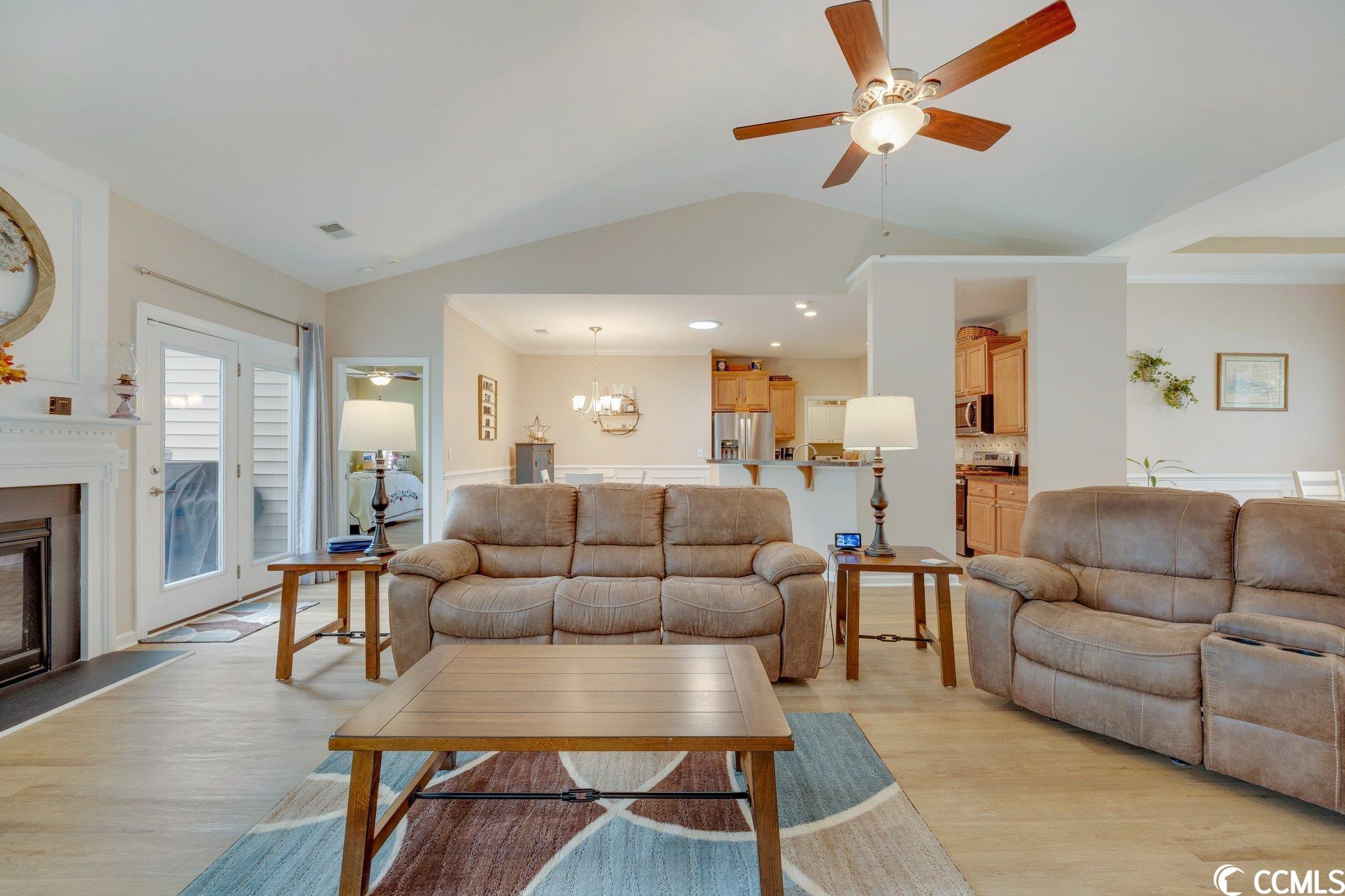 Open the door to this beautiful Stockton B Model in a 55+ community close to hospitals, shopping, dining and a short drive to the beach. This 3 BR, 2 Bath home has new LVP flooring and new appliances along with a wonderful front porch for sipping coffee and relaxing. The great room features a propane fireplace and cathedral ceilings. Formal DR, open floor plan and a split bedroom plan. New French doors lead to your sunroom or your patio with a beautiful pergola. This home backs up to conservation land that can't be built upon and is private and serene. The Myrtle Trace Grande community has a clubhouse, pool and hot tub with lots of activities and a fun place to gather. So grab your belongings and make this home yours!