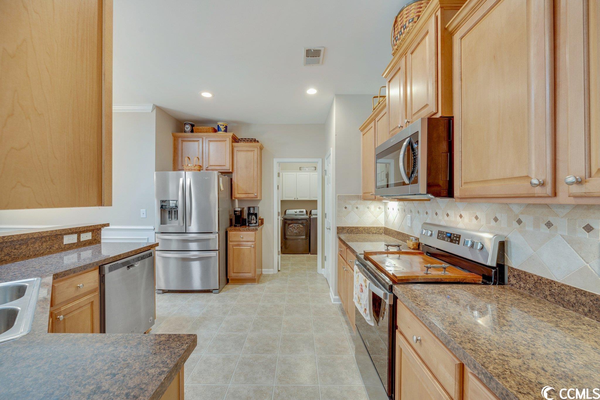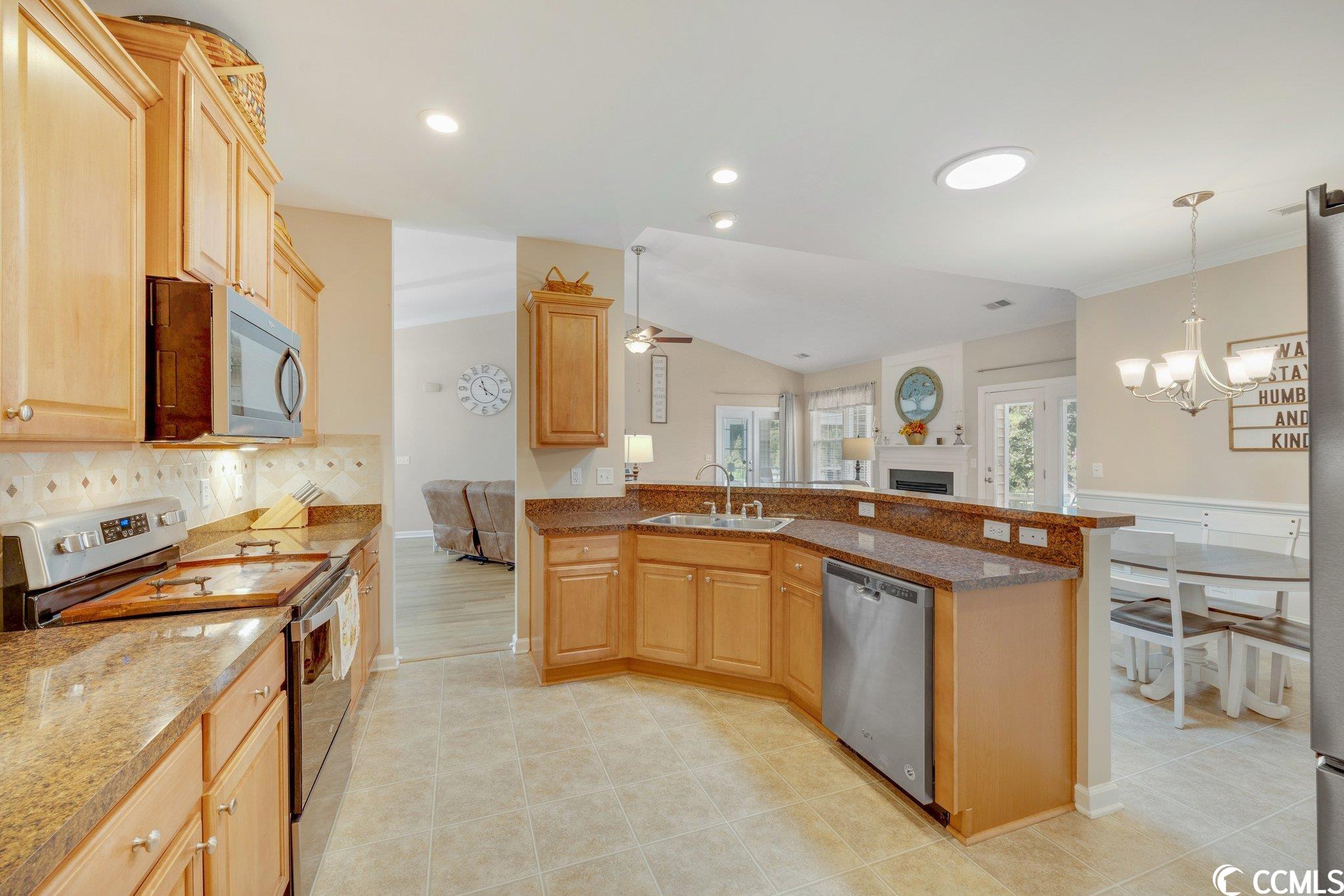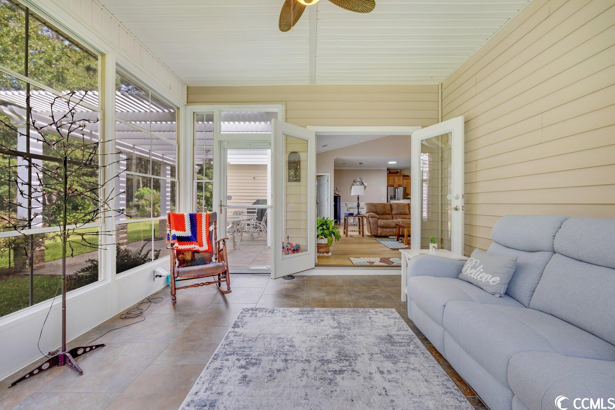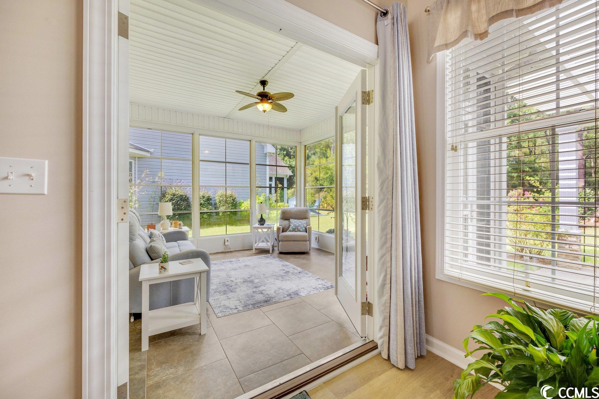 Open the door to this beautiful Stockton B Model in a 55+ community close to hospitals, shopping, dining and a short drive to the beach. This 3 BR, 2 Bath home has new LVP flooring and new appliances along with a wonderful front porch for sipping coffee and relaxing. The great room features a propane fireplace and cathedral ceilings. Formal DR, open floor plan and a split bedroom plan. New French doors lead to your sunroom or your patio with a beautiful pergola. This home backs up to conservation land that can't be built upon and is private and serene. The Myrtle Trace Grande community has a clubhouse, pool and hot tub with lots of activities and a fun place to gather. So grab your belongings and make this home yours!