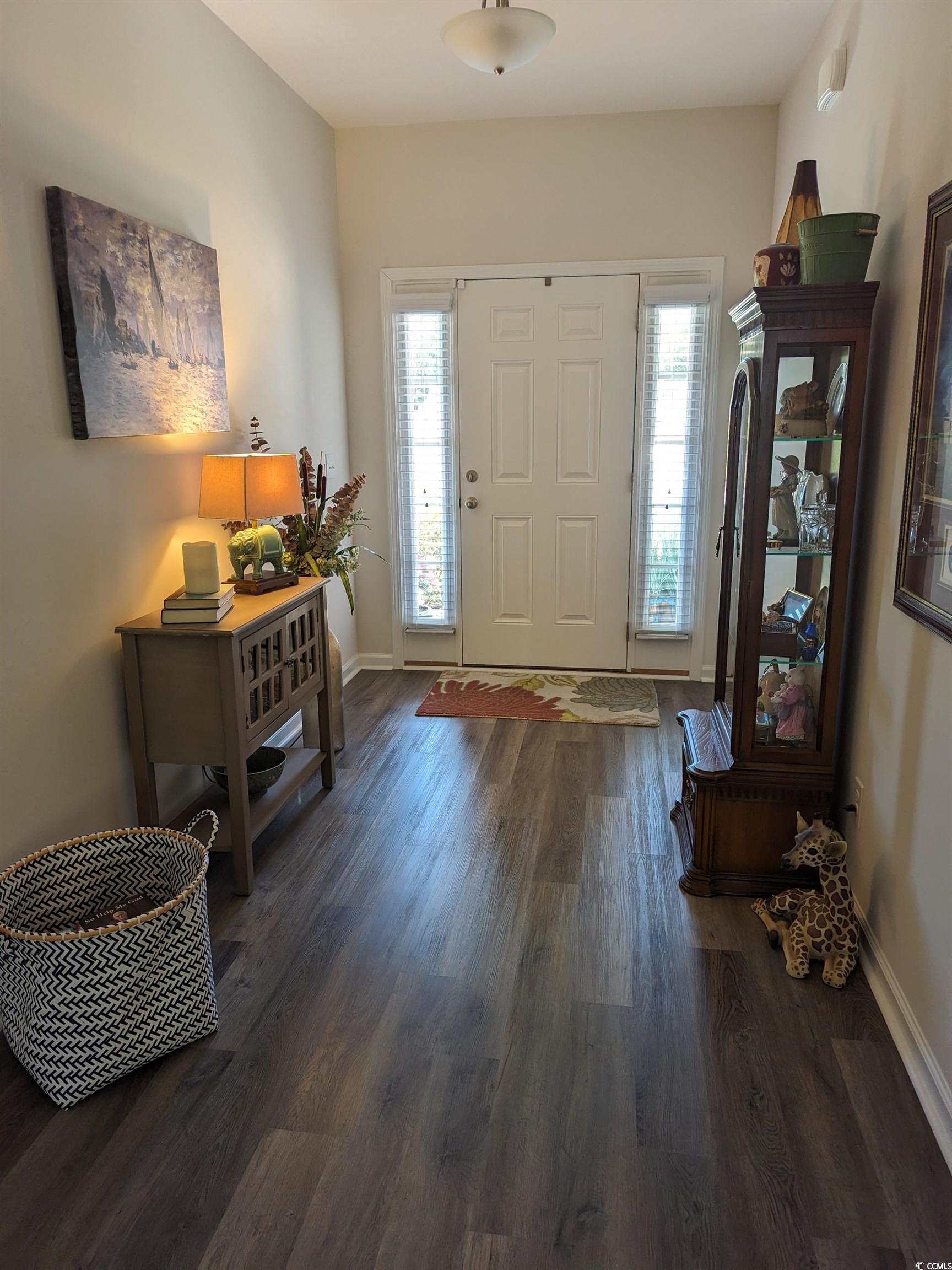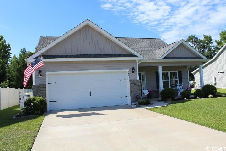 Welcome to Baron's Bluff North neighborhood. One owner home only 4 years old. Featuring 3 bedrooms, 2 bathrooms, Great room/ kitchen and foyer with Luxury Vinyl Plank flooring, 15-foot vaulted ceiling with views of the screened in back porch and landscaped back yard. The kitchen/ dining area offers a double picture window allowing lots of natural light as well as a back yard view of bird feeders and bird houses. Stainless steel appliances, gas range and granite counter tops. Laundy room with built-in cabinets for storage and a very sizable pantry. Master bedroom is complemented with a tray ceiling, two windows and a spacious walk-in closet. Master bath with double vanity and a walk-in shower. Tankless gas water heater. LVP flooring added in MBRM.in spring of 2023. With a rocking chair front porch, you can rock and relax while taking in the lake view and the sound of the fountain while enjoying the breeze and that peaceful, easy feeling. Only a short walk to the community [ salt water] pool. Sidewalks thru out for you to utilize as you wish. This neighborhood is golf cart friendly and of course pet friendly and with only two ways in and the same two ways out [ NO THRU TRAFIC]. Located with-in a few miles of Hwy 90, Hwy 22 and international drive. Only a few minutes to everything beach and downtown Conway. 1.3 miles to the new Atlantic Collegiate Academy Charter school scheduled to open in the fall. All measurements and square footage are approximate and not guaranteed. Buyer is responsible for verification.