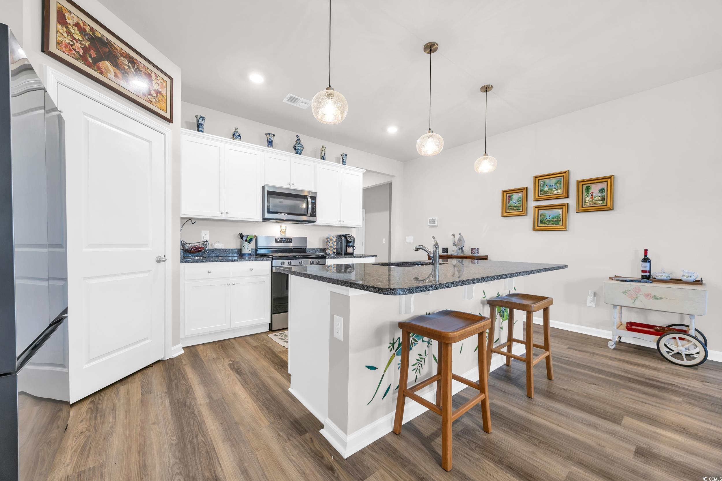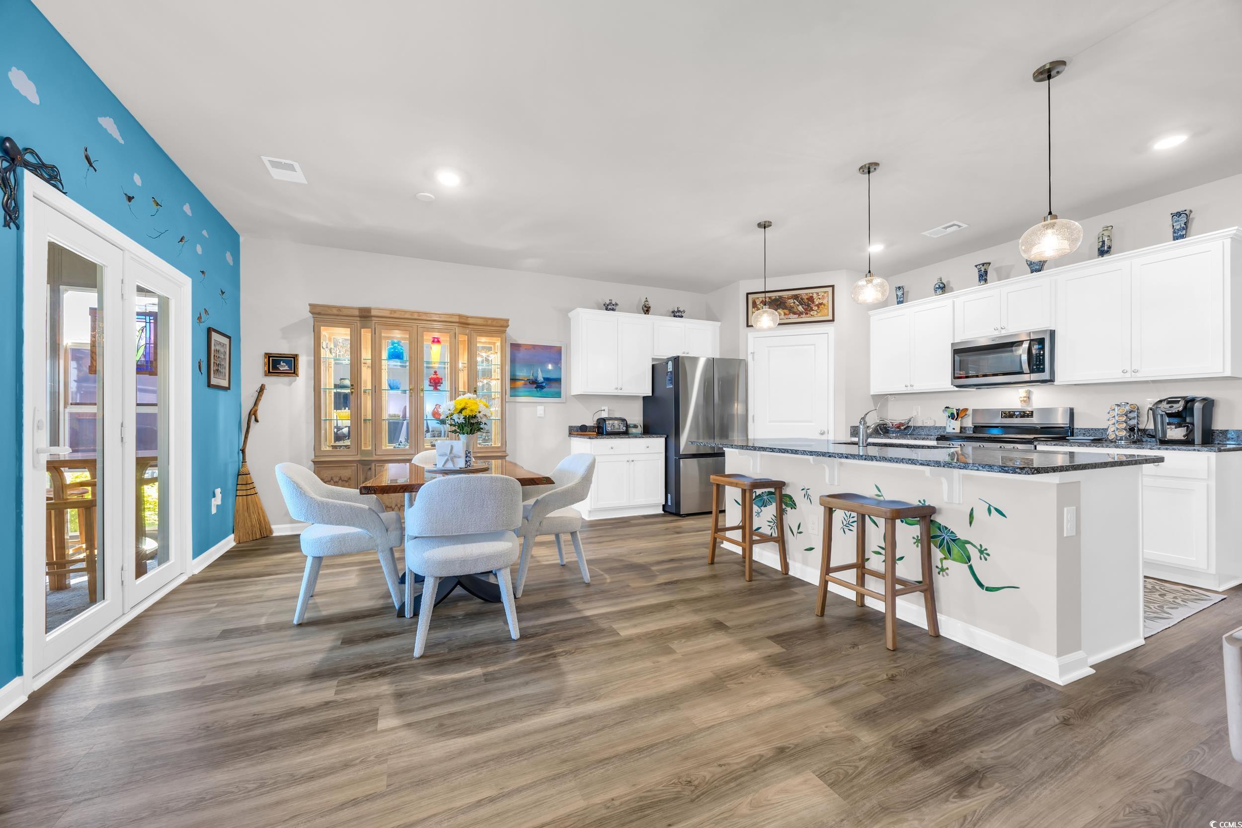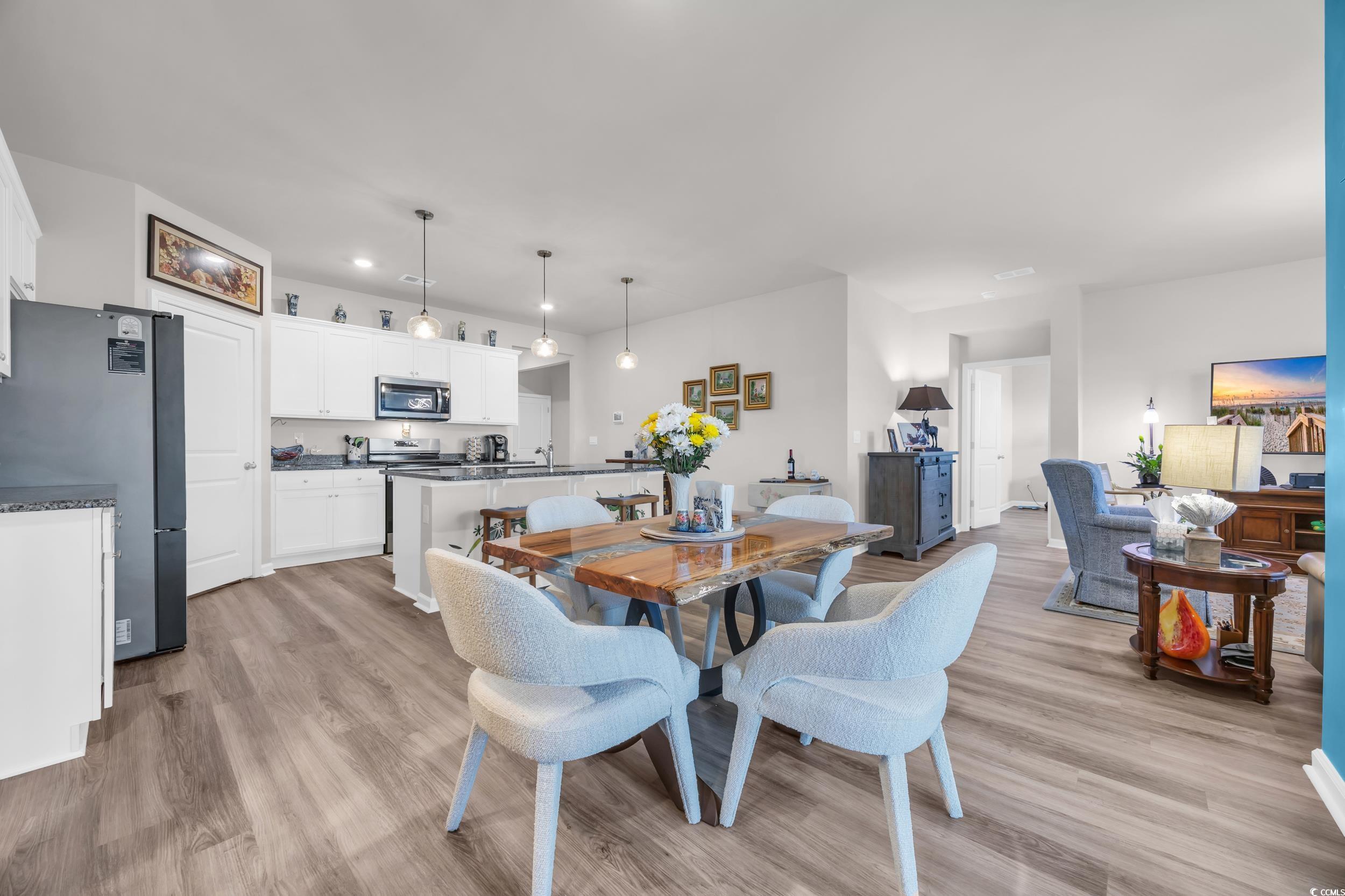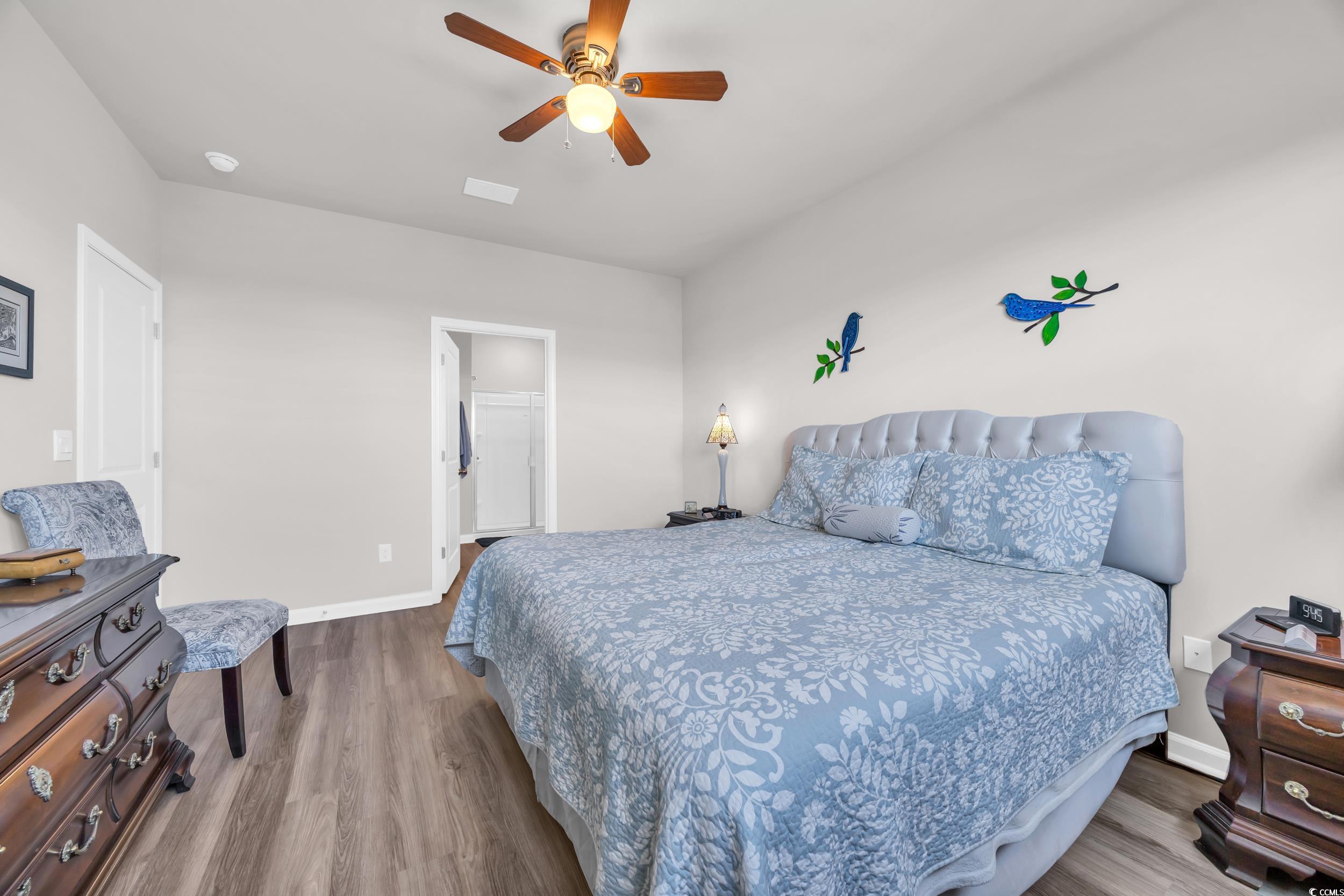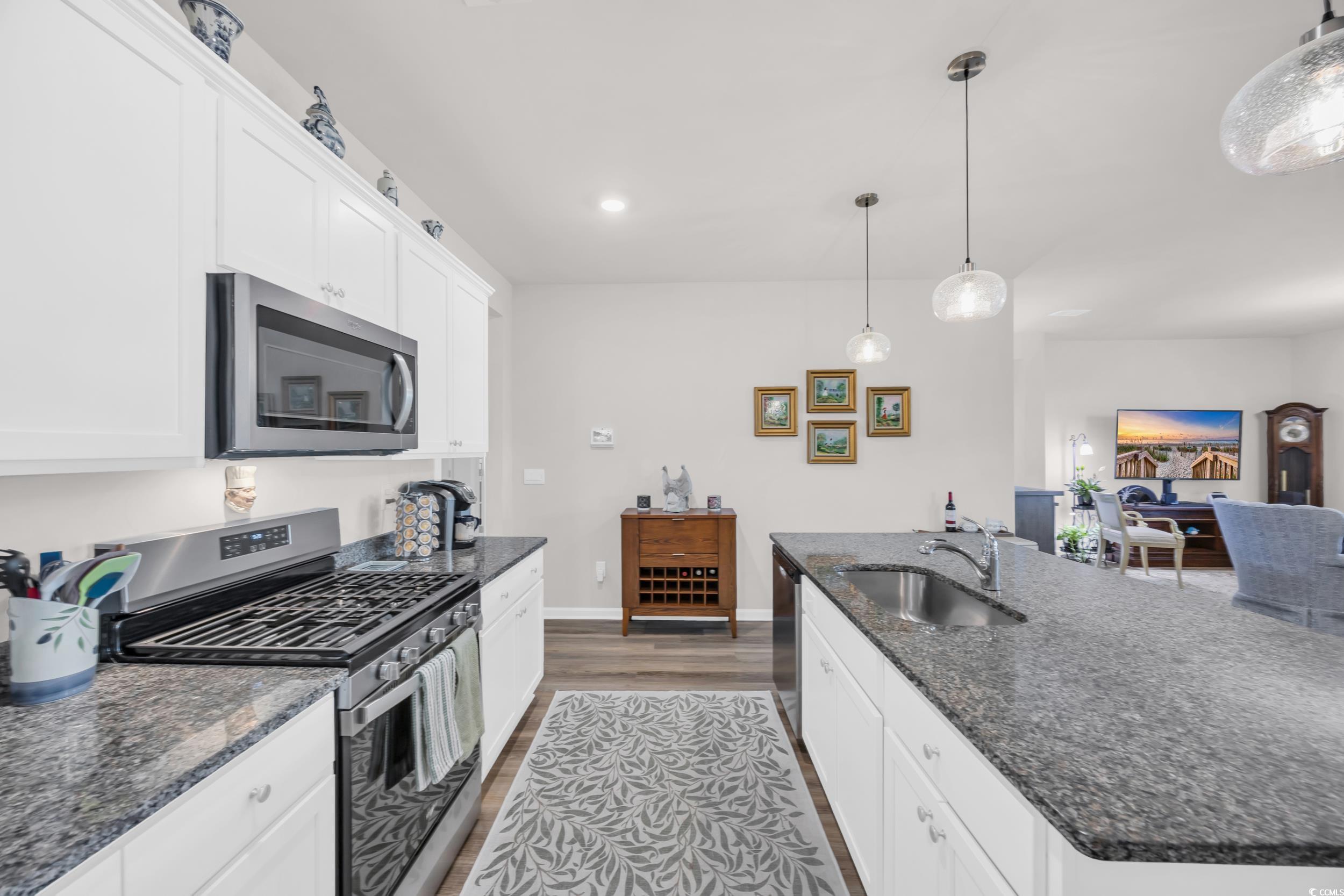 Step inside your Immaculate Four-Bedroom, Two-Bath Smart Home and experience the perfect blend of comfort, style, and convenience! If you are an organization enthusiast, this home has been thoughtfully designed with luxury storage upgrades and functionality in mind. You will find upgraded closets with custom cabinetry and built-ins, strategically placed shelving throughout, and a well appointed kitchen featuring glide-out drawers for effortless access. Every detail was planned to keep your home beautifully organized and clutter-free. Primary suite features a custom designed closet and frameless touchscreen lighted vanity mirror. Work from home in style! The Fourth Bedroom is designed as a functional home office, featuring a custom built-in desk and cabinets. The open light filled living areas flow seamlessly into your 3-season room with floor to ceiling Flex Vinyl windows offering peaceful views of your serene landscaped back yard overlooking green space. Garage includes pre-wired EV hook up as well as an electric elevator lift for your attic storage. Hurricane protection panel system for all doors and windows included. Enjoy a golf cart ride to the sought-after Market Common, close to shopping, dining, and beautiful beaches. Your Someday is Here! Schedule your private showing today!