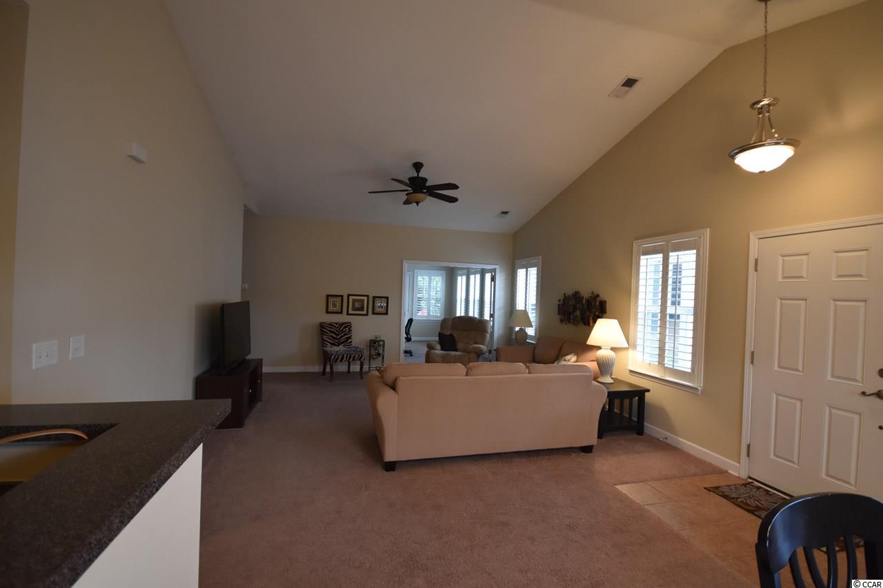 **Nearly five k spent on custom wooden plantation shutters for every window.** Enjoy this beautiful paired ranch home in the quiet Pawleys Island community of Kings Creek, centrally located and convenient to everything you need... yet tucked away and private. Open floor plan with vaulted ceilings, dining, sunroom/ possible 3rd bedroom and hallway. Patio in rear. Master bedroom with private bathroom, large tub and walk-in shower and nice open walk-in walk-in closet. Very nice kitchen with plenty of counter space and island. Stainless steel appliances with high-end LG 3 door refriderator and freezer on the bottom. Appliances are included. Utility room includes washer and dryer and 2 closets, 1 has the water heater though. Large 20x20 garage with electric opener.