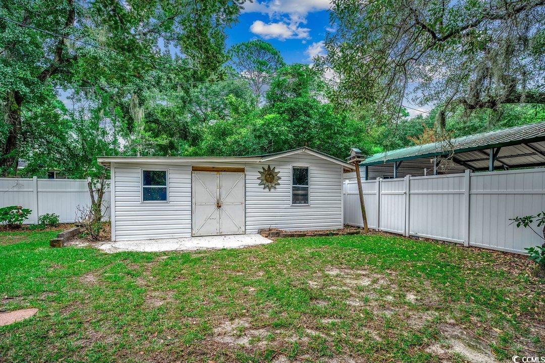 Located just 2 miles from Coastal Carolina University and under 3 miles to Historic Downtown Conway and the Riverwalk, this charming all-brick, 4-bedroom, 2-bath home with no HOA or HOA dues offers comfort, convenience, and character! One bedroom is currently used as a laundry/utility room but could easily be converted back. The home features beautiful real hardwood floors in select areas, a cozy brick fireplace (wood-burning or gas), and a metal roof installed approximately 4 years ago for added peace of mind. The spacious living room includes a built-in entertainment center for added storage and function. Outside, youll find a 24x15 detached building with electricityperfect for a workshop, hobby space, or extra storage. Theres also an attached exterior storage room that could serve as an alternative laundry or utility space if preferred. Situated in a quiet, established neighborhood with easy access to schools, restaurants, shopping, and morethis home has so much to offer!