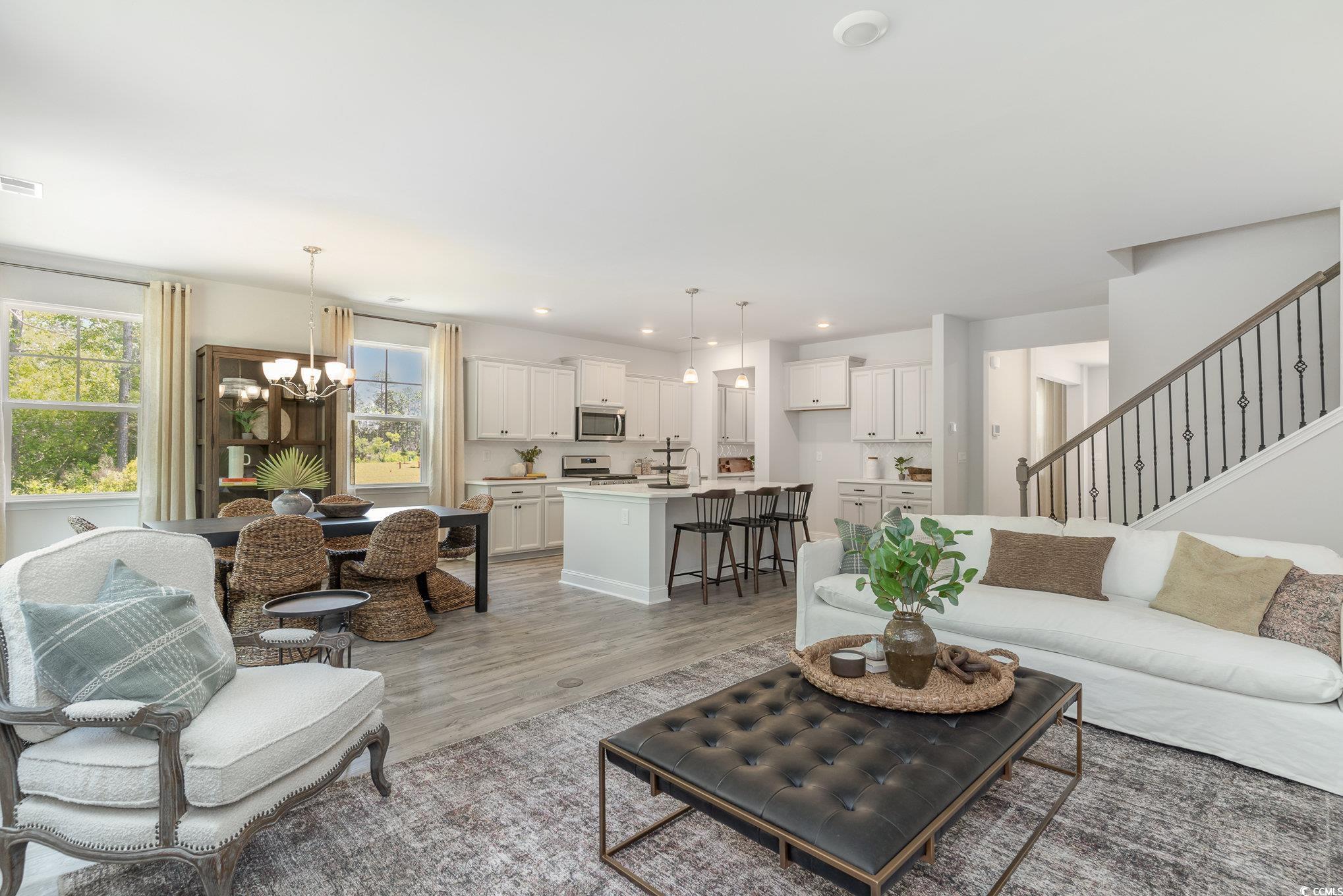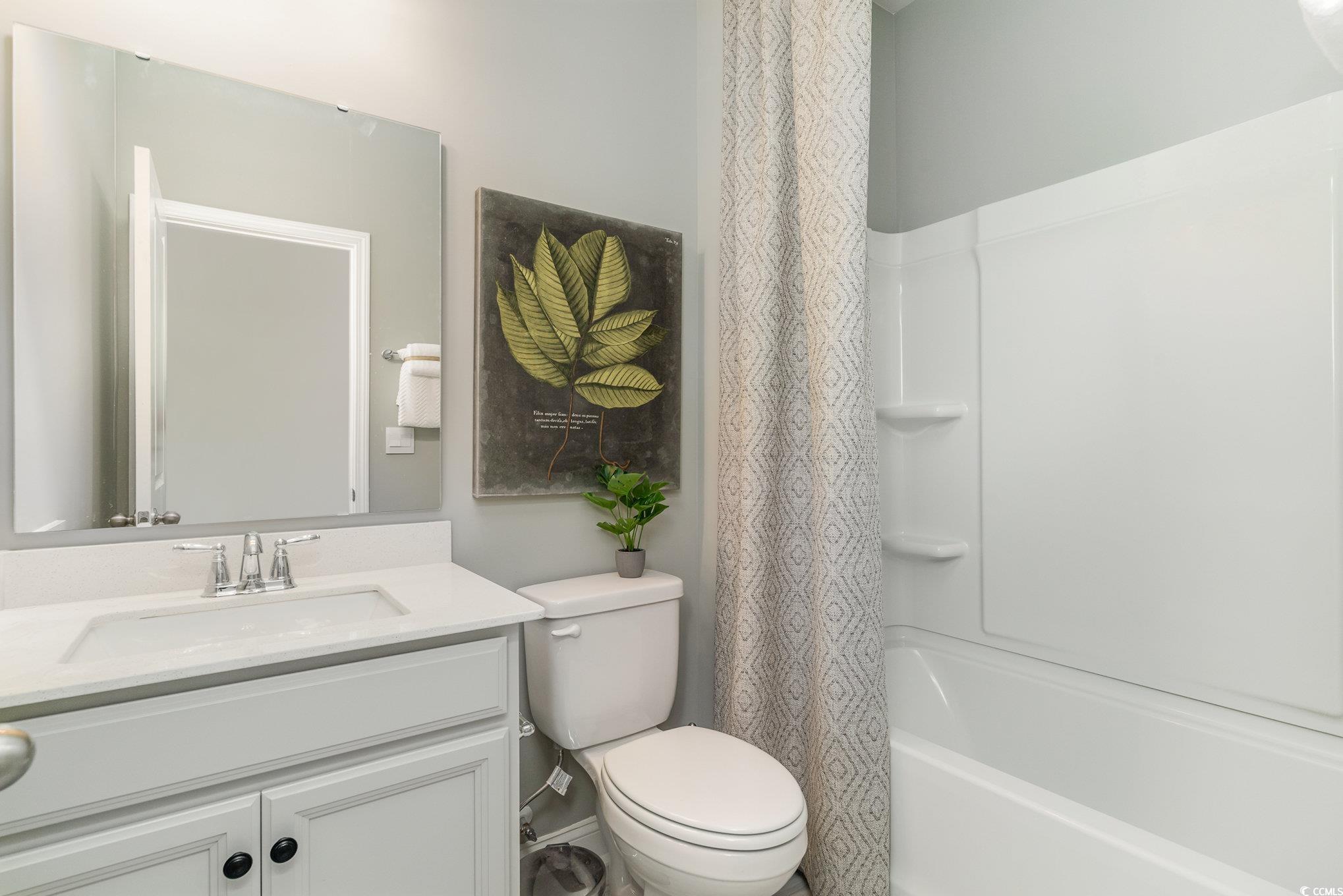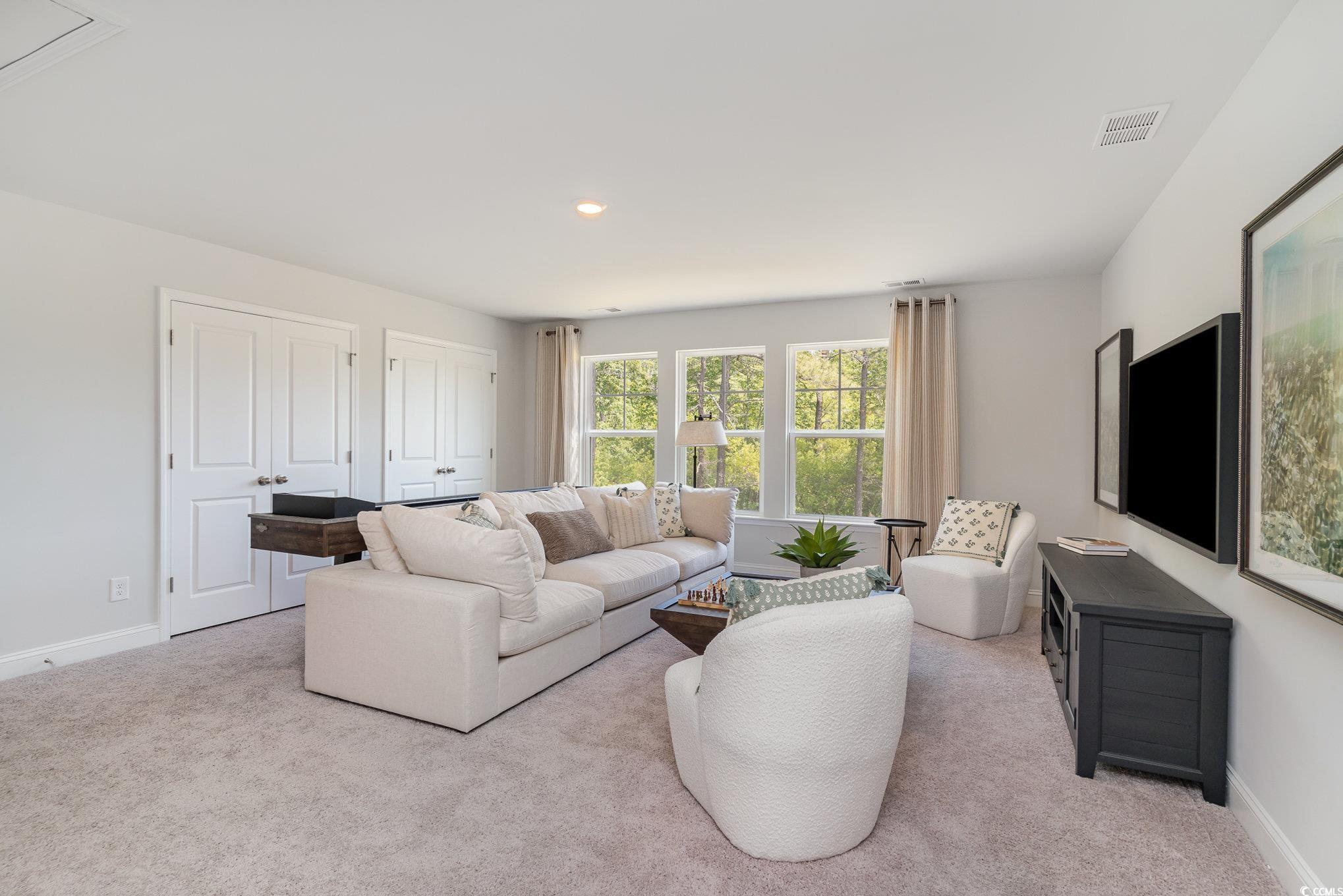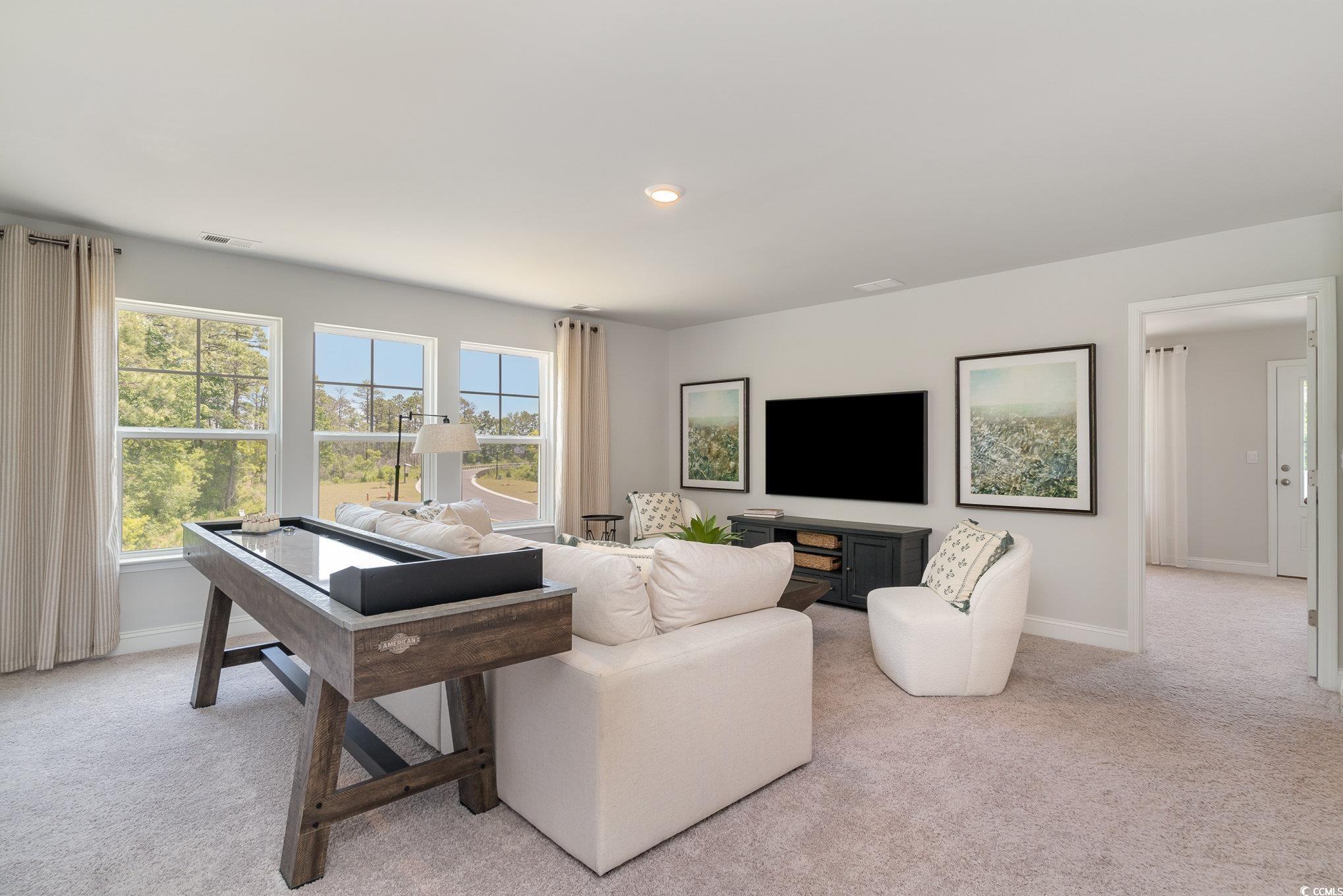 Incredible curb appeal with this home's stacked front porches and tall entry door. Once inside, numerous windows bring in fantastic natural light creating an inviting space. Off the entry is a spacious flex room which would be a great space for a formal dining room, study or sitting room. As you make your way into the home you will find a large great room, kitchen and dining room. The large kitchen boasts quartz countertops, an oversized island, a tile backsplash, stainless steel appliances including a gas range, a walk-in pantry, and a gorgeous Butler's pantry. The first level of this home also features a spacious bedroom and full bathroom that is perfect for guests. Upstairs you will find the grand owner's suite with tray ceiling and a cozy sitting room, huge walk-in closet, and ensuite bath with large separate vanities, a linen closet, and tile shower! There are 2 other bedrooms with a shared bathroom with a double vanity upstairs along with a large second living space or game room. Enjoy the Carolina sunset relaxing on the screened porch. This is America's Smart Home! Each of our homes comes with an industry leading smart home technology package that will allow you to control the thermostat, front door light and lock, and video doorbell from your smartphone or with voice commands to Alexa. *Photos are of a similar Harbor Oak home. Pictures, photographs, colors, features, and sizes are for illustration purposes only and will vary from the homes as built. Home and community information, including pricing, included features, terms, availability and amenities, are subject to change and prior sale at any time without notice or obligation. Square footage dimensions are approximate. Equal housing opportunity builder