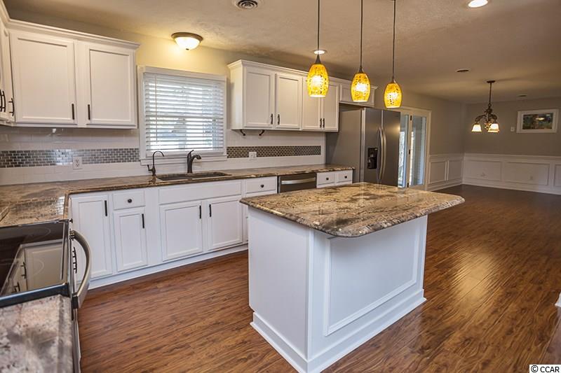 Great Opportunity now available in highly sought after area just outside of Historic Downtown Conway, Chicora. This 3BR/2B home has been beautifully remodeled with laminate flooring, paint, fixtures, Stainless Steel Appliances, granite counter tops and more. This all brick, single level home offers open floor plan and large Carolina Room with wood burning fireplace. Notable exterior features are large front porch, huge backyard, outside storage and single car garage. Chicora has NO HOA and is conveniently located just 1.5 miles from Historic Downtown Conway, 2 miles to the Conway Riverwalk and just a short drive to the beach. Make an Appointment today!