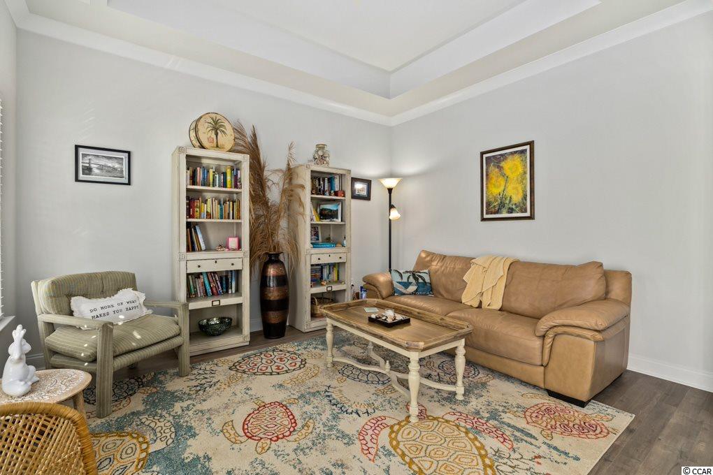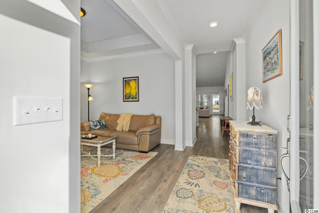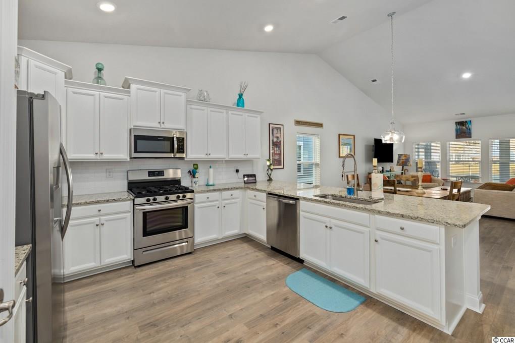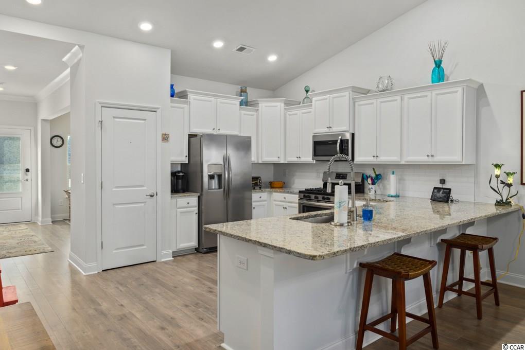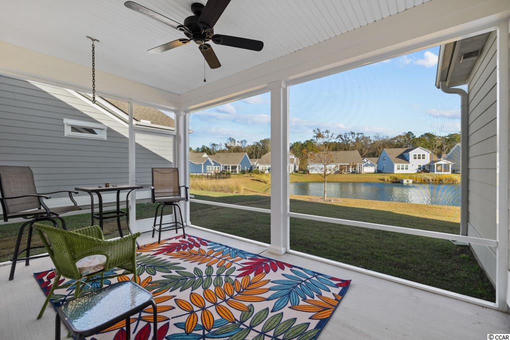 Spectacular 4BR-3BA home at Belle Harbor in the popular Market Common! Located on a premium lake front lot! The Annandale plan defines southern style charm. Walking in the front door you will notice the luxury vinyl plank flooring in the foyer, living area, kitchen & dinning room. The formal dining room is currently being used as a sitting room. The main living area has vaulted ceilings merging the open kitchen, great room, and breakfast area making it perfect for entertaining. The kitchen is sleek and modern with granite counter tops, custom cabinets, gas stove, tile backsplash, stainless steel appliances, pantry & breakfast bar. The large master suite has a tray ceiling, sitting area with a relaxing view of the lake. Double sinks in the master bath plus an oversized tile shower with built-in bench and walk-in closet. Located off the great room is a spacious (16'4x10') screened porch with a lake front view. The sizeable upstairs Bonus Room (20'4x16')has a full bathroom. The up grades include an ADT Security System in place, hurricane shutters, irrigation system and gutters.