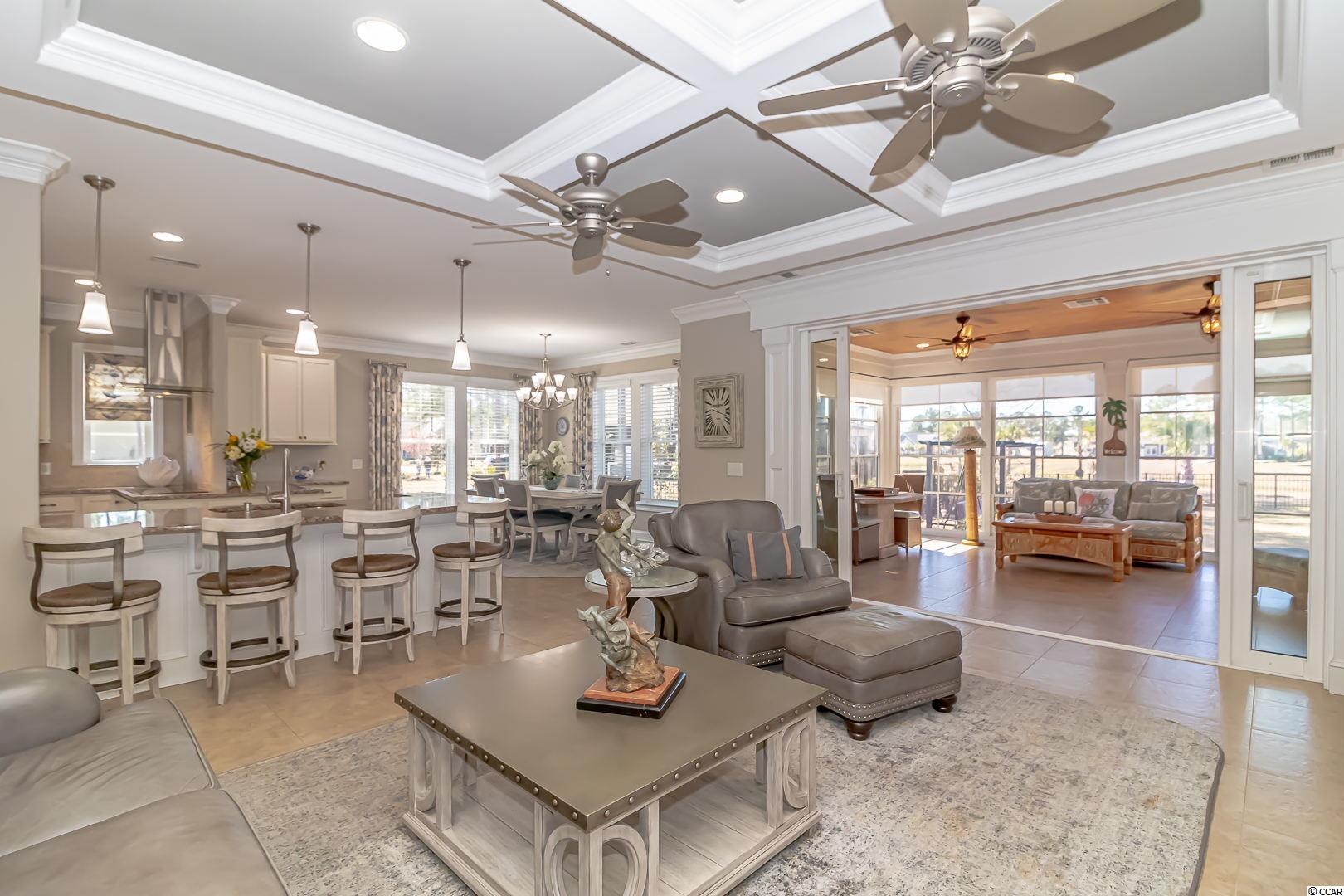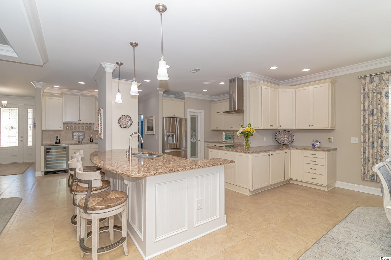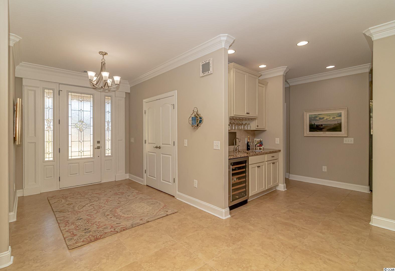 Upon entering the large foyer of this bright, custom designed and landscaped 2 story waterfront home in Carolina Forest prestigious, gated community of Waterbridge, you'll be struck by the large, welcoming, tiled Family Room with dual overhead fans and 11 foot doorwall opening to a 20 foot wide heated and cooled Lanai with dual overhead fans. Lanai overlooks a long, fenced in backyard through EZ Breeze heavy vinal multi level adjustable windows. The open floor plan boasts a unique Kitchen/Dining Room layout with granite countertops, a breakfast bar, an extra large pantry and ample cabinet and drawer space. Additional first floor features include an oversized entry closet, a half bath with a linen closet, two full-size refrigerators, a custom designed wet bar with a granite countertop and a wine refrigerator, a combination office/laundry room with window and desk, granite countertops, overhead cabinets and a sink. The first floor Master Bedroom suite provides views of the lake, has a tray ceiling above the bed and includes two walk-in closets with shelving and drawers. The Master Bath features individual his and hers sink areas, granite countertops and a dual head, fully tiled walk-in shower with seat. A wide stairwell leads to an upstairs foyer that opens up to two large bedrooms, a full bath with tiled shower and a walk-in storage closet. The stairwell also provides access to storage space above the oversized two-car garage. The landscaped backyard sports a large, paved patio area with lake views. Waterbridge amenities include the largest private pool in South Carolina, free boat storage, boat ramp, tennis/pickle ball courts, weight/exercise room, volleyball court, clubhouse and kitchen. This beautifully appointed home is a must-see. Make an appointment today.