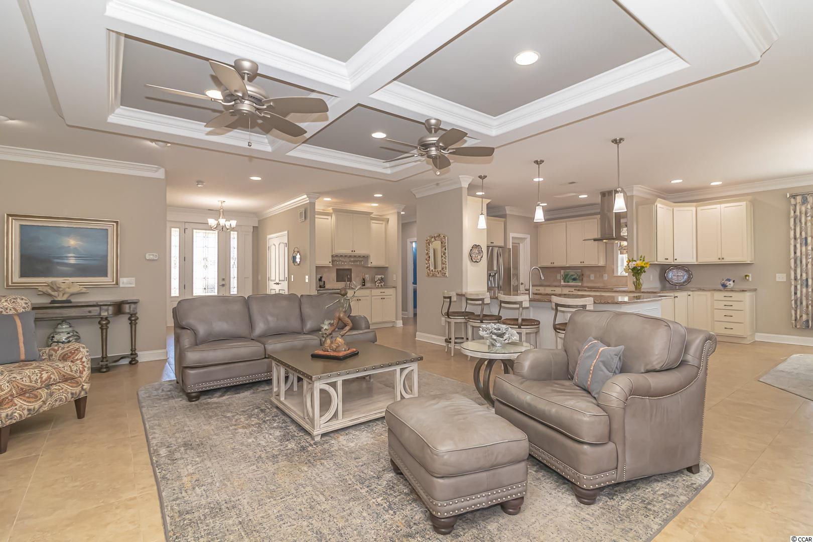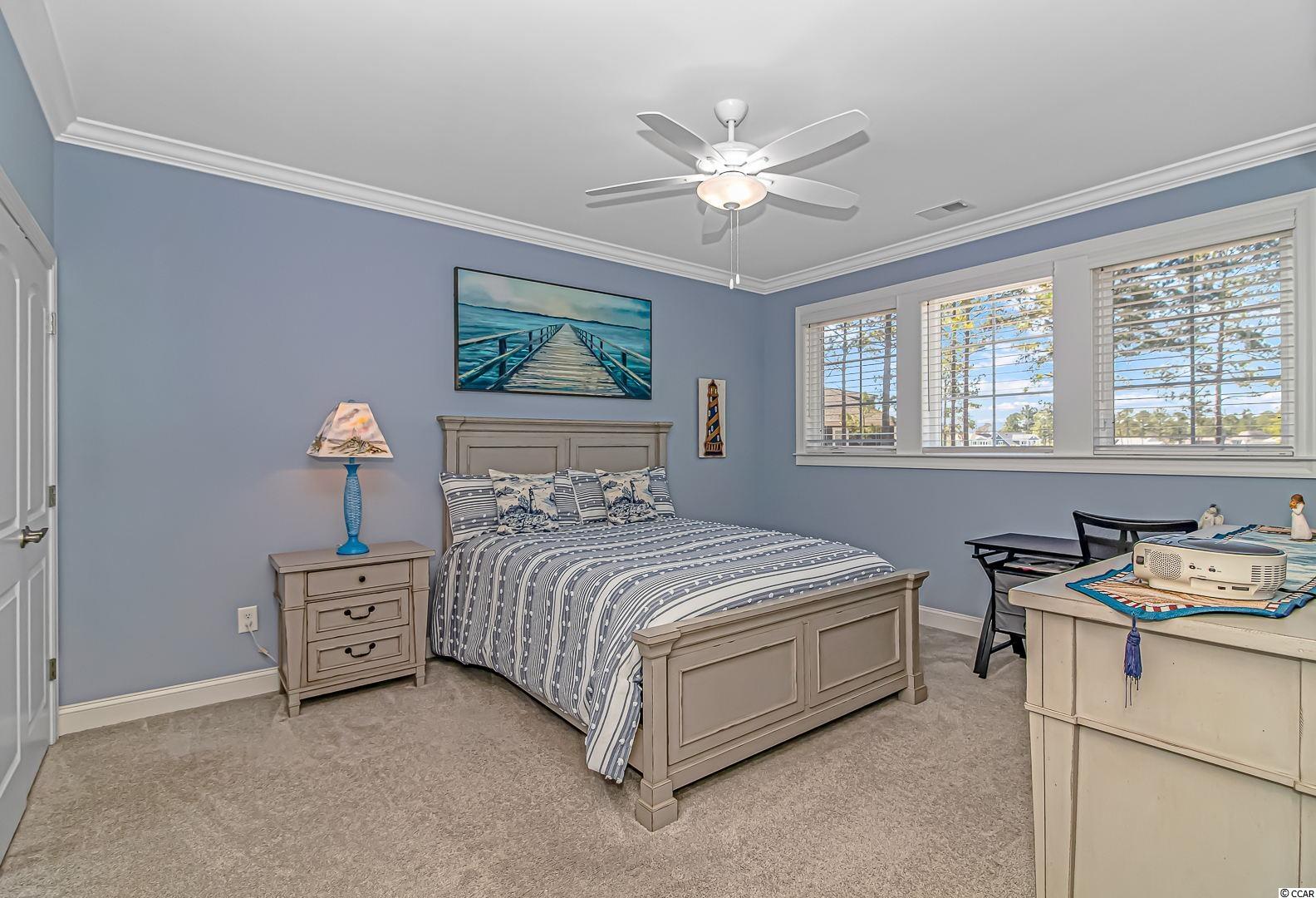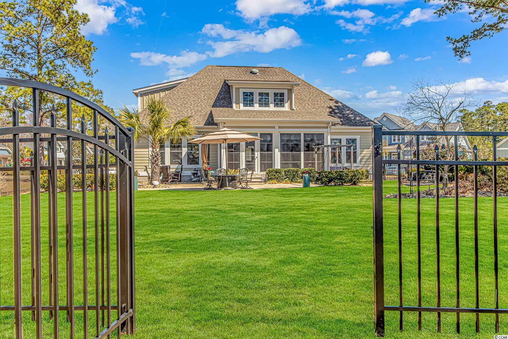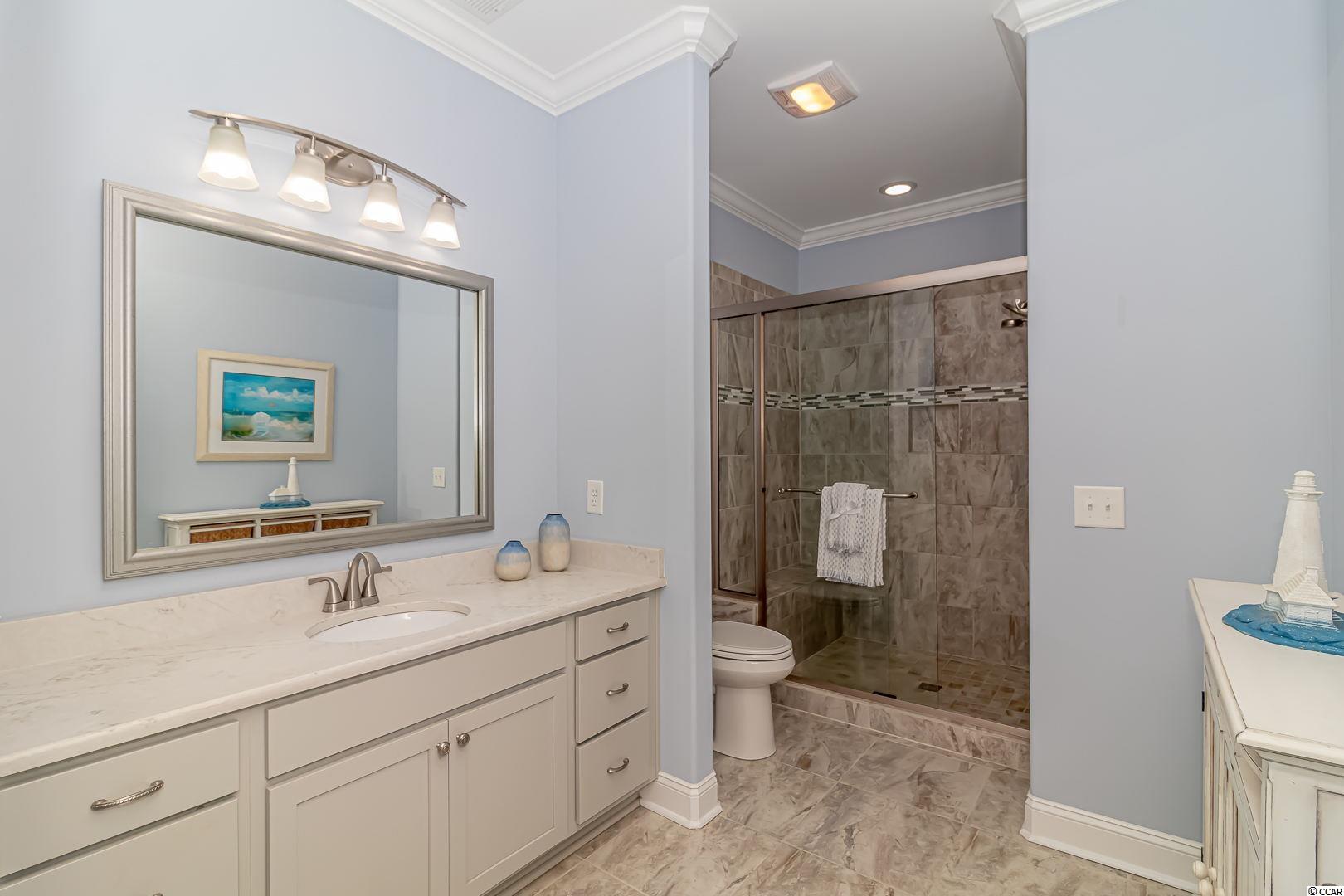 Upon entering the large foyer of this bright, custom designed and landscaped 2 story waterfront home in Carolina Forest prestigious, gated community of Waterbridge, you'll be struck by the large, welcoming, tiled Family Room with dual overhead fans and 11 foot doorwall opening to a 20 foot wide heated and cooled Lanai with dual overhead fans. Lanai overlooks a long, fenced in backyard through EZ Breeze heavy vinal multi level adjustable windows. The open floor plan boasts a unique Kitchen/Dining Room layout with granite countertops, a breakfast bar, an extra large pantry and ample cabinet and drawer space. Additional first floor features include an oversized entry closet, a half bath with a linen closet, two full-size refrigerators, a custom designed wet bar with a granite countertop and a wine refrigerator, a combination office/laundry room with window and desk, granite countertops, overhead cabinets and a sink. The first floor Master Bedroom suite provides views of the lake, has a tray ceiling above the bed and includes two walk-in closets with shelving and drawers. The Master Bath features individual his and hers sink areas, granite countertops and a dual head, fully tiled walk-in shower with seat. A wide stairwell leads to an upstairs foyer that opens up to two large bedrooms, a full bath with tiled shower and a walk-in storage closet. The stairwell also provides access to storage space above the oversized two-car garage. The landscaped backyard sports a large, paved patio area with lake views. Waterbridge amenities include the largest private pool in South Carolina, free boat storage, boat ramp, tennis/pickle ball courts, weight/exercise room, volleyball court, clubhouse and kitchen. This beautifully appointed home is a must-see. Make an appointment today.