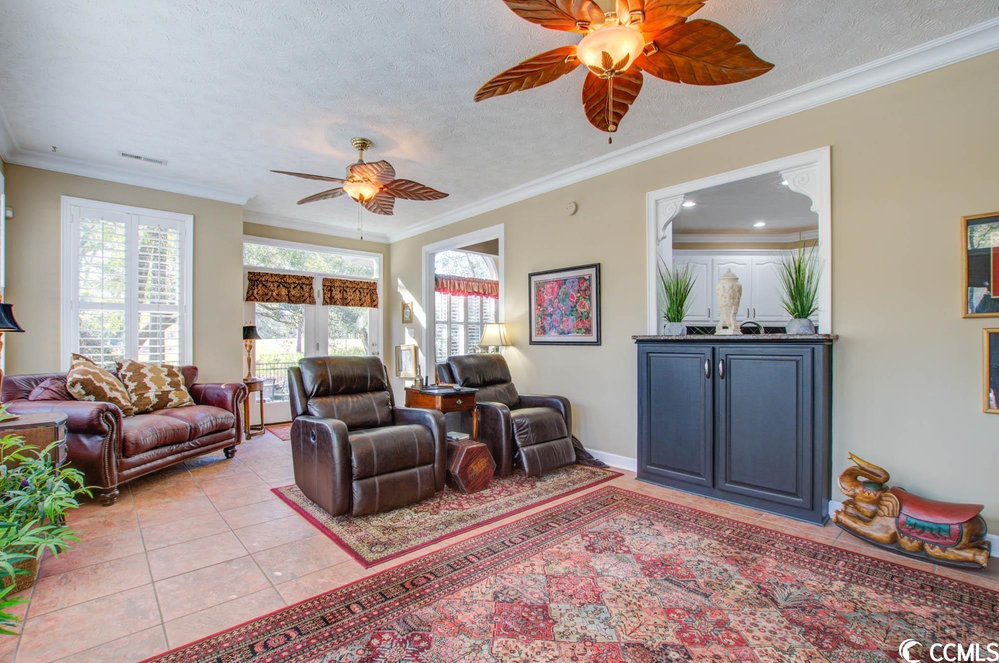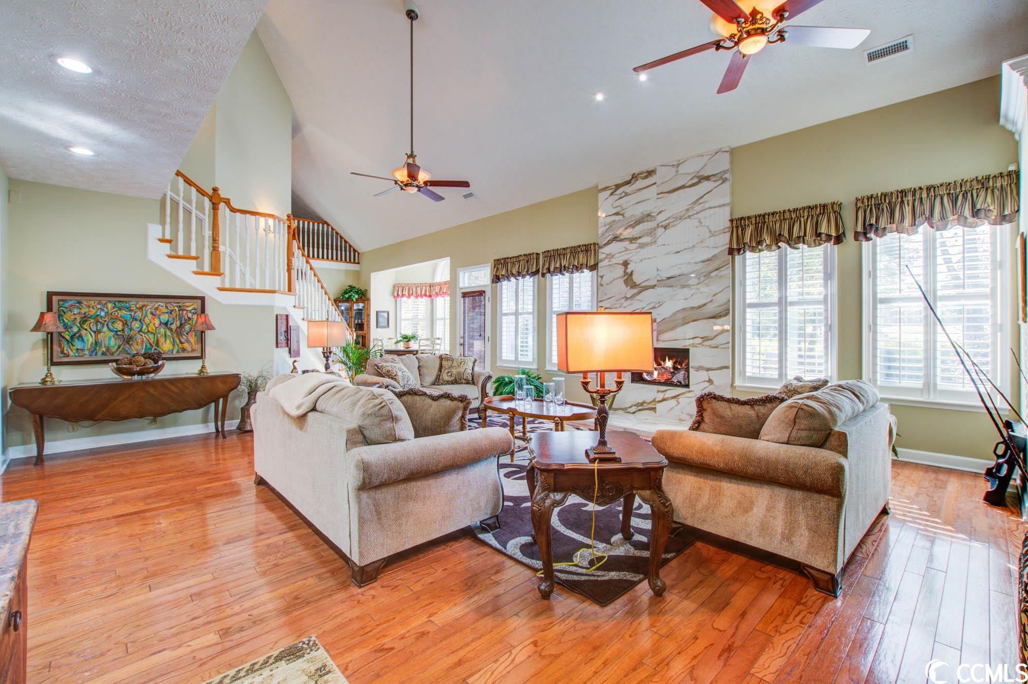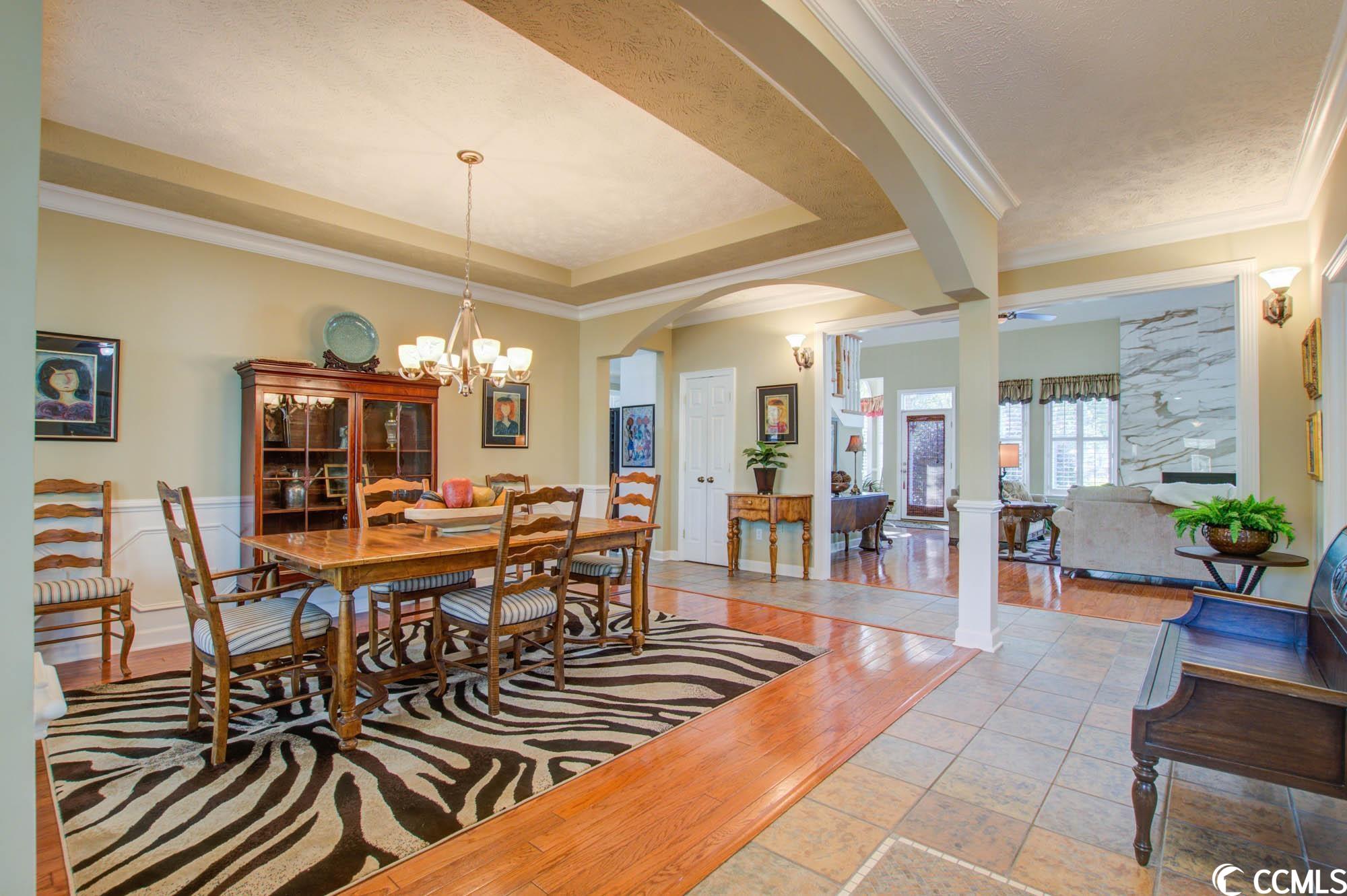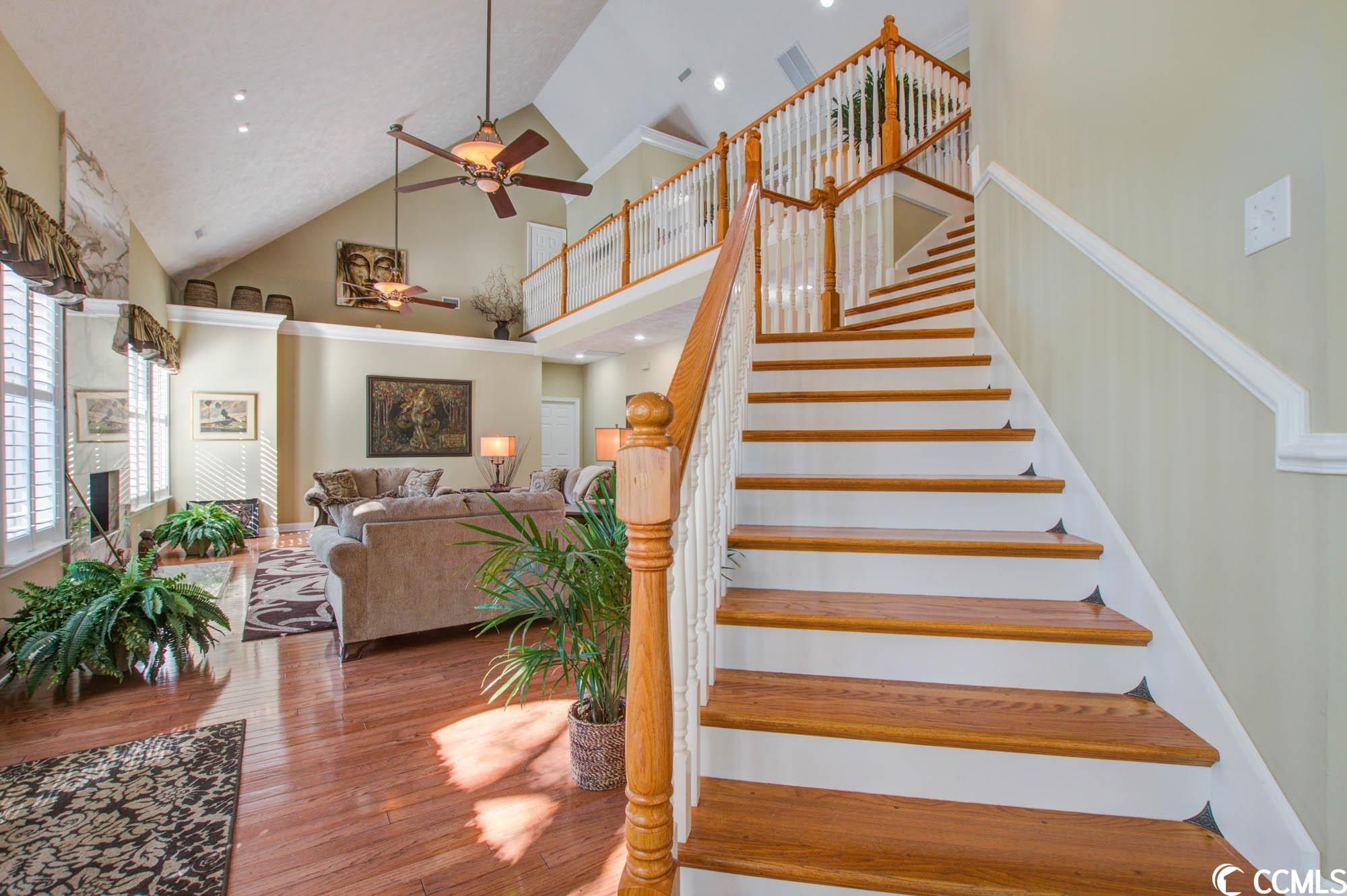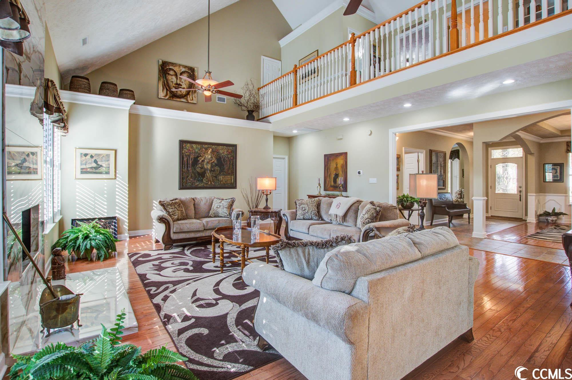 This stunning custom built home has a impressive list of special features that include a large half acre wooded corner lot, a circle driveway, golf course views, no HOA and a short 9 minute drive to the beautiful Pawleys Island beaches. Bring your boat, your trailer or your RV and park it right where it belongs, at home. The stunning oversized front porch could just be your new favorite place to sip your morning coffee or wind down the day with your loveliest red! Inside you will find an abundance of open spaces to host those large family gatherings or evening dinner parties that your friends will talk about for days. The kitchen has an island with a prep sink, tons of cabinets, tons of countertop and ample space for multiple cooks to be in the kitchen at the same time! A beautiful custom floor to ceiling tile fireplace surround serves as the focal point of the naturally lite main living space. A large second living space with an exterior entrance can serve many roles such as a business suite, art studio or home gym. Also on the lower level is the large master bedroom with a cozy owners retreat with lots of natural light. The master bathroom has a oversized jacuzzi tub as well as a tiled walk in shower and walk in closet. Finishing off the first level is a large office, dining room, laundry room with sink and a 2nd full bath. Upstairs is a the loft and 3 large guest bedrooms, 1 full bath and tons of attic storage. Have your evening dinner on the private back patio which overlooks the 16th hole of Founder Club Golf Course. This home is tucked away in a quite, still location but also close to restaurants, shopping, boating and beaching. Take a short drive for dinner in downtown Charleston or an even shorter drive up to Myrtle Beach for some family fun!
